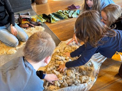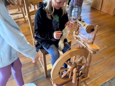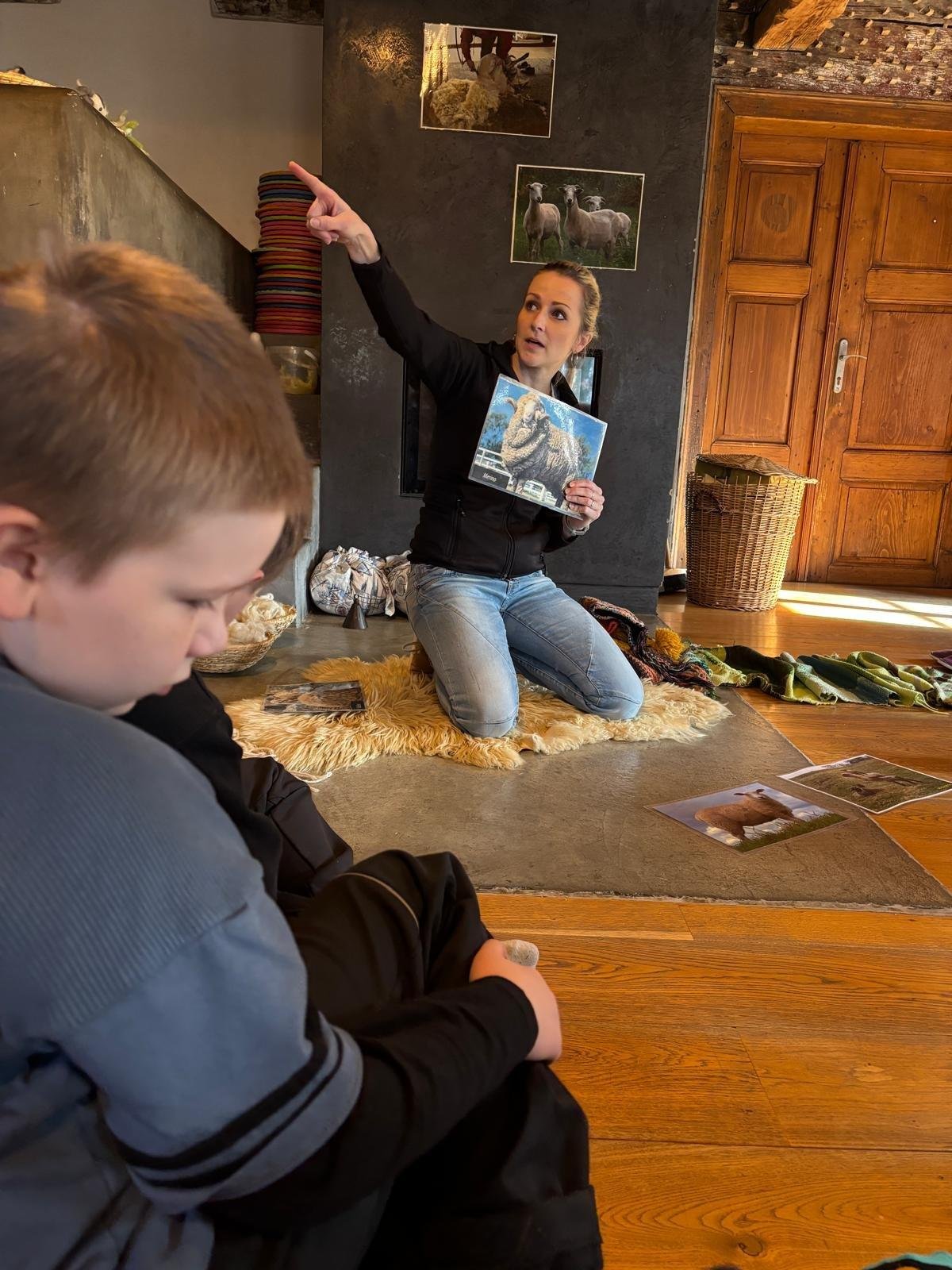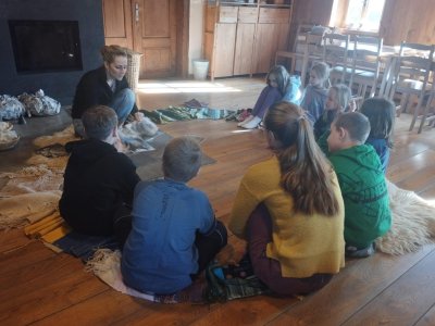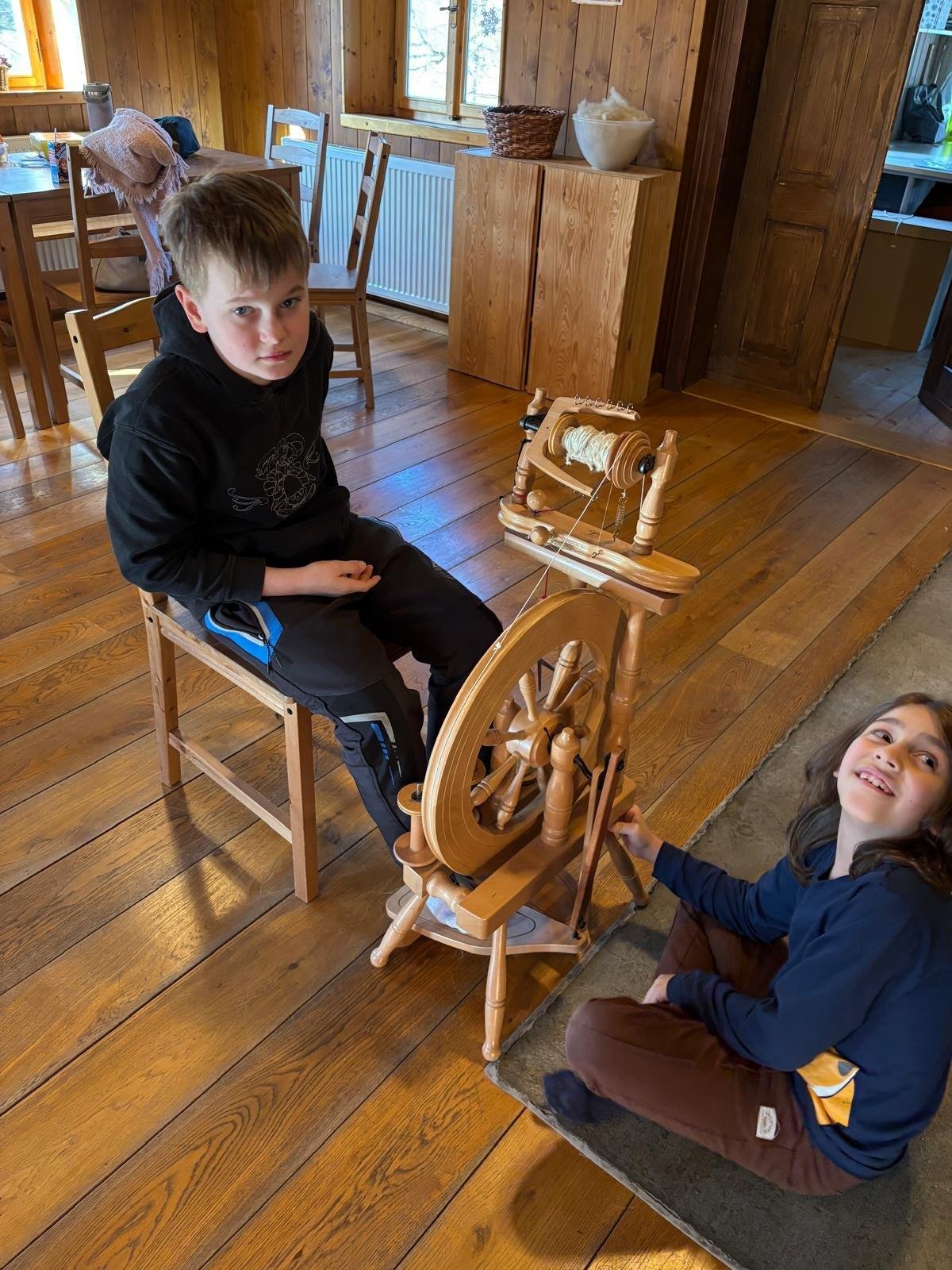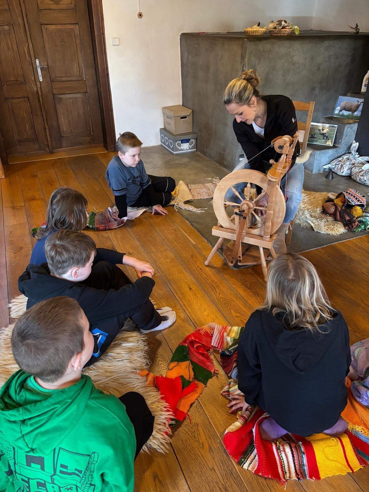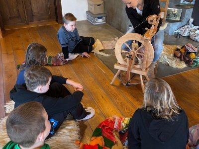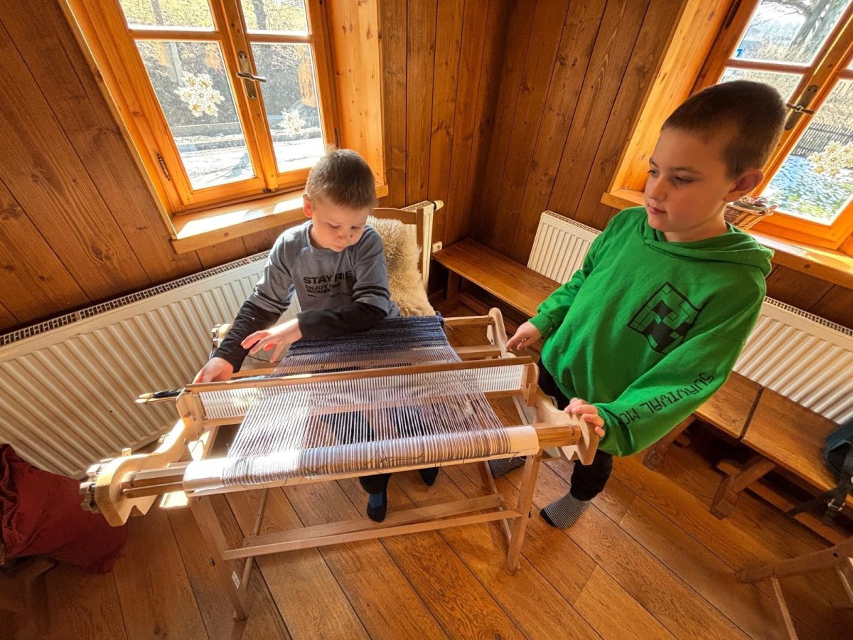 Seznámili jsme se také s tím, jak se vlna zpracovává a na vlastní kůži jsme okusili, jaká je s tím práce. Česání vlny, práce na kolovrátku i tkalcovském stavu nás velmi bavila. Z námi načesané vlny jsme si pomocí mokrého plstění vyrobili vlnové míčky.