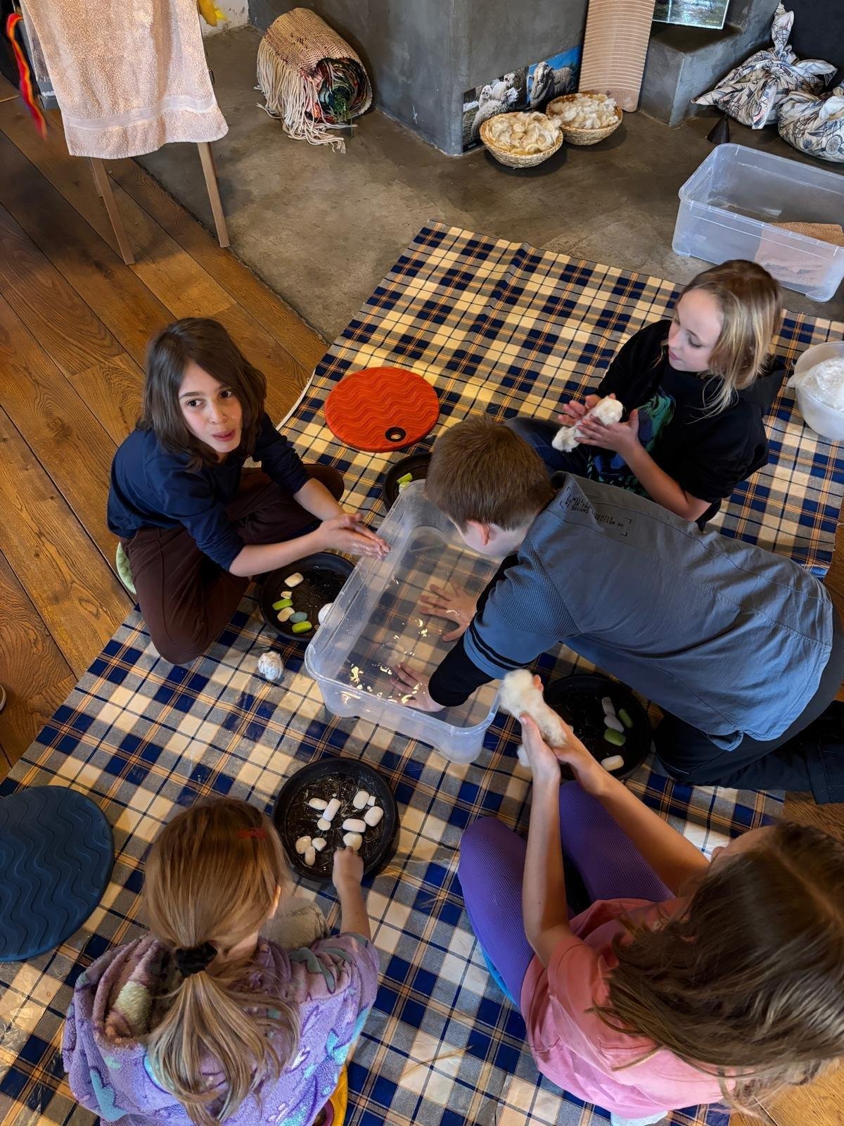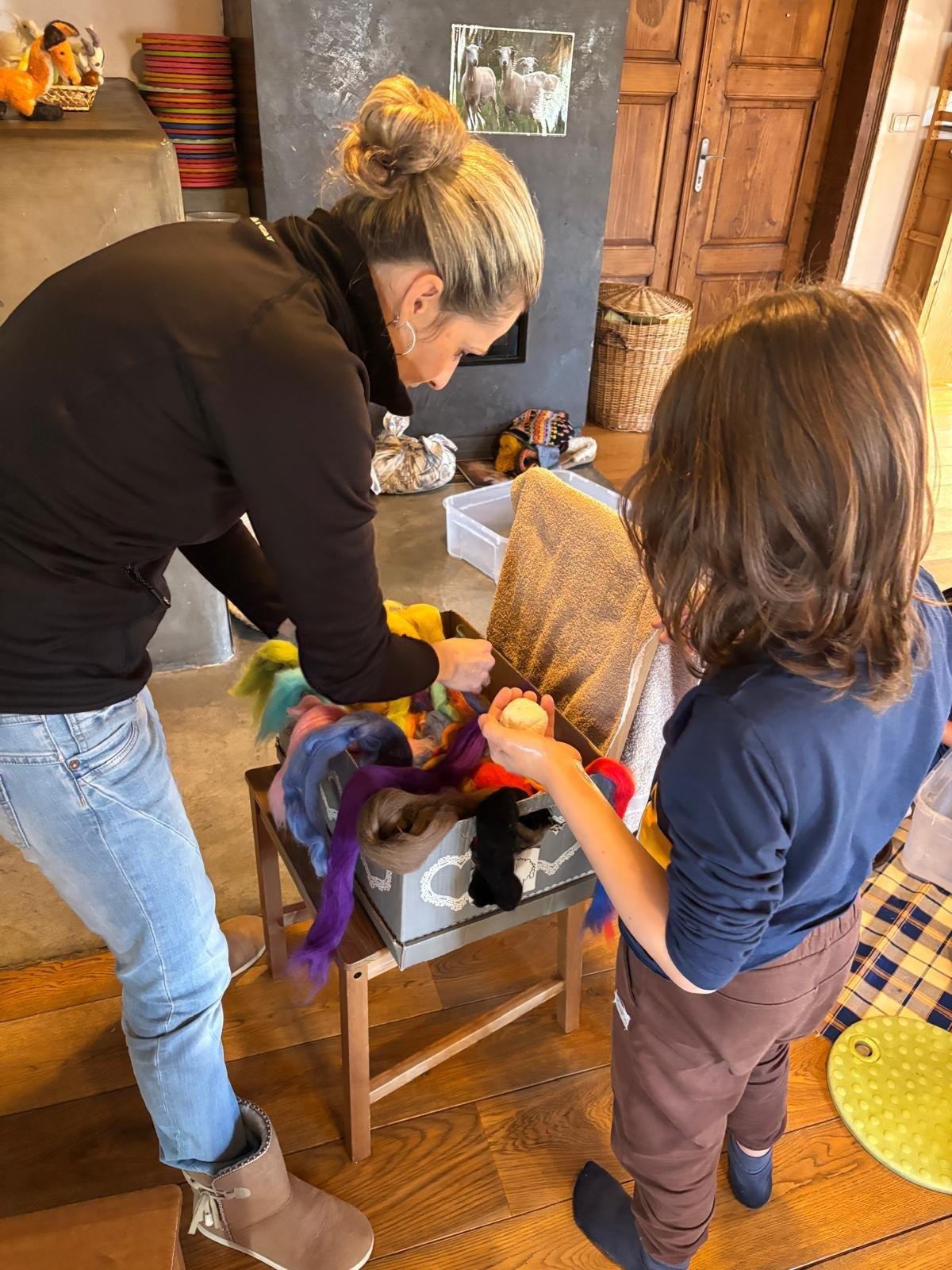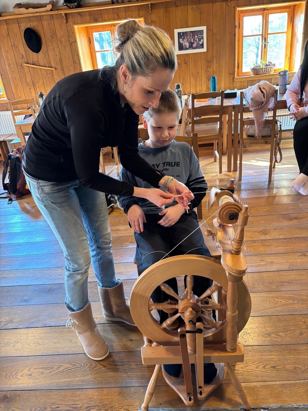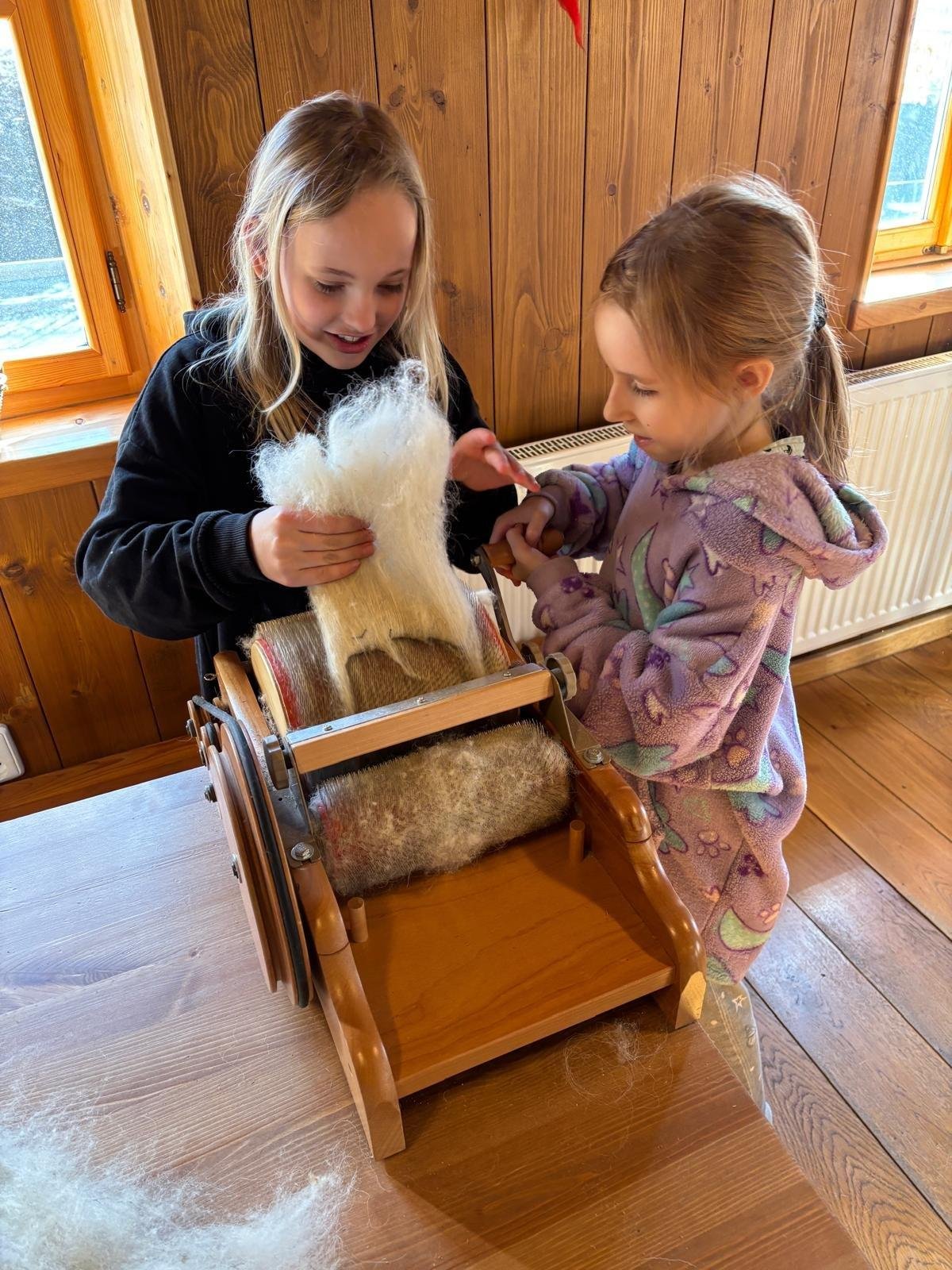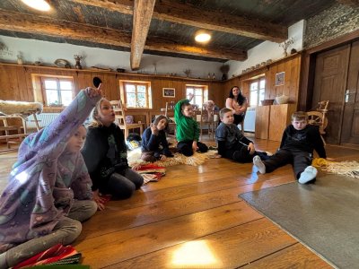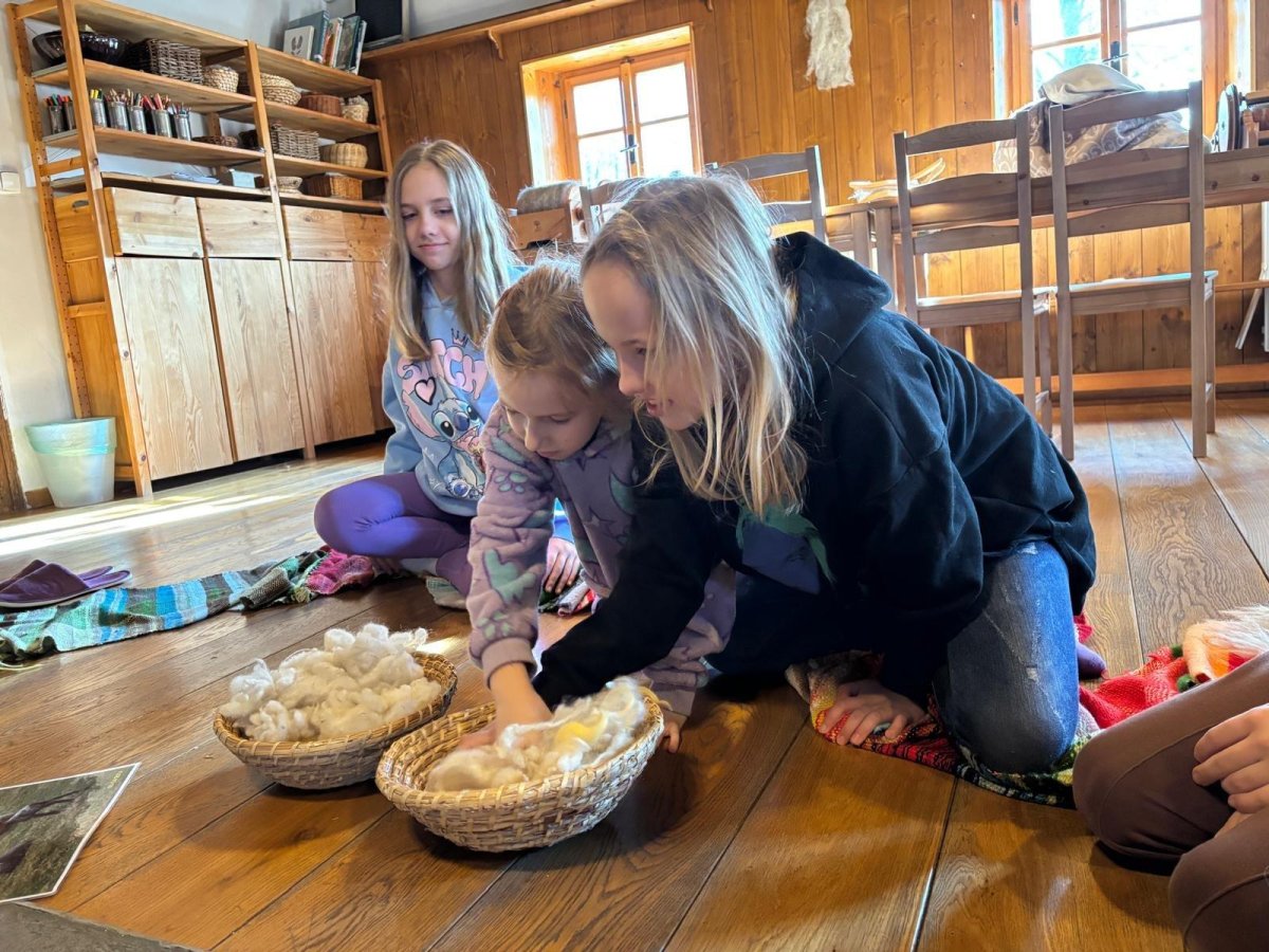 Seznámili jsme se také s tím, jak se vlna zpracovává a na vlastní kůži jsme okusili, jaká je s tím práce. Česání vlny, práce na kolovrátku i tkalcovském stavu nás velmi bavila. Z námi načesané vlny jsme si pomocí mokrého plstění vyrobili vlnové míčky.