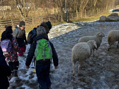 Nakonec jsme některé druhy oveček navštívili v přilehlé ekofarmě a některým z nás se je dokonce podařilo pohladit.