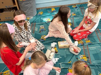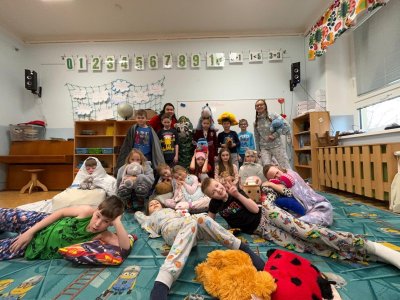 V rámci pyžamového dne jsme si povídali o denním režimu, hygieně a nemohli jsme si nechat ujít ani povídání pohádek.