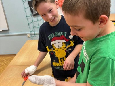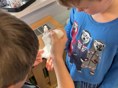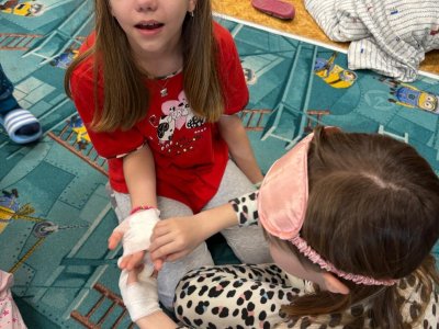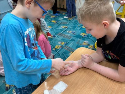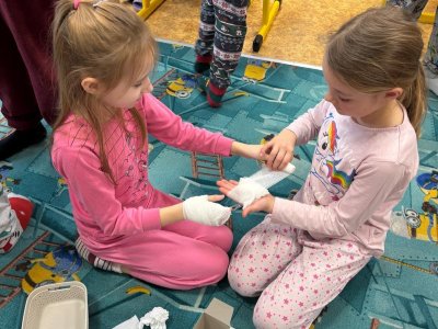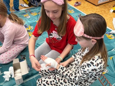 Ve 2.M a 3.M se děti pustili do čtenářské lekce s pohádkou O pyšné noční košilce, která je součástí knihy Povídání o pejskovi a kočičce od autora Josefa Čapka. Neopomněli jsme ani ošetřit pejskovi řeznou ránu na pacičce, ani vylepšit chudou noční košilku.