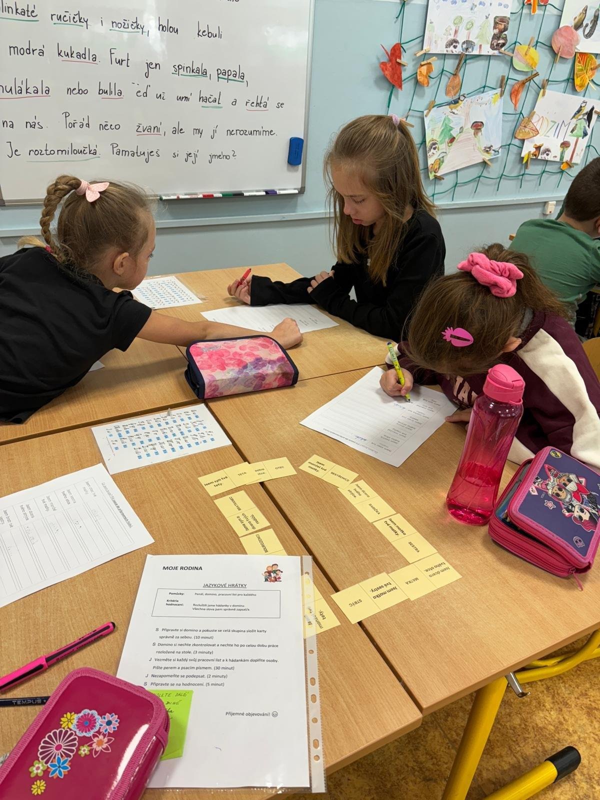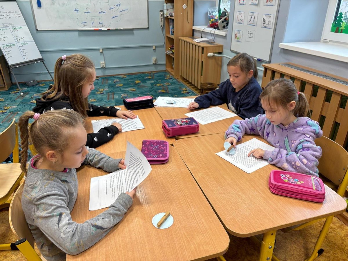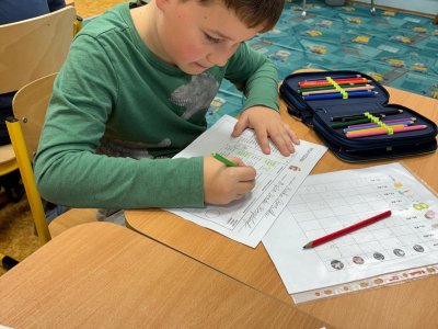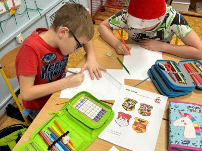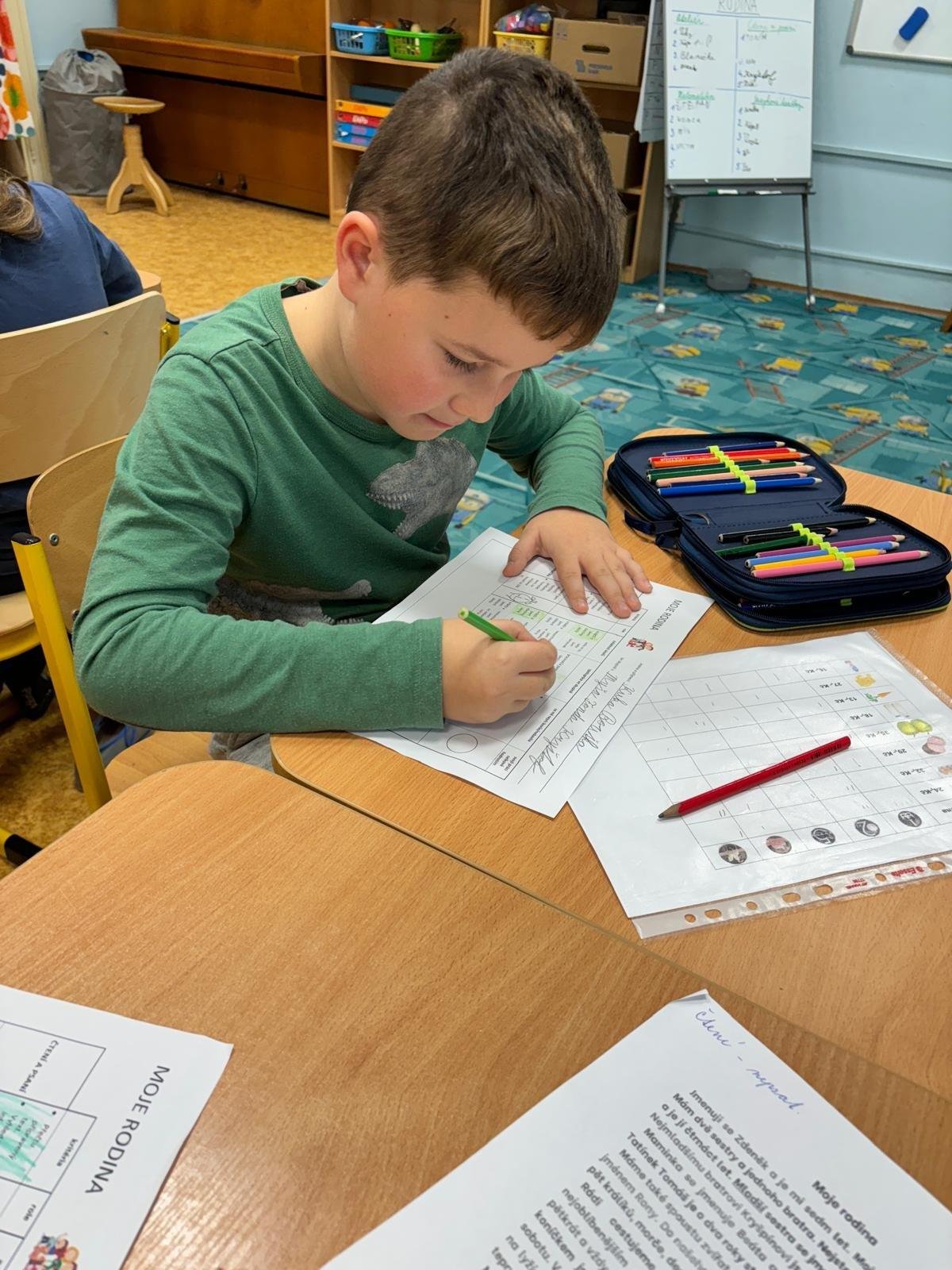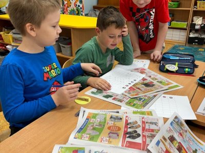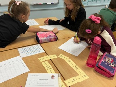 Děti se samostatně rozřadiliy do skupinek, ve kterých celý týden pracovaly. V centrech čtení a psaní, matematika, jazykové hrátky a ateliér se zamýšlely nad rodinnými nákupy, řešily hádanky o členech rodiny, nebo třeba vymýšlely rodinné erby.