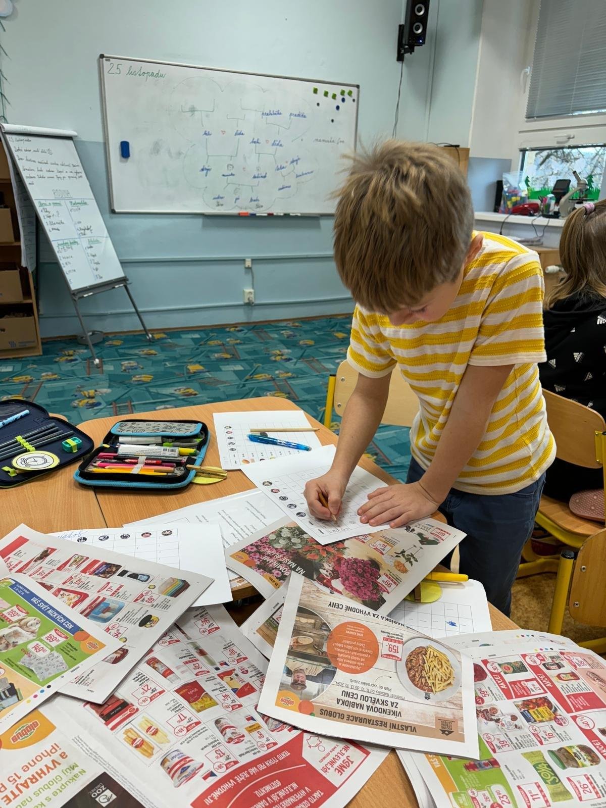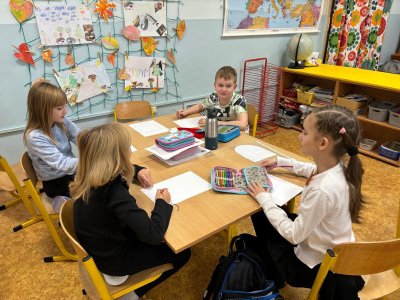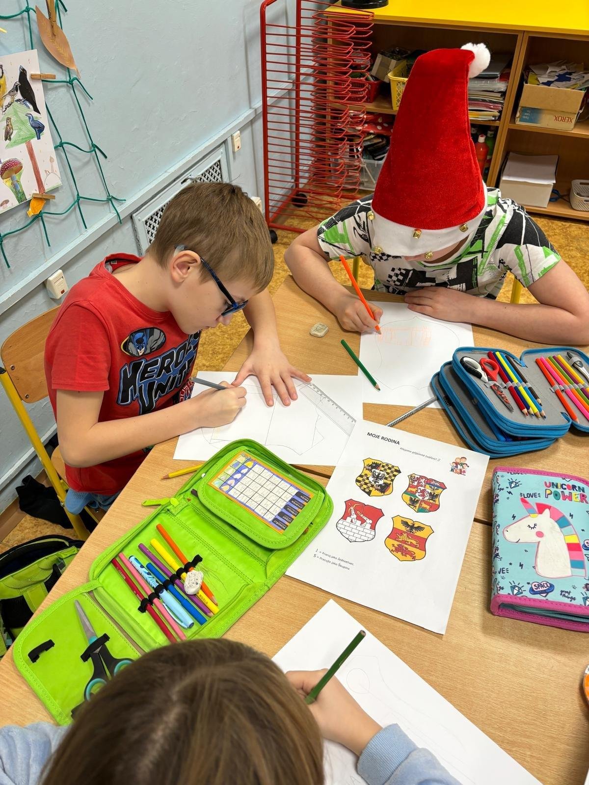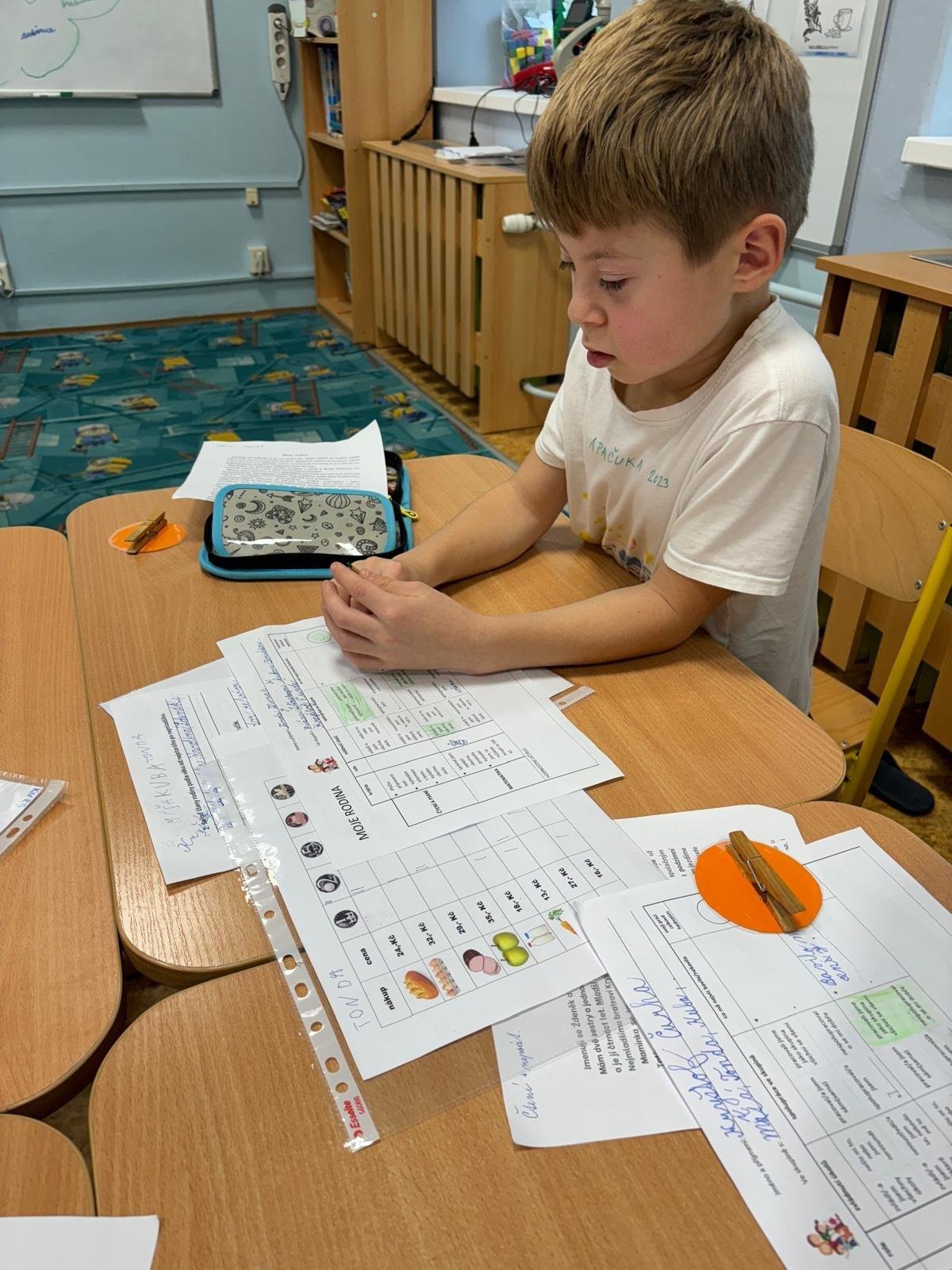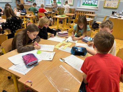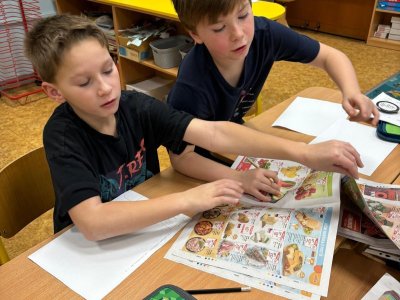 Děti se samostatně rozřadiliy do skupinek, ve kterých celý týden pracovaly. V centrech čtení a psaní, matematika, jazykové hrátky a ateliér se zamýšlely nad rodinnými nákupy, řešily hádanky o členech rodiny, nebo třeba vymýšlely rodinné erby.