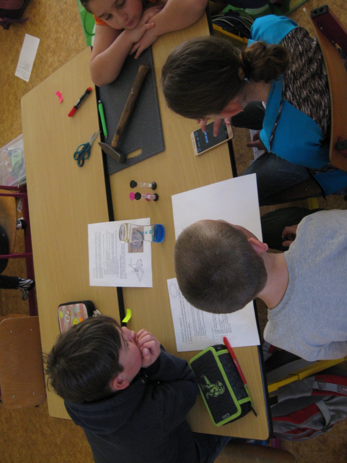 Děti si vyráběly sluneční i vodní hodiny, měřily čas v přesýpacích hodinách, kreslily, jak různá roční období mění krajinu. Krom toho si uvědomily, co všechno musíme za jeden jediný den udělat (těch sloves!!). Odhalily za čísly jednotlivé časové údaje i popraly se s časovými pásmy.
