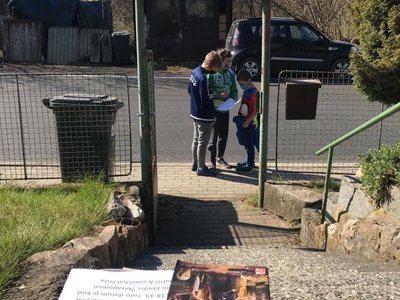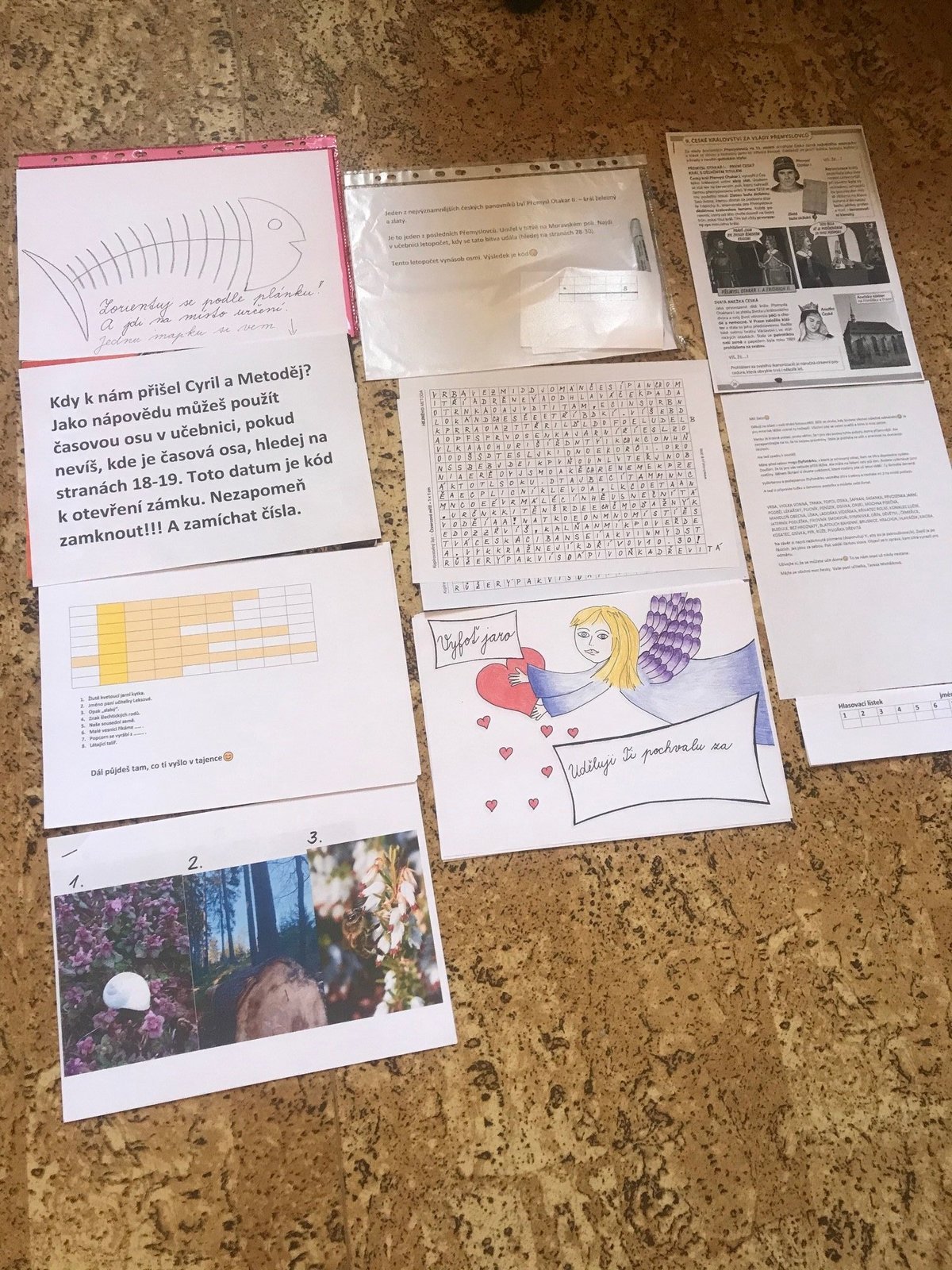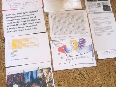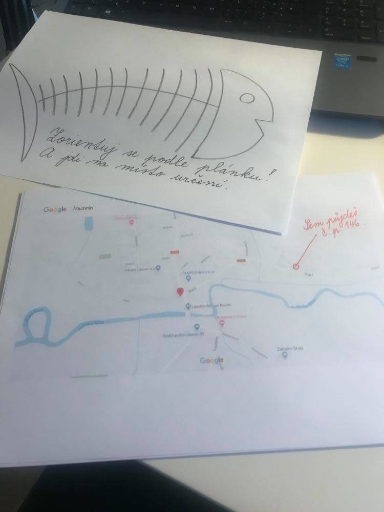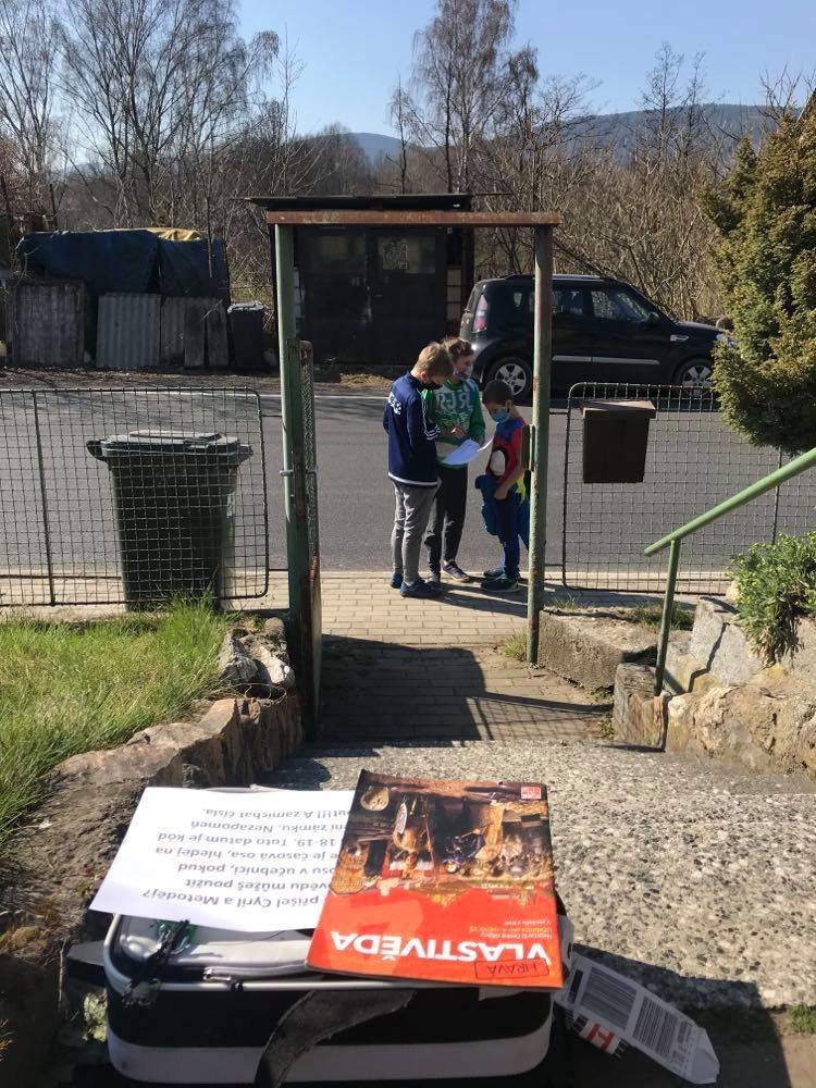 A protože máme dobu koronavirovou, rozhodla jsem se vyhlášení soutěže uspořádat netradičním způsobem. Ve středu večer si děti vyzvedly u pošty čtyřsměrku, která jim měla odhalit první indicii v cestě za odměnou. A ve čtvrtek vše začalo a hned ekologicky u kontejnerů s tříděným odpadem. Tam si žáčci krom třídění vyzvedli mapku, podle které pokračovali dál. Pak je už čekaly úkoly z dějepisu, matematiky, křížovka...