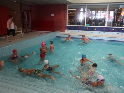 Dnes děti poprvé skočily do bazénu a zahájily svůj plavecký výcvik. Trenérky si je "vyzkoušely" a rozřadily do družstev, ve kterých budou od příště plavat. Došlo i na radovánky v malém bazénku. Už se těšíme na příště.