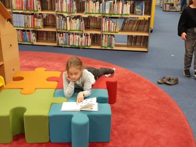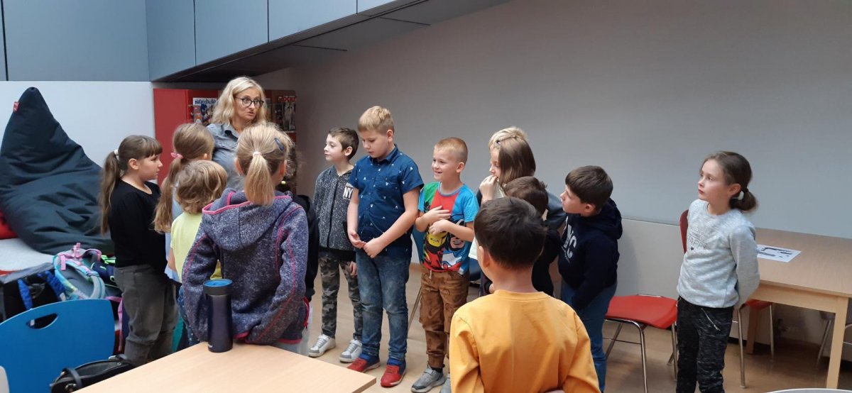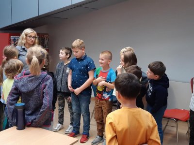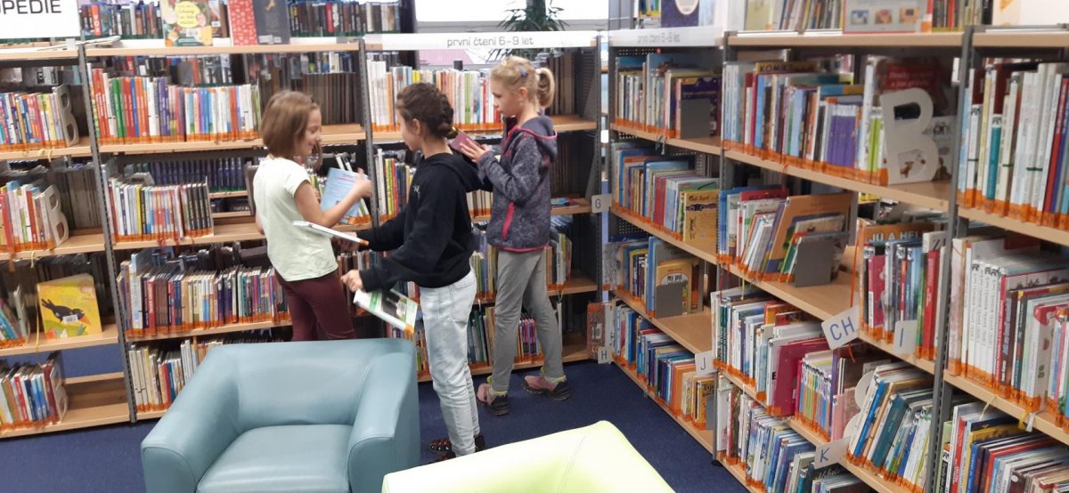 Letos poprvé jsme se vypravili do KVK v Liberci. Čekal na nás program ke knize "Paní Apolenka a jitrnicová záhada". Byla to práce opravdu detektivní. Od hledání jitrnic až po šťastný konec, plný jitrnic a lásky. Pro mnohé děti to byla první návštěva "velké knihovny", a tak jsme si budovu prohlédli, ukázali a mnozí si i zařídili svůj čtenářský průkaz. V listopadu nás čeká hudební oddělení. Už teď se těšíme - půjdeme ještě o jedno patro výš!