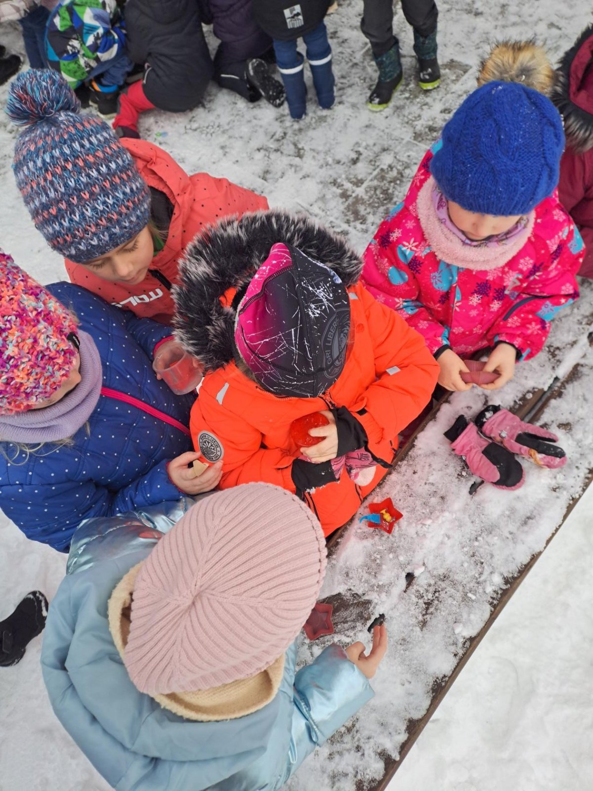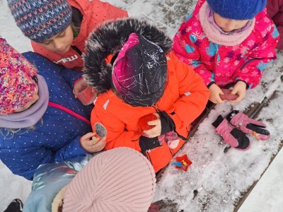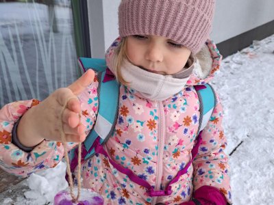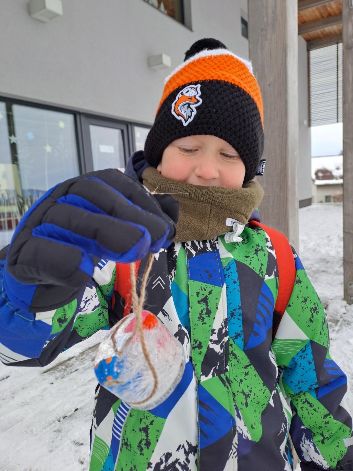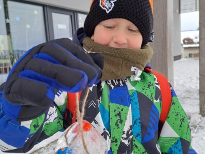 Zima nám konečně ukázala svou pravou tvář. Využili jsme toho, a než se nám zase oteplí, vytvořili jsme s prvňáčky krásné ledové ozdoby.