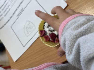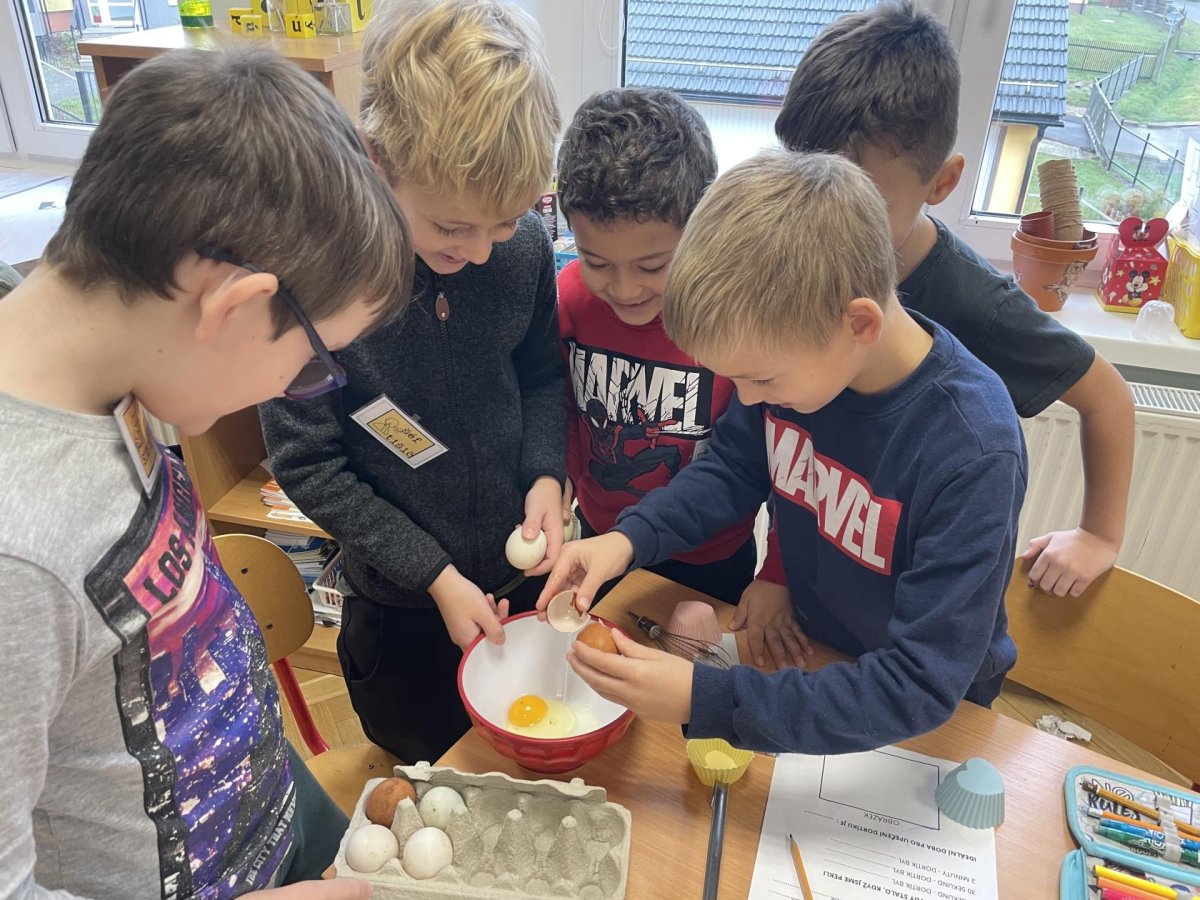 Zahráli jsme si na kuchaře a zkoumali jsme, jaký by mohl být ideální čas pro upečení mugcake dortíků. Děti musely nejprve sestavit z jednotlivých kroků recept, vytvořit těsto a během 3 pokusů pak mugcake pekly a zkoumaly, kolik času je třeba na to, aby byl dortík dostatečně propečený, ale ne spálený. Za odměnu si pak upekly dobře propečené dortíky, nazdobili si je podle svého a s radostí si na nich pochutnaly.