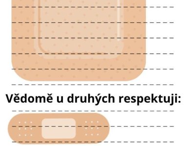 Každý z nás si proto napsal na náplast, na co by si přál, aby druzí brali častěji ohled. Tyto náplasti teď ve třídě připomínají, že máme různé potřeby a že se vyplatí naslouchat tomu, co je pro druhého důležité.