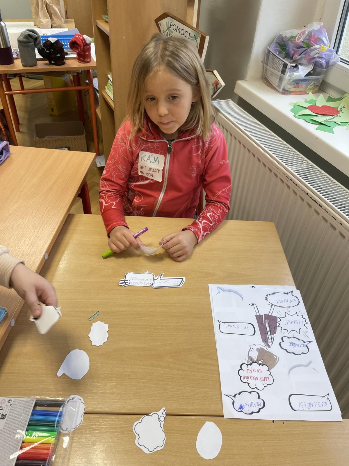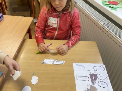 Na závěr si děti vytvořily vlastní portrét. Obrázek sebe jako superhrdiny doplnily o jejich silné a postavu pak popsaly krátkým textem, který shrnoval jejich jedinečné schopnosti.