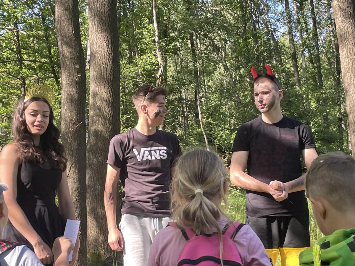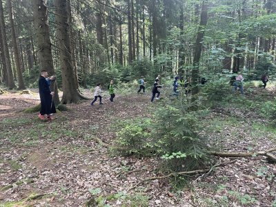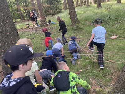 Deváťaci,naši super patroni,přichystali ke dni dětí prvňákům(a nejen jim) pohádkový les! Krásně užité dopoledne v přírodě a budování přátelských vztahů mezi žáky...paráda.