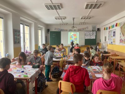 Tentokrát jsme se v hodině výtvarné výchovy ponořili do světa abstraktního umění, teorie barev a tvorby Pieta Mondriana. Děti se seznámily s jeho typickým stylem založeným na základních barvách, liniích a jednoduchých tvarech.