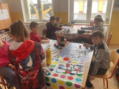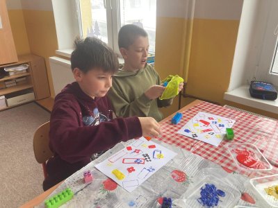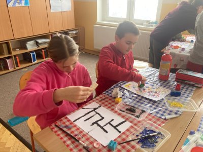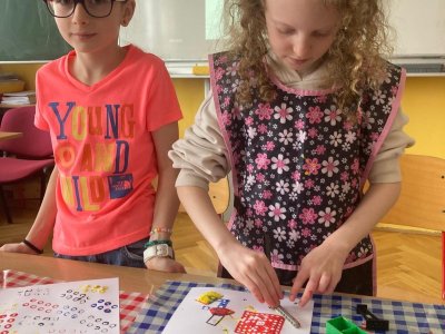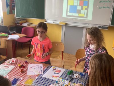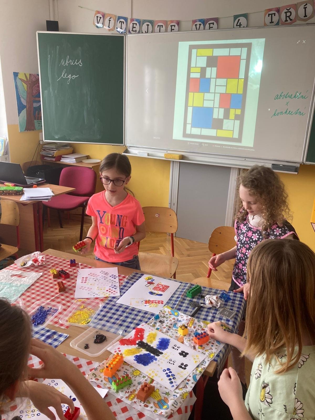 K napodobení jeho děl jsme zvolili netradiční techniku – tisk kostkami lega, která děti nadchla a podpořila jejich kreativitu. Vznikly originální práce plné barev, rytmu a hravosti. I tohle je výtvarka!