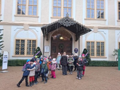 Školní výlet do zámku Loučeň se nesl v duchu klidu, radosti a blížících se Vánoc. Už při vstupu do zámku na nás dýchla sváteční atmosféra, umocněná vůní jehličí, jemnou výzdobou a světlem, které se odráželo od bohatě zdobených interiérů.