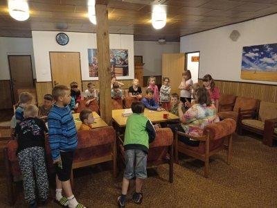 Ubytování, hřiště, dobré jídlo, znovu hřiště, malování na trička, představení plyšáků a pohádka a písničky na dobrou noc. Více fotografií zde.