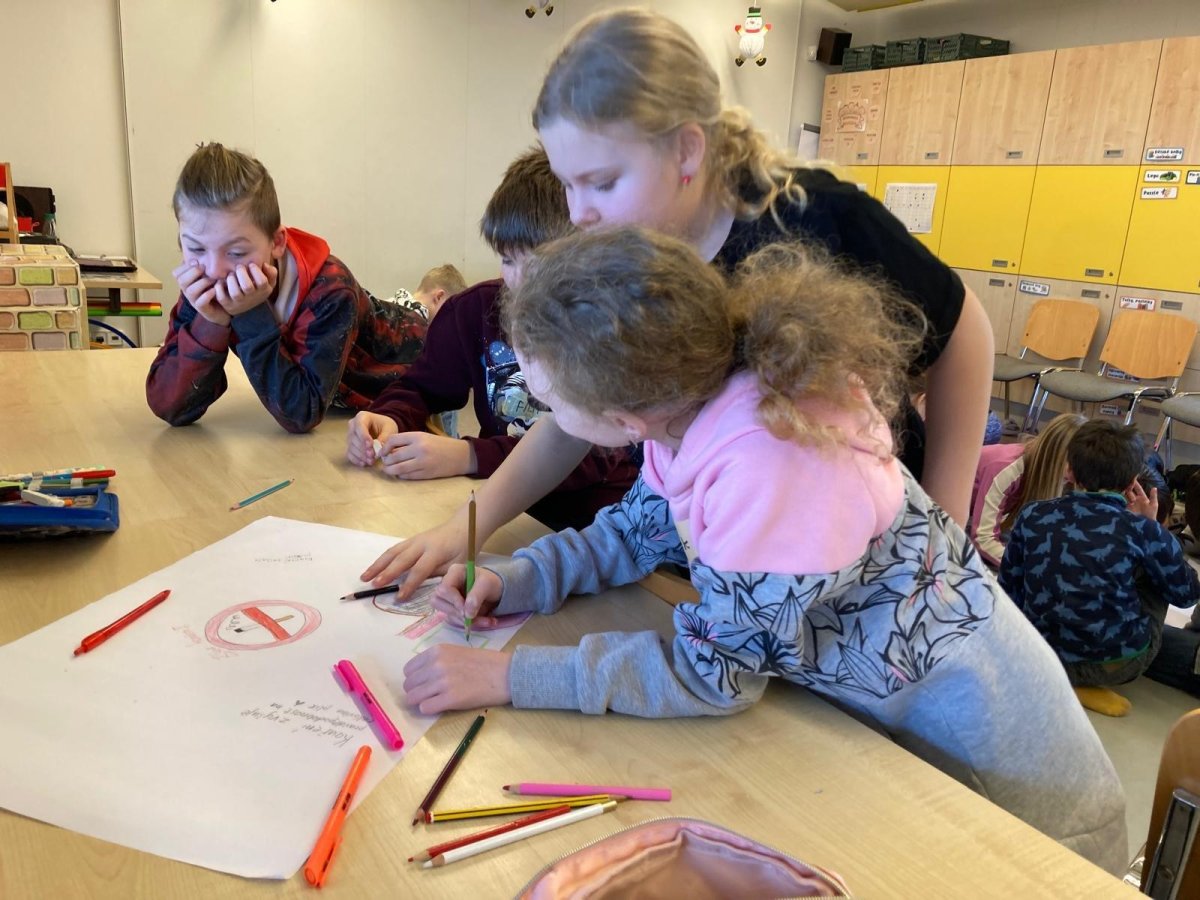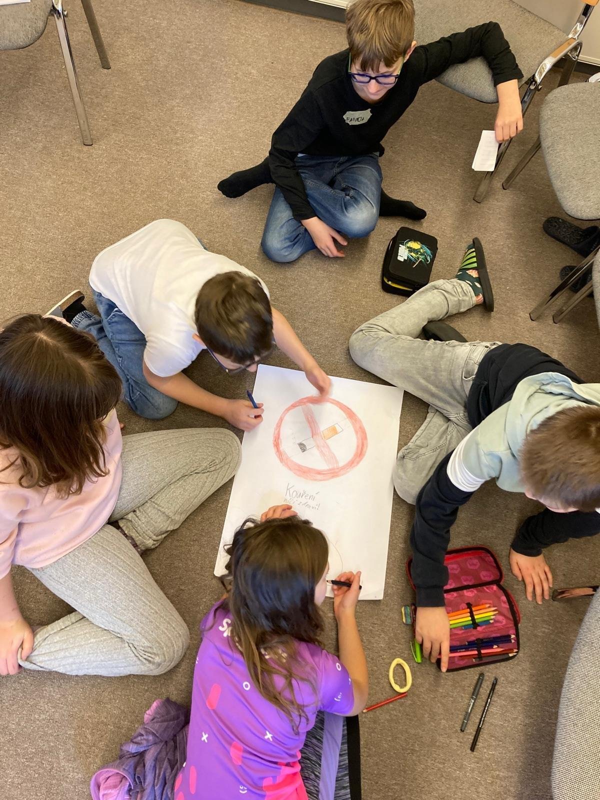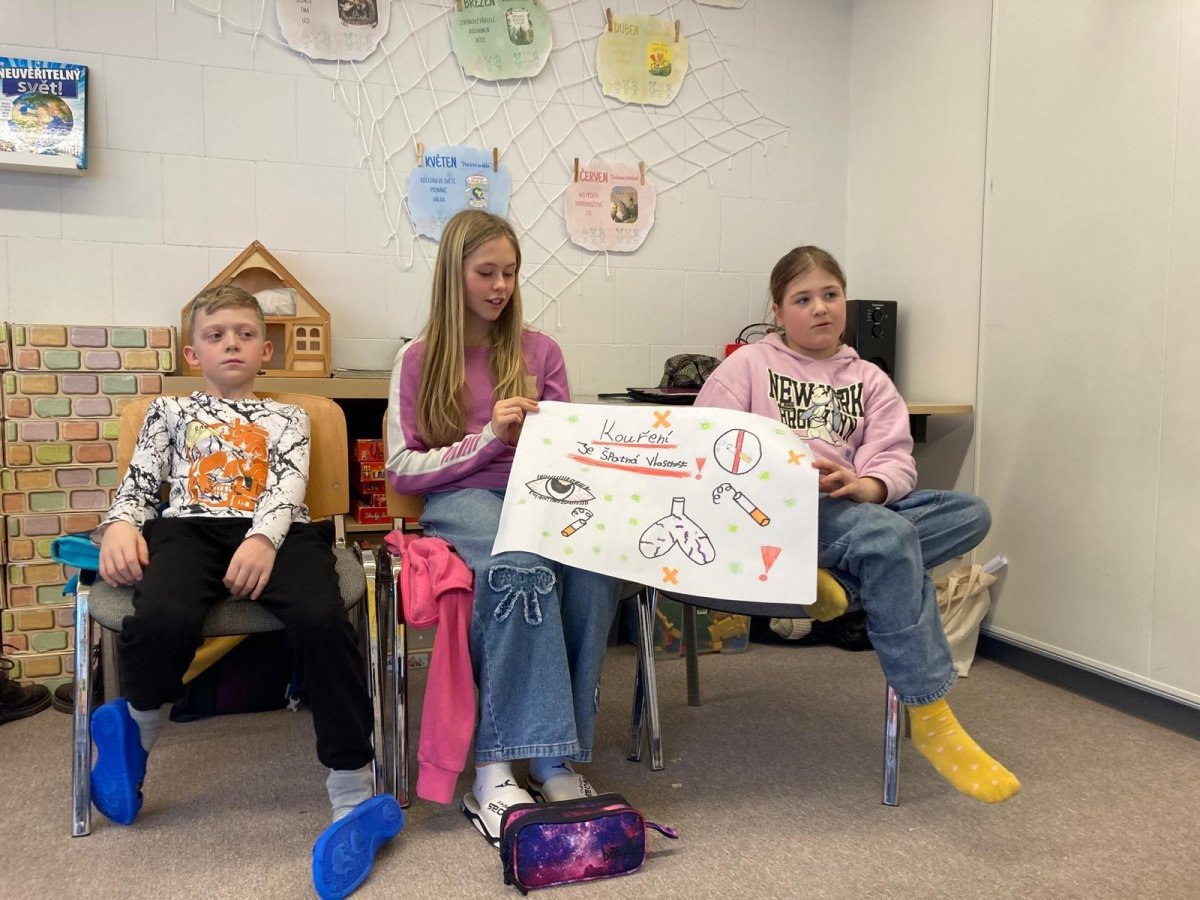Děti pracovaly ve skupinách, diskutovaly a přemýšlely nad situacemi, se kterými se mohou setkat v běžném životě. Společně si povídaly nejen o závislostech na návykových látkách, ale také o těch, které jsou dětem blízké – například v souvislosti s moderními technologiemi.