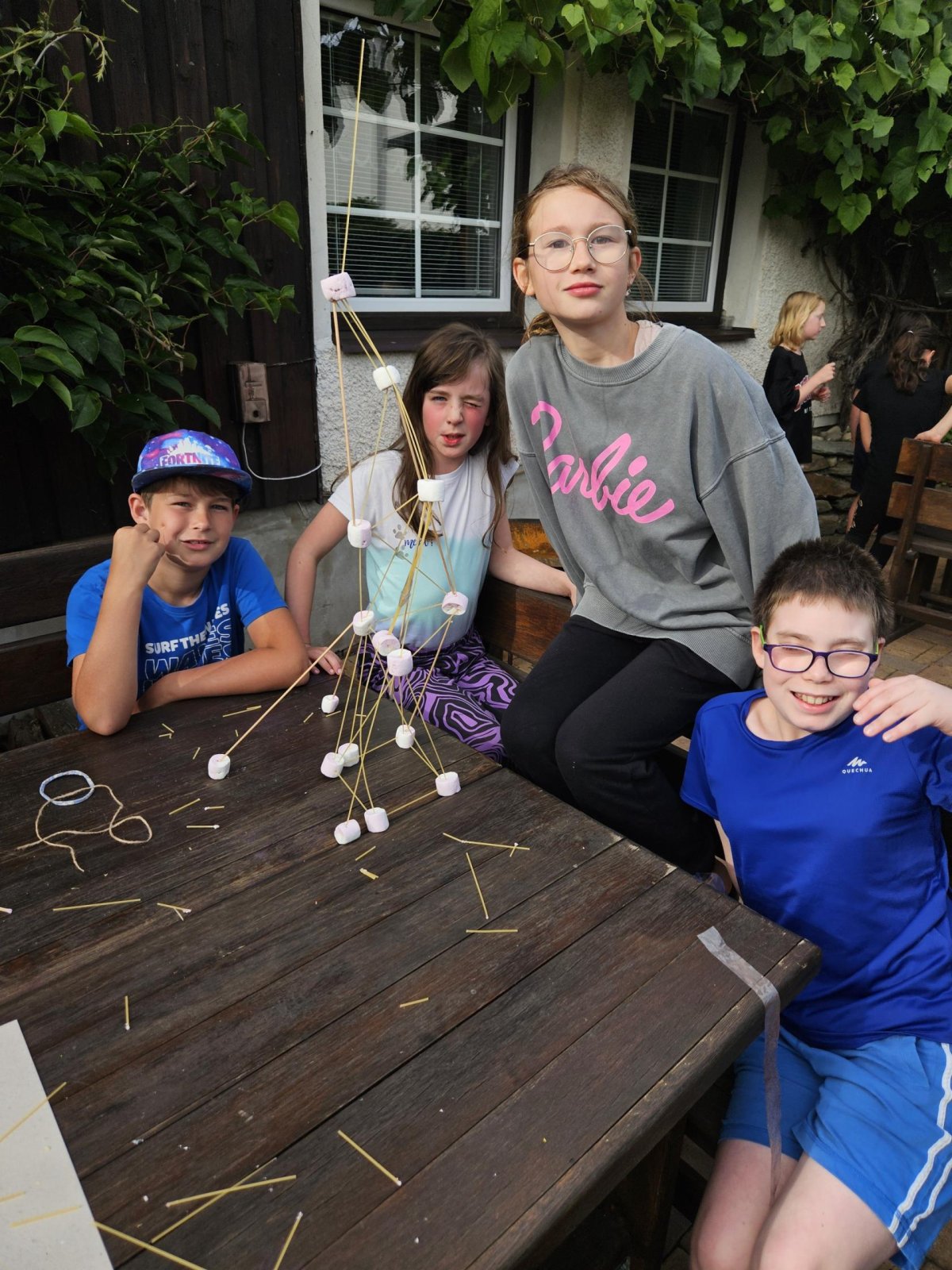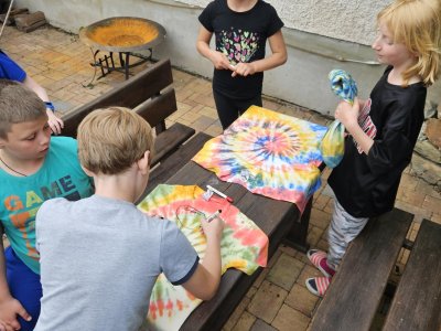 Ráno nás vyvezl autobus na Zlaté návrší. Vydali jsme se přes Mohylu Hanče a Vrbaty, Pančavský vodopád, Labskou boudu k prameni Labe. Dále na Dvoračky a do Rokytnice nad Jizerou. V nohách cca 15 km. po návratu nás čekala osvěžující odměna, nanuk a bazén. Předposlední hra do celotýdenní soutěže byla stavba věže z netradičního stavebního materiálu - špaget a marshmallownu. Po večeři podepisování triček, která jsme si včera nabatikovali a městečko Palermo. Poslední hra za tmy byla hledání zlatých kamínků. Zabaleno a hurá na kutě.