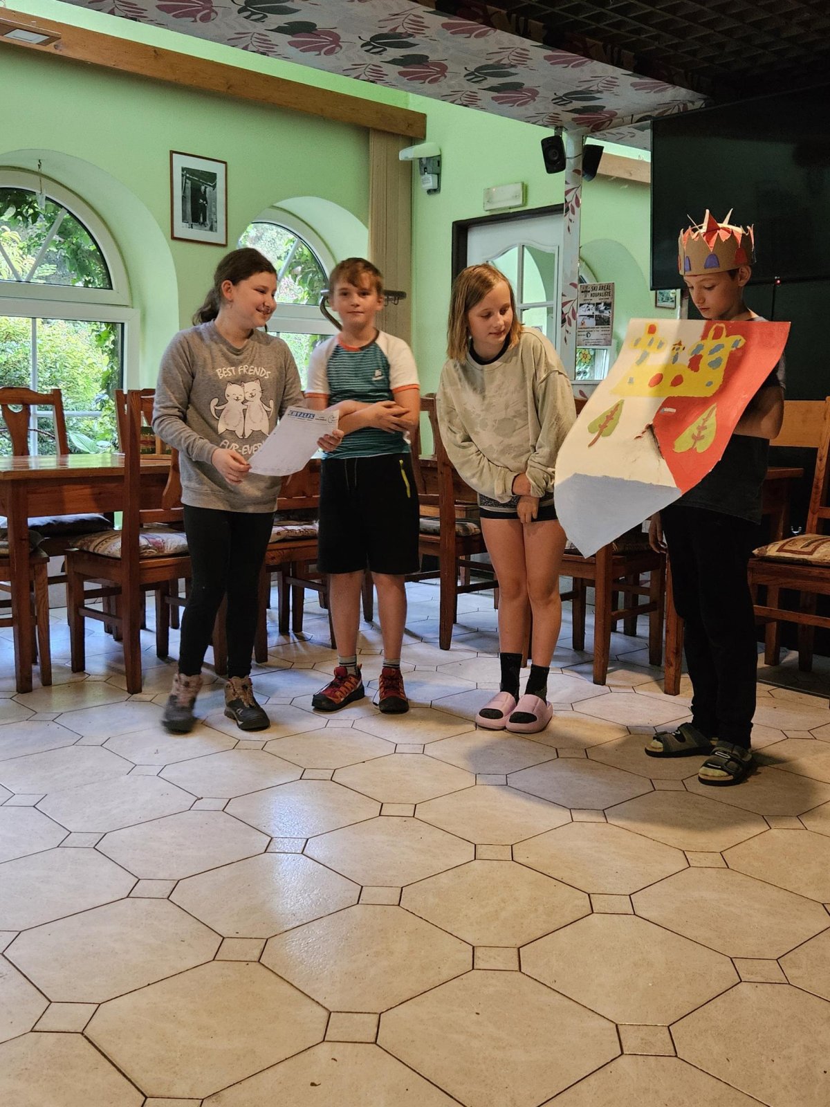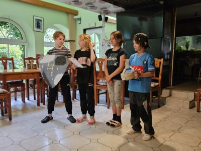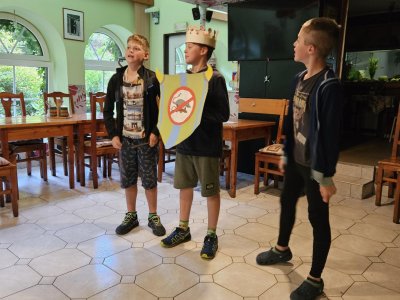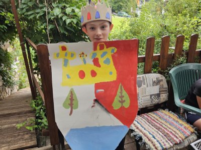 Dopoledne jsme se vydali na Vyhlídky na Stráži. Po obědě a zaslouženém poledním klidu jsme batikovali trička, psali cestovatelský deník. Po svačině následovala další hra do celotýdenní soutěže a to Rytíři kulatého stolu. Před večeří byl prostor na dotvoření královských korun, erbů a nácvik divadla. Večer došlo k představení rodů, erbů a k samotnému divadlu, za které opět získali body do soutěže. Za vydařebé výkony byl popcorn. Na závěr dne hra městečko Palermo a hurá na kutě.