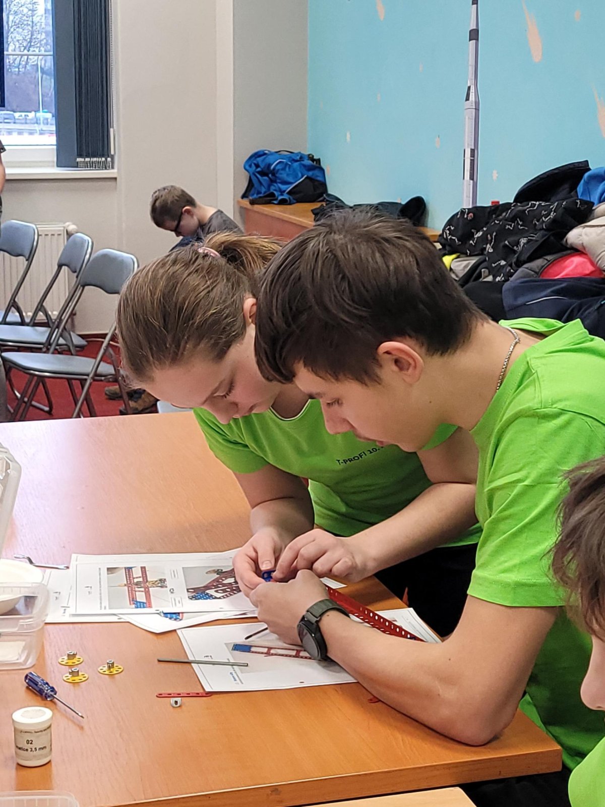 Soutěže T - profi je určená pro žáky základních a středních škol, kteří si pod vedením odborníků z firem testují své technické myšlení a dovednosti v oblastech mechaniky a elektrotechniky. Naši páťáci se připravují na soutěž společně se studenty 2. ročníku oboru elektrikář SŠ a MŠ Na Bojišti.