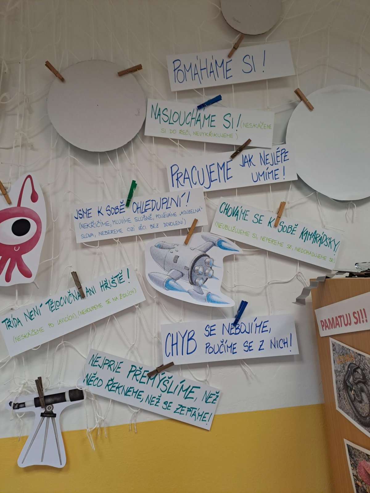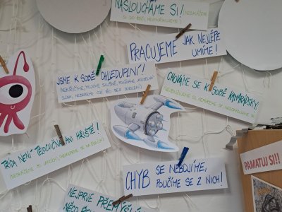 V prvních dnech školy jsme se také vrhly na sestavení třídních pravidel. Zavzpomínaly jsme, díky čemu nám bylo ve škole příjemně, co napomáhalo příjemné atmosféře a klimatu , za jakých podmínek se nám do bře pracovalo a kdy tomu všemu bylo naopak. Seskládali jsme nápady jednotlivých skupin, trochu je učesali, paní učitelka si nechala odsouhlasit i nějaký svůj návrh… A pravidla byla na světě!