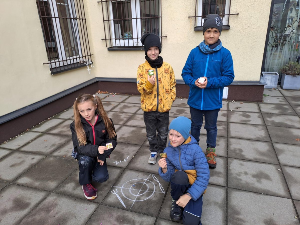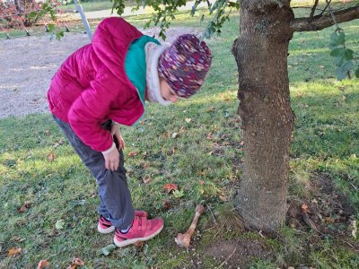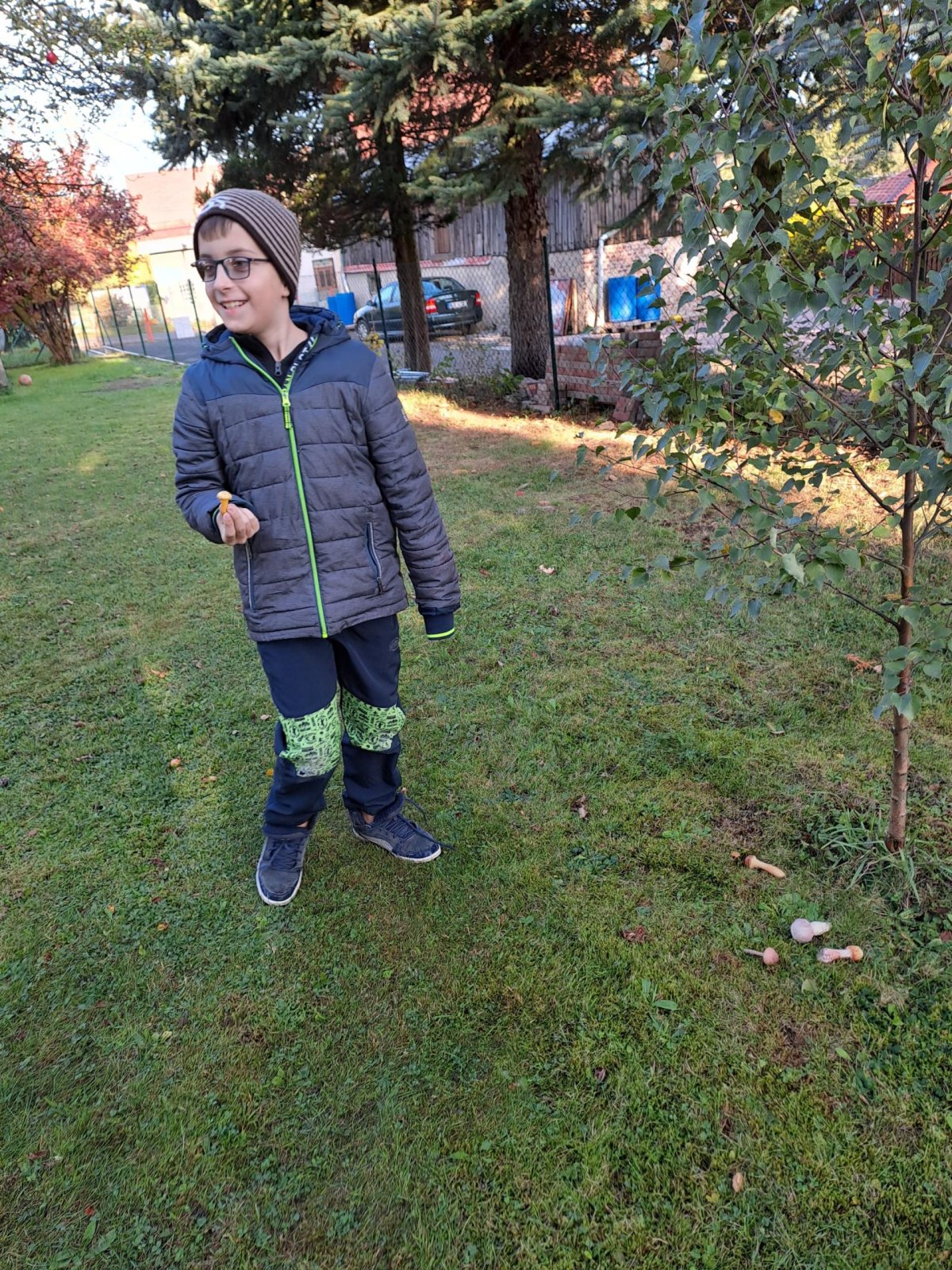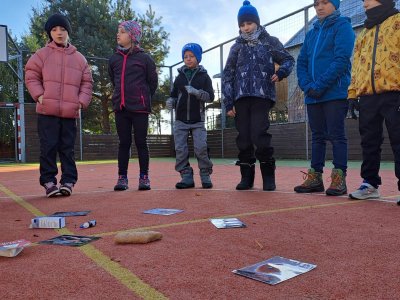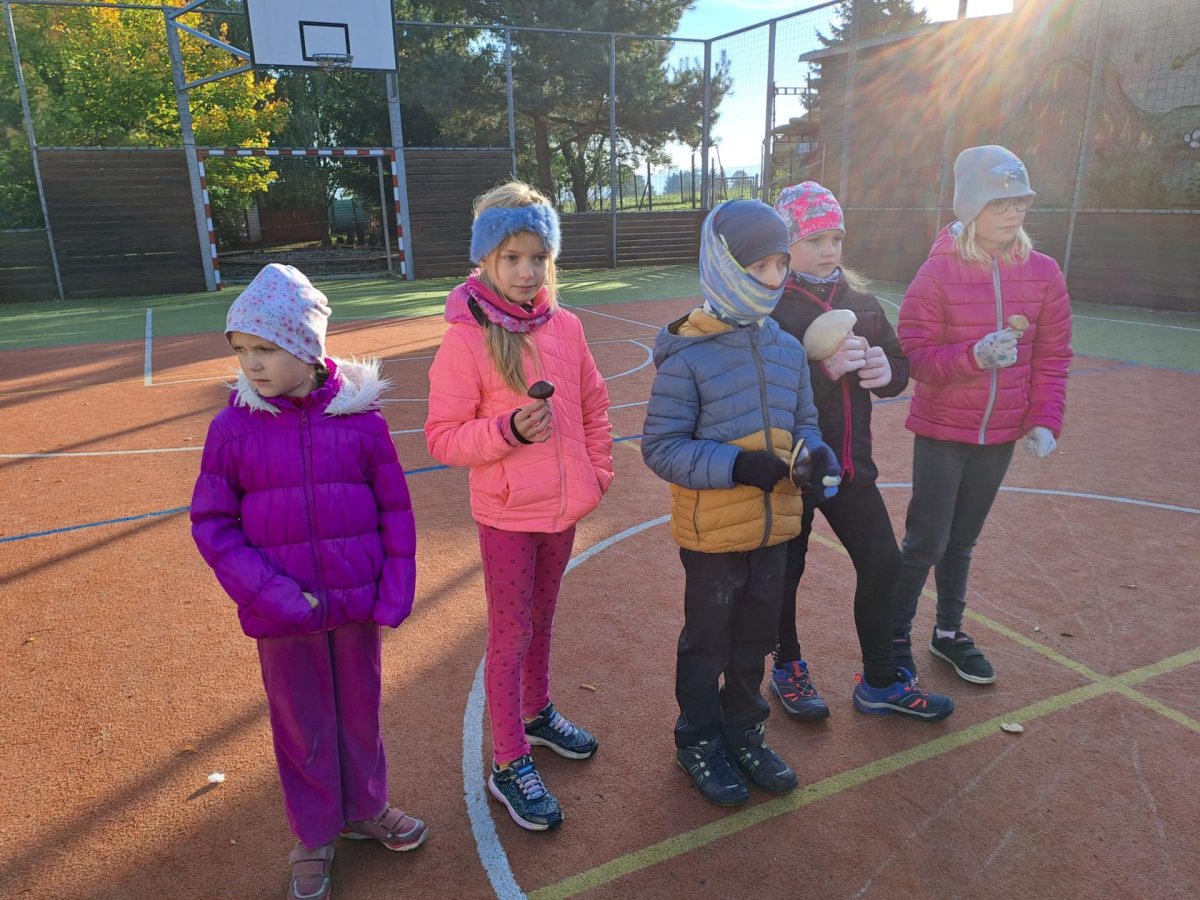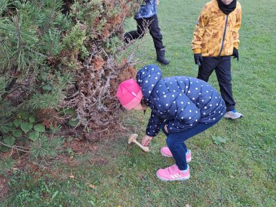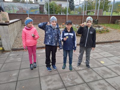 Při učení venku jsme také houbařili. Houby (jejich modely) jsme si sesbírali na školní zahradě, roztřídili je na ty, které mají zespod lupeny a které mají rourky; na jedlé, nejedlé a jedovaté. Spoustu druhů jsme si pojmenovali, třeťáci tak měli možnost některé nové druhy poznat a zapamatovat si je. Některé druhy, na které paní učitelka v lese narazila, jsme si ukázali naživo a přiřadili je k modelům a obrázkům.
