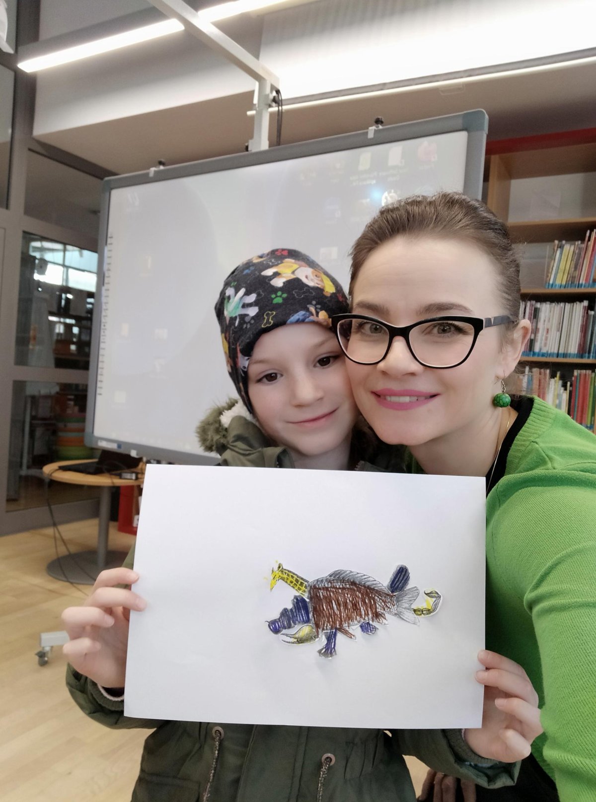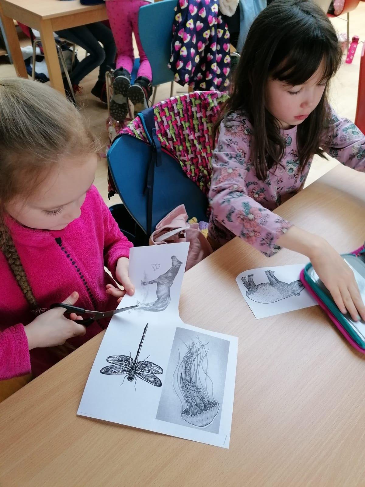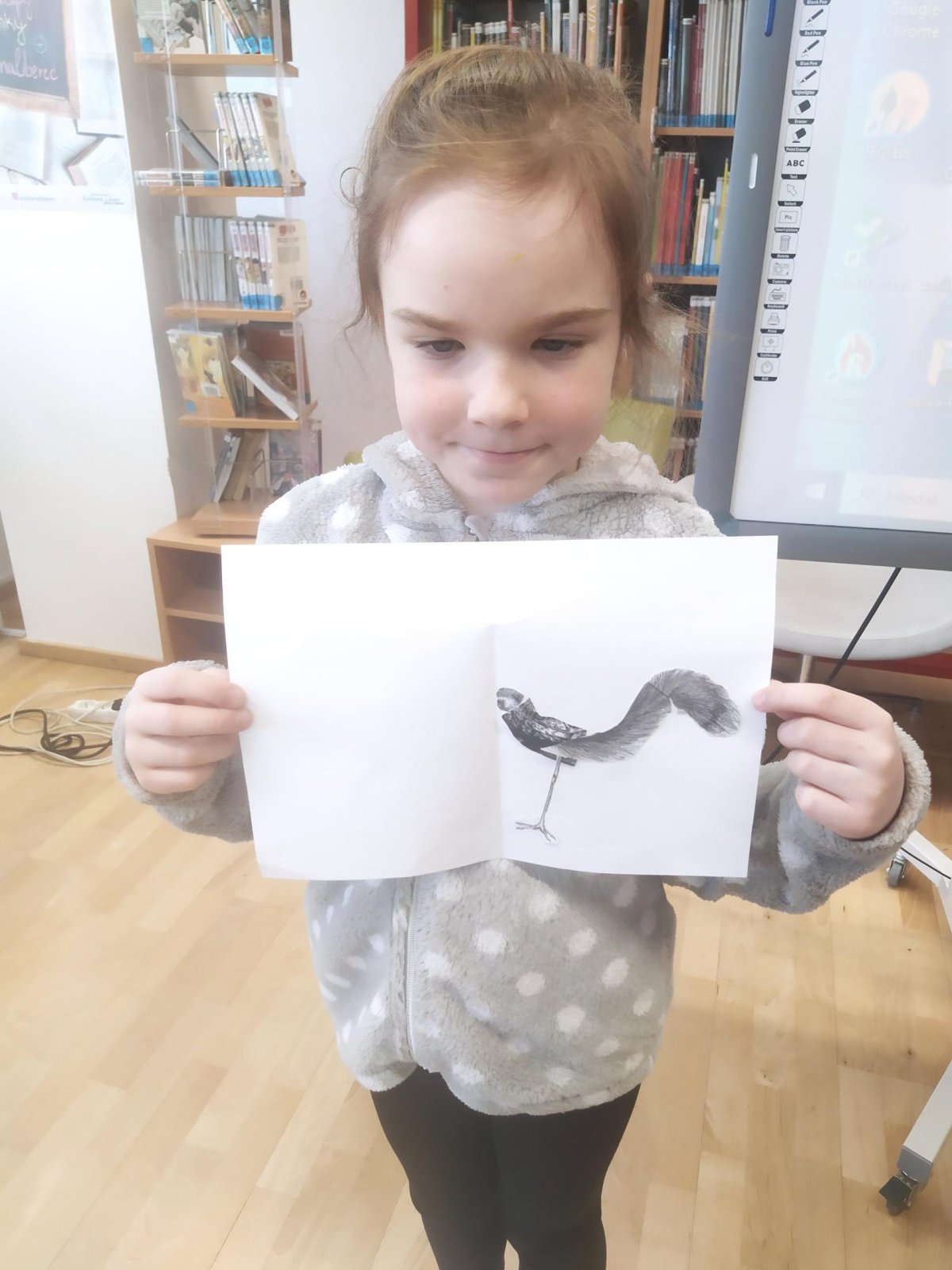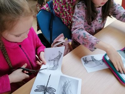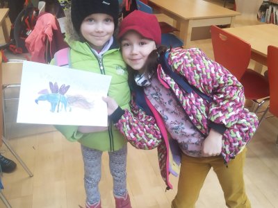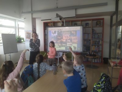 Středeční výlet do knihovny nám vydal na celé vyučovací dopoledne. Děti jsem obrovsky chválila za ukázněnost při cestě MHD. Připravený program v knihovně nad knihou Karneval zvířat byl knihovnicí velmi precizně připraven a náramně jsme si užili veškeré aktivity. Děti zaujala nejen kniha samotná, ale i následná tvůrčí aktivita - koláž, kdy sami vytvářely fantazijní zvířecí druhy. Počasí nám přálo, takže závěrečná jarní procházka od tramvaje ke škole byla příjemným završením celého dopoledne.