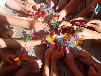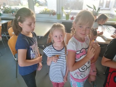 To už víme a taky jsme si vyrobili kytičku nebo motýlka.