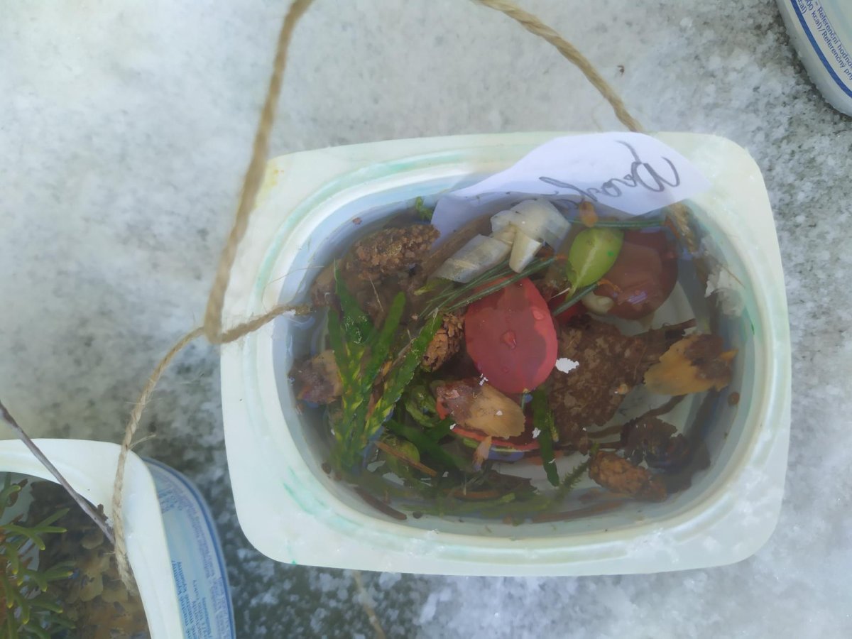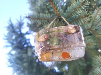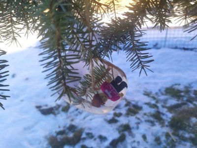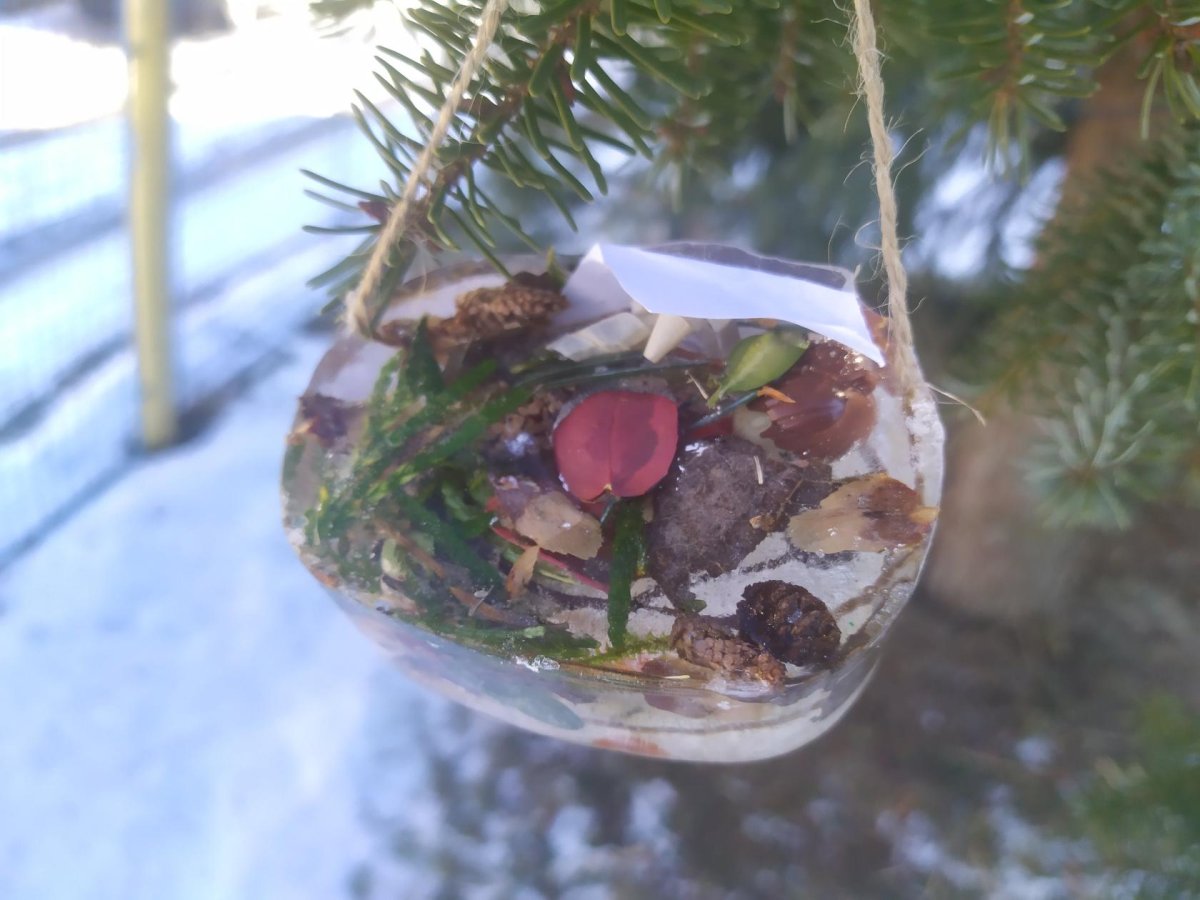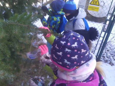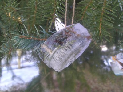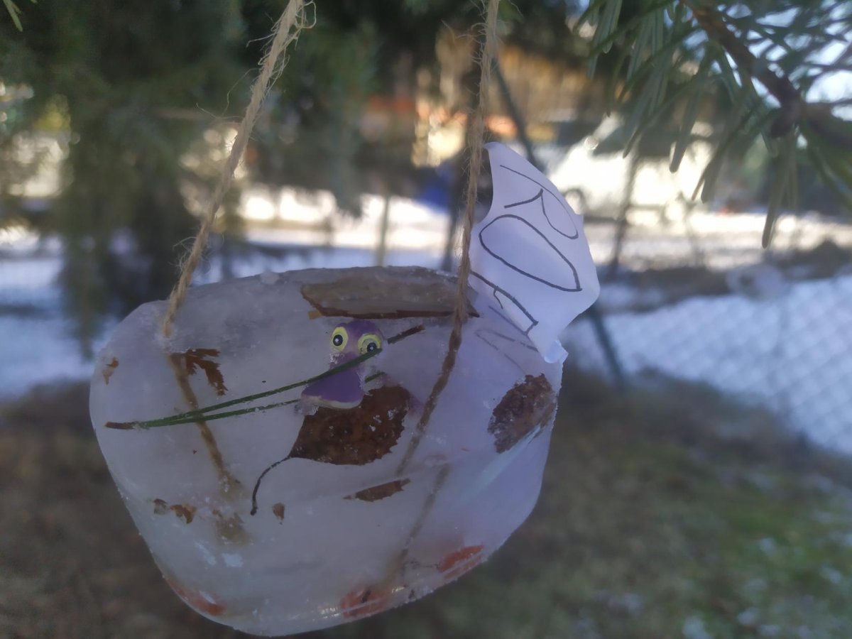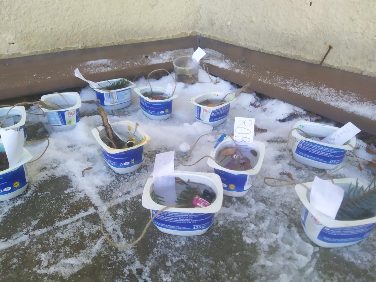 Mrazivé počasí na začátku února jsme využili k vyrábění ledových ozdob :-).
