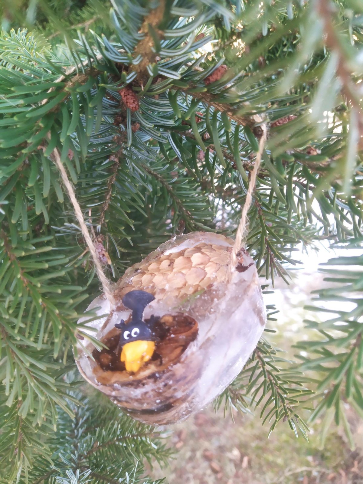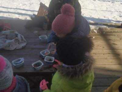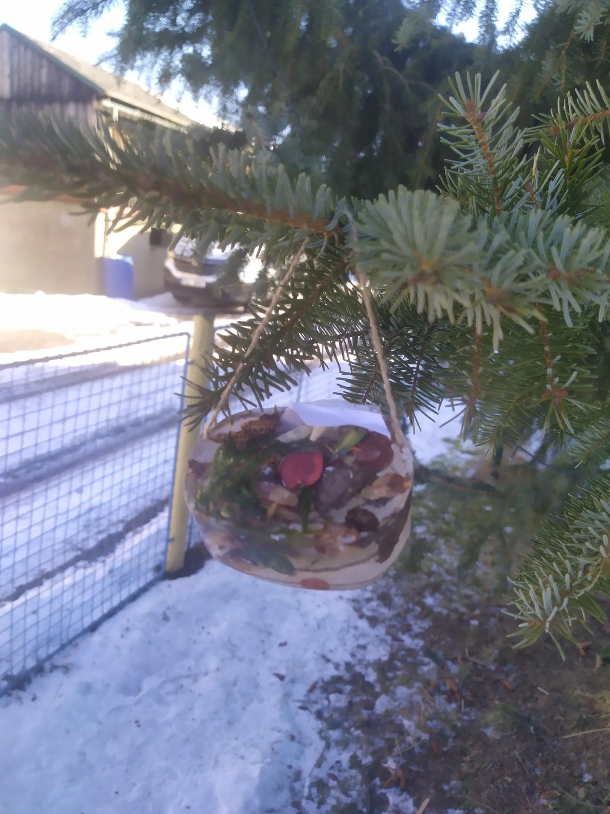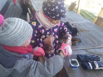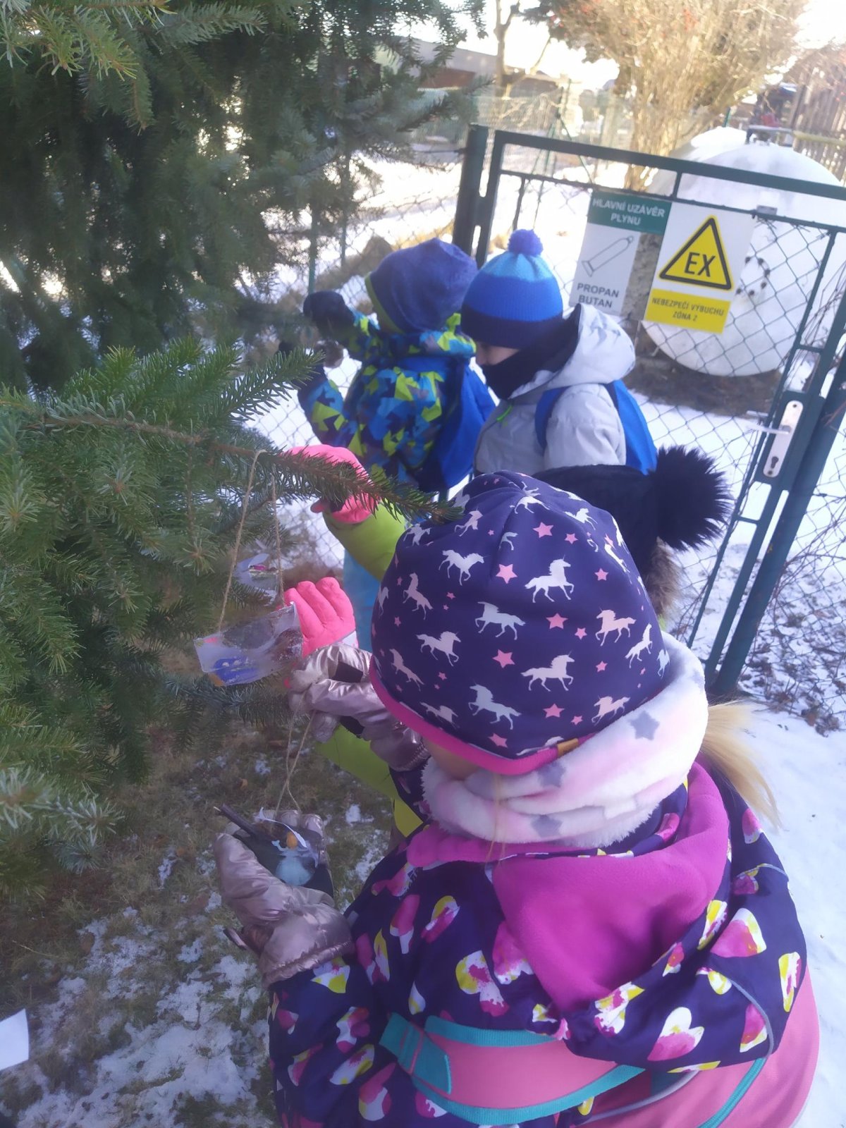 Mrazivé počasí na začátku února jsme využili k vyrábění ledových ozdob :-).