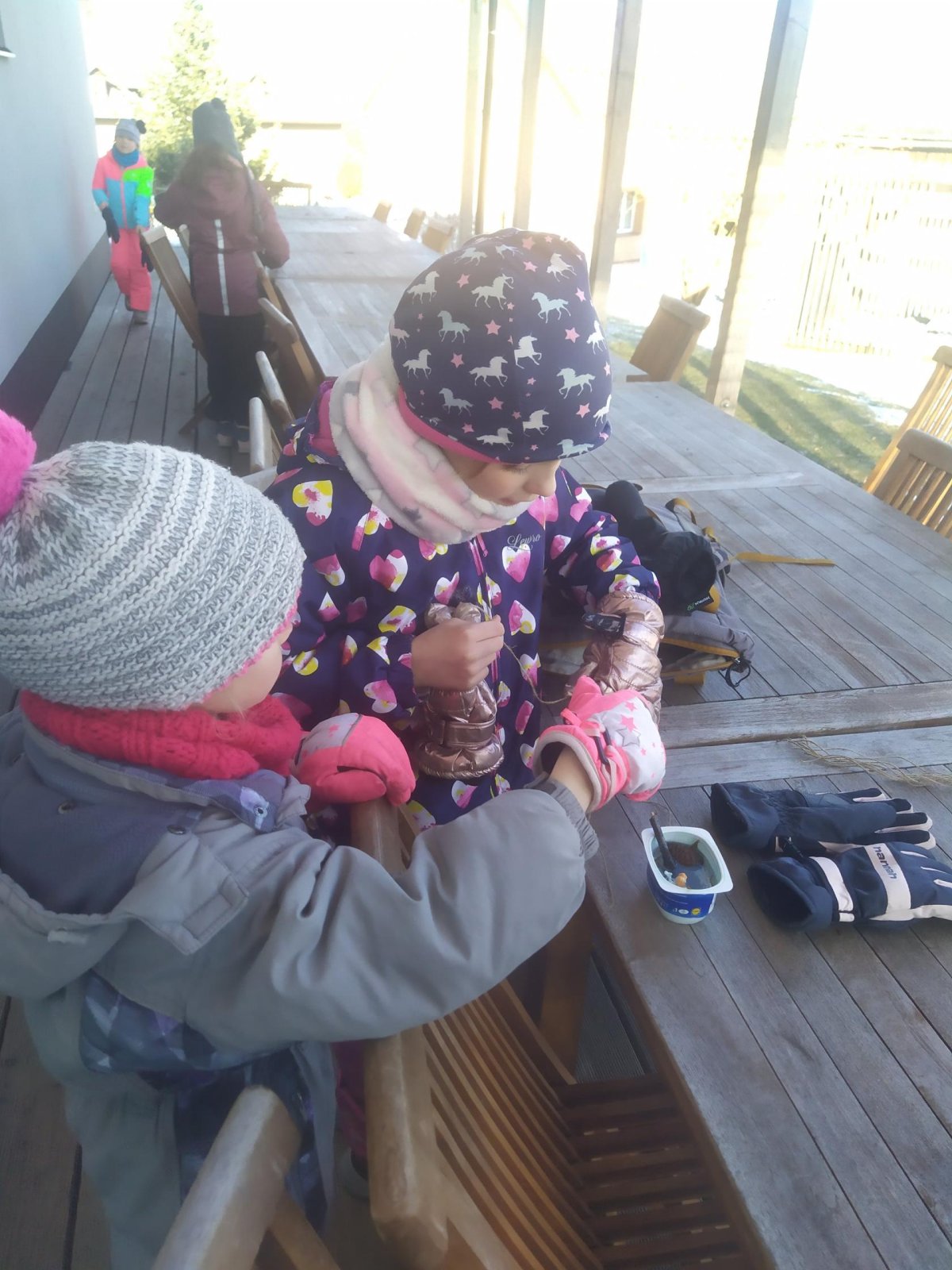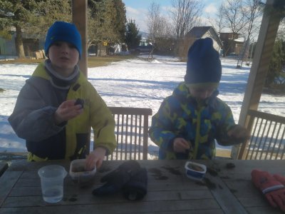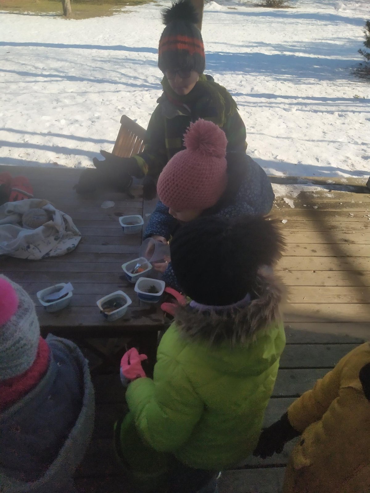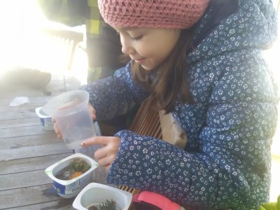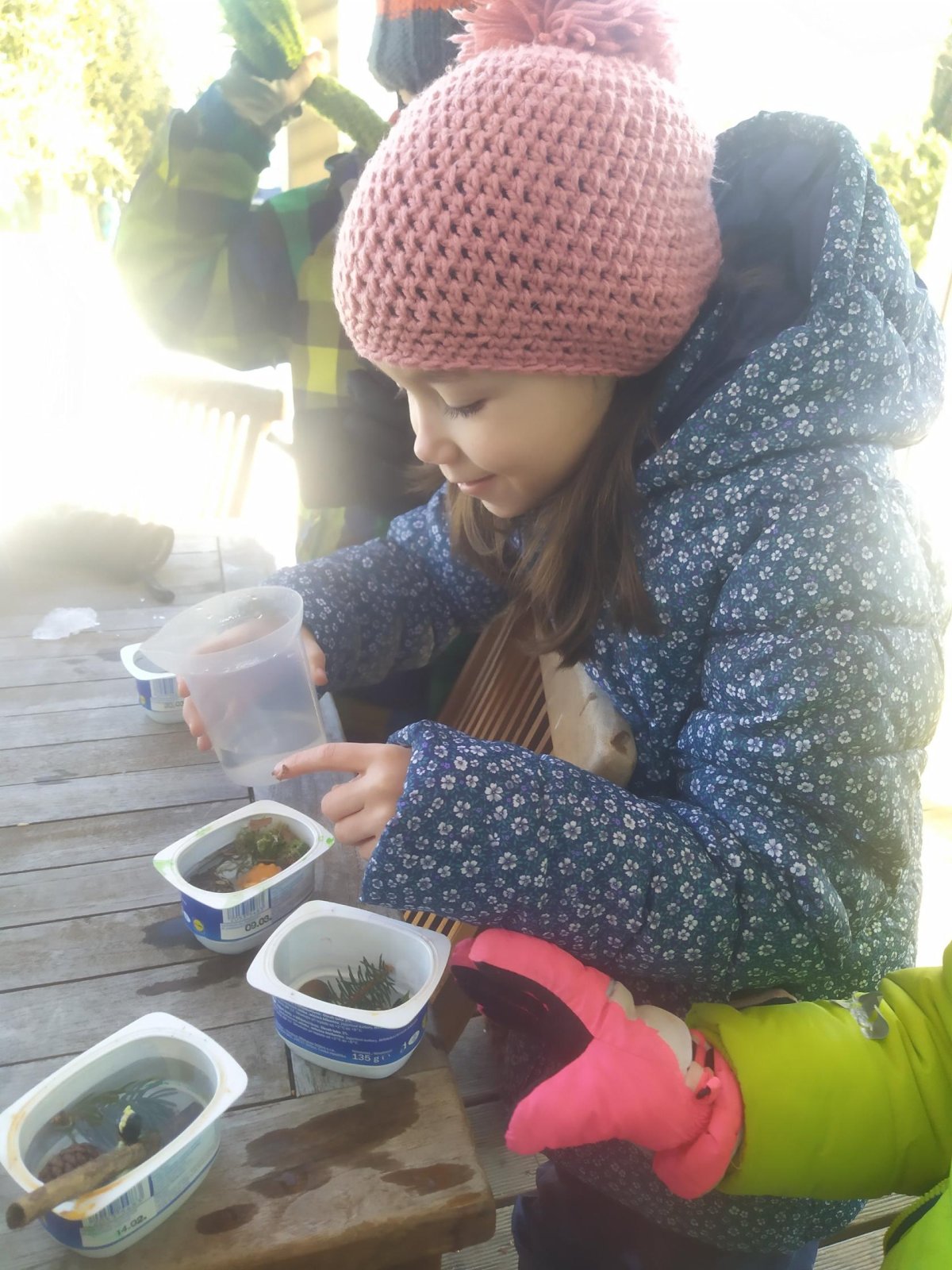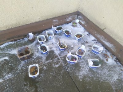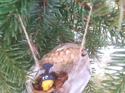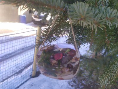 Mrazivé počasí na začátku února jsme využili k vyrábění ledových ozdob :-).
