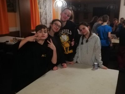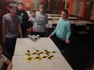 V úterý jsme zvládli nejenom lyžování dopoledne i odpoledne, ale společné večerní hry v jídelně.