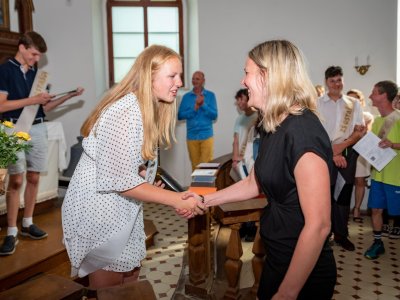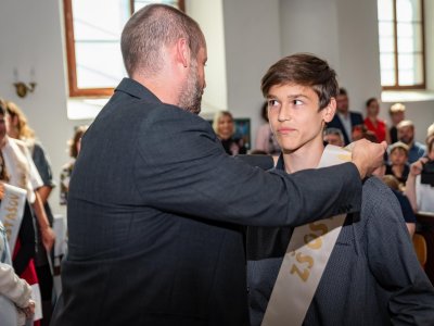 V rámci čtvrtečního programu "Zahradní slavnosti" na 2. stupni, proběhlo i slavnostní šerpování a loučení se s žáky 9. ročníku. Bylo prima se rozloučit s tak úspěšnou třídou, která měla okolo desítky vysvědčení s vyznamenáním a 11 špičkových ročníkových projektů.