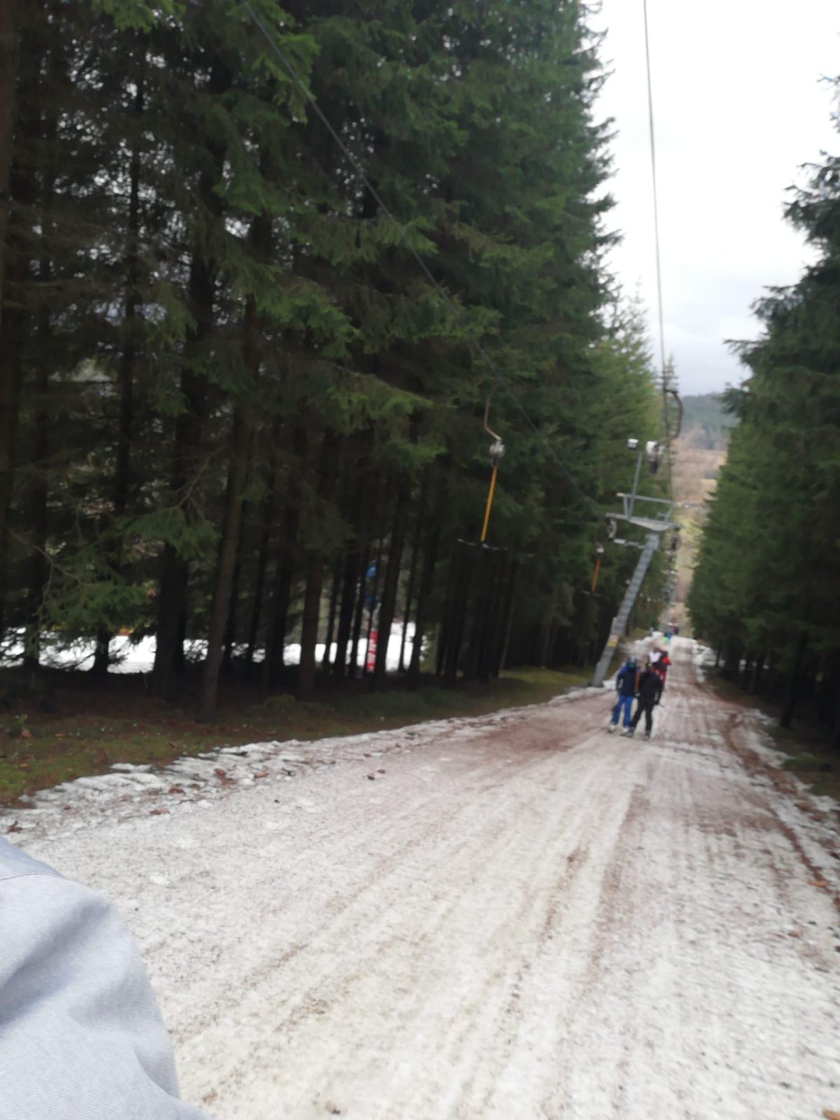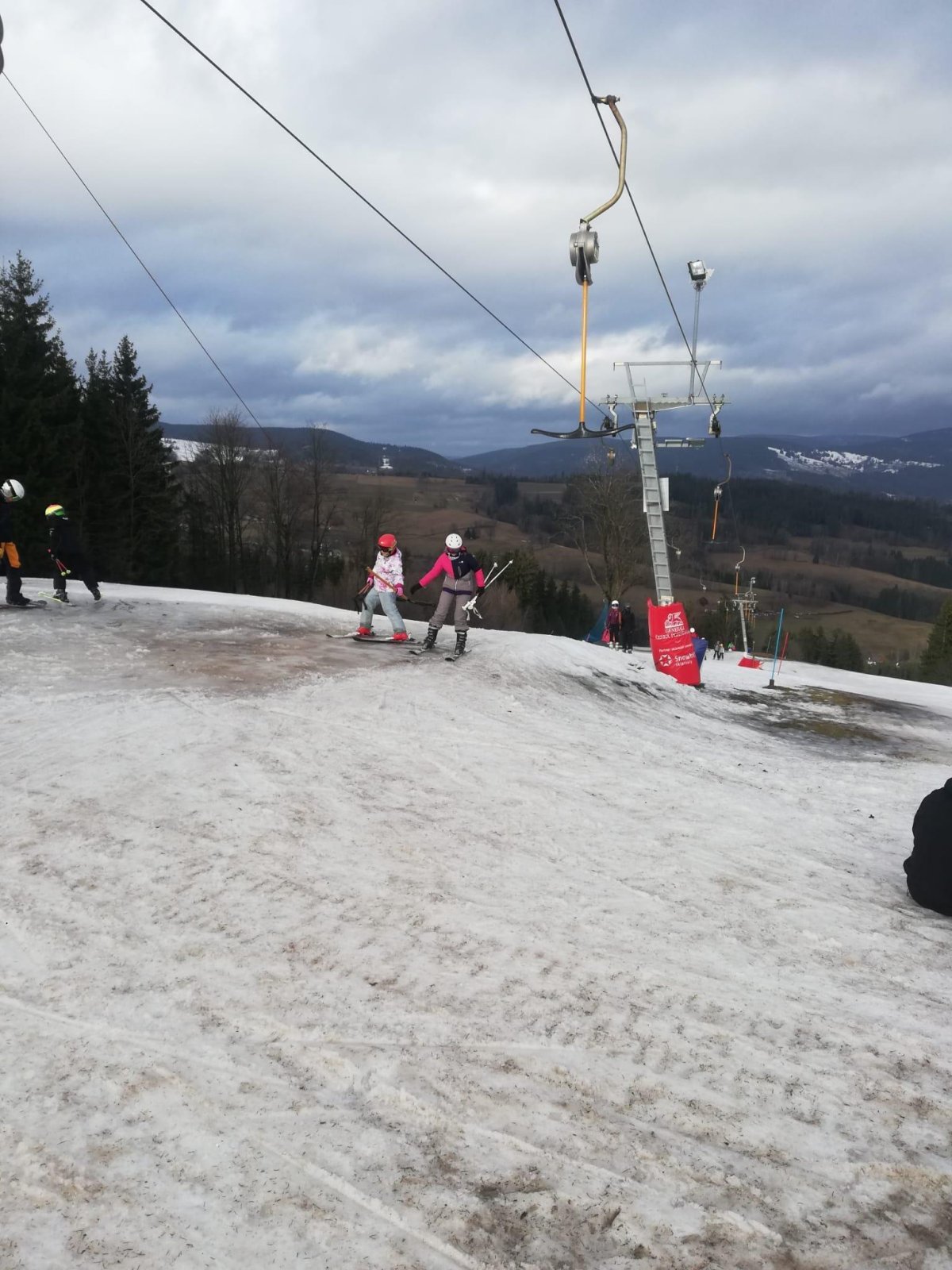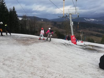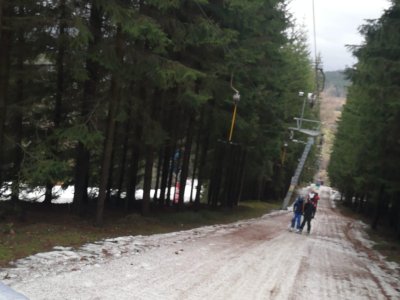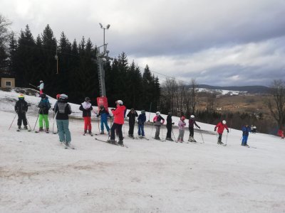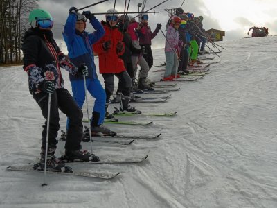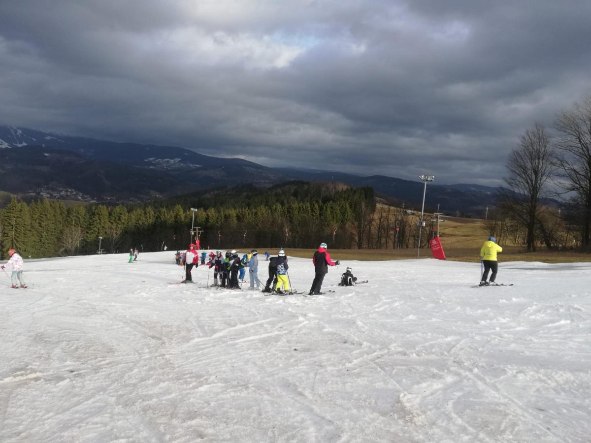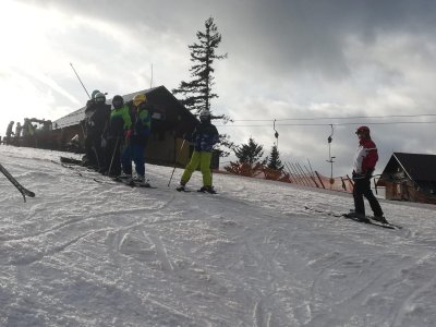 Po propršeném příjezdu, přišlo uplakané a větrné ráno. Stihli jsme zkontrolovat tělocvičnu se stolním tenisem, před obědem jsme se prošli k vlekům a prohlédli si malebné náměstí. A po obědě hurá na lyže... Nakonec vykouklo i sluníčko.