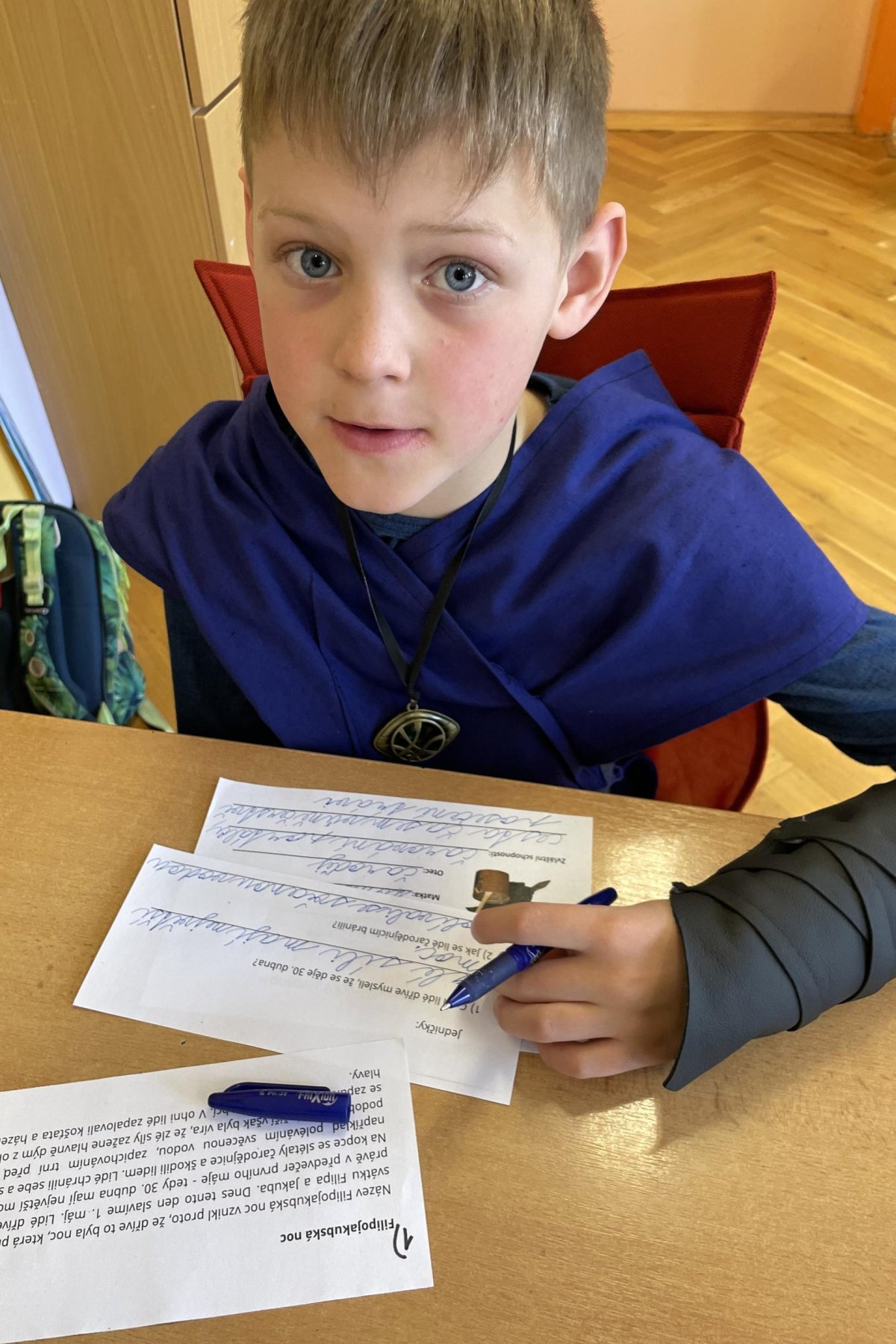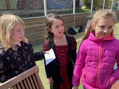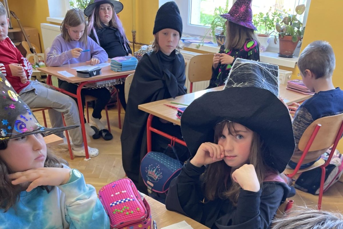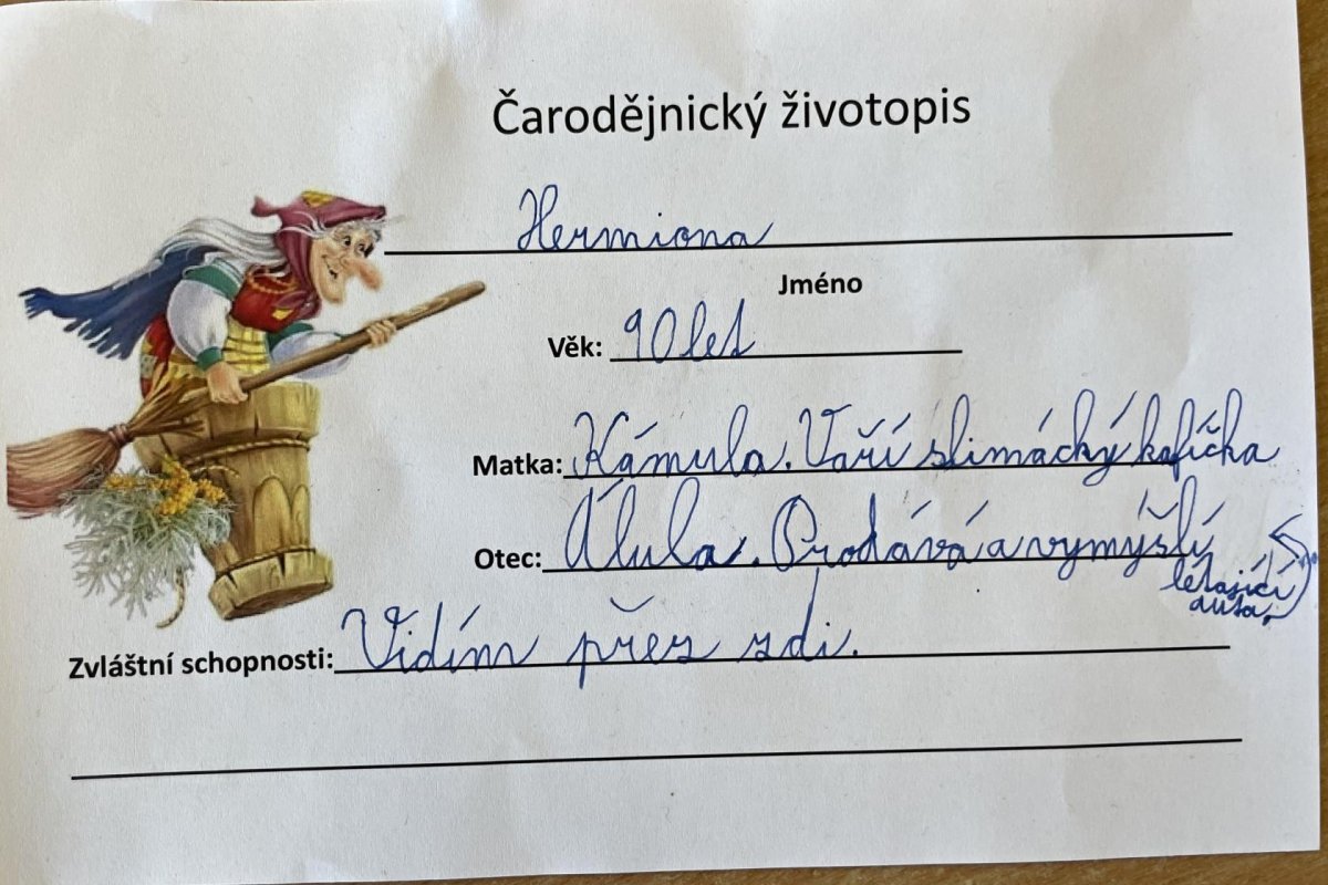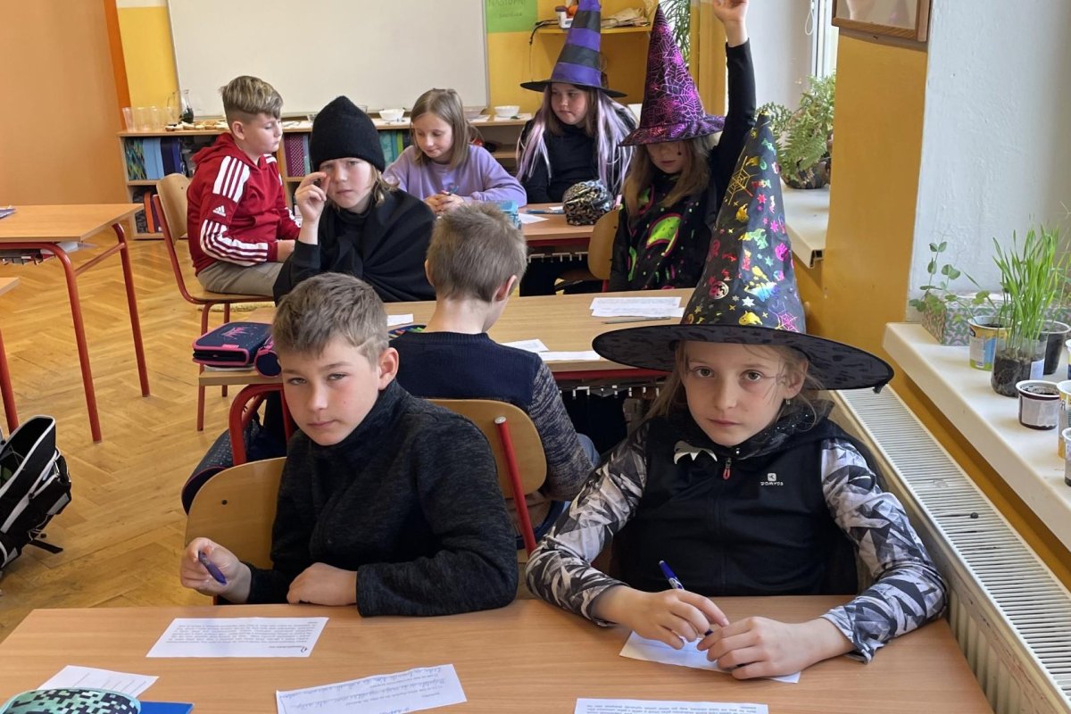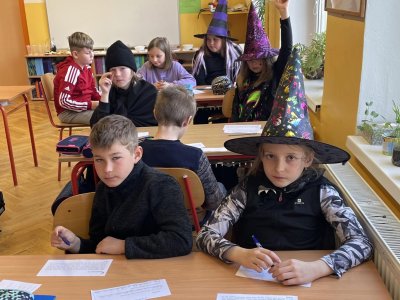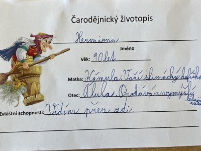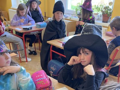 Třeťáci si dnes vyzkoušeli čarodějnické učení, především vaření z kouzelných bylin. Navázali tak na prvouku a mohli ochutnat pampelišku, medvědí česnek, popenec, šťovík, ptačinec žabinec či bršlici kozí nohu a k tomu si připít čajem z čerstvých kopřiv. Nejdříve ale museli názvy všech bylin vyluštit a také je správně přiřadit. Další hodinu jsme si přečetli něco o historii a tradici pálení čarodějnic. A nakonec šli malí čarodějové složit zkoušku zdatnosti, kterou si pro ně připravili páťáci. Moc děkujeme!