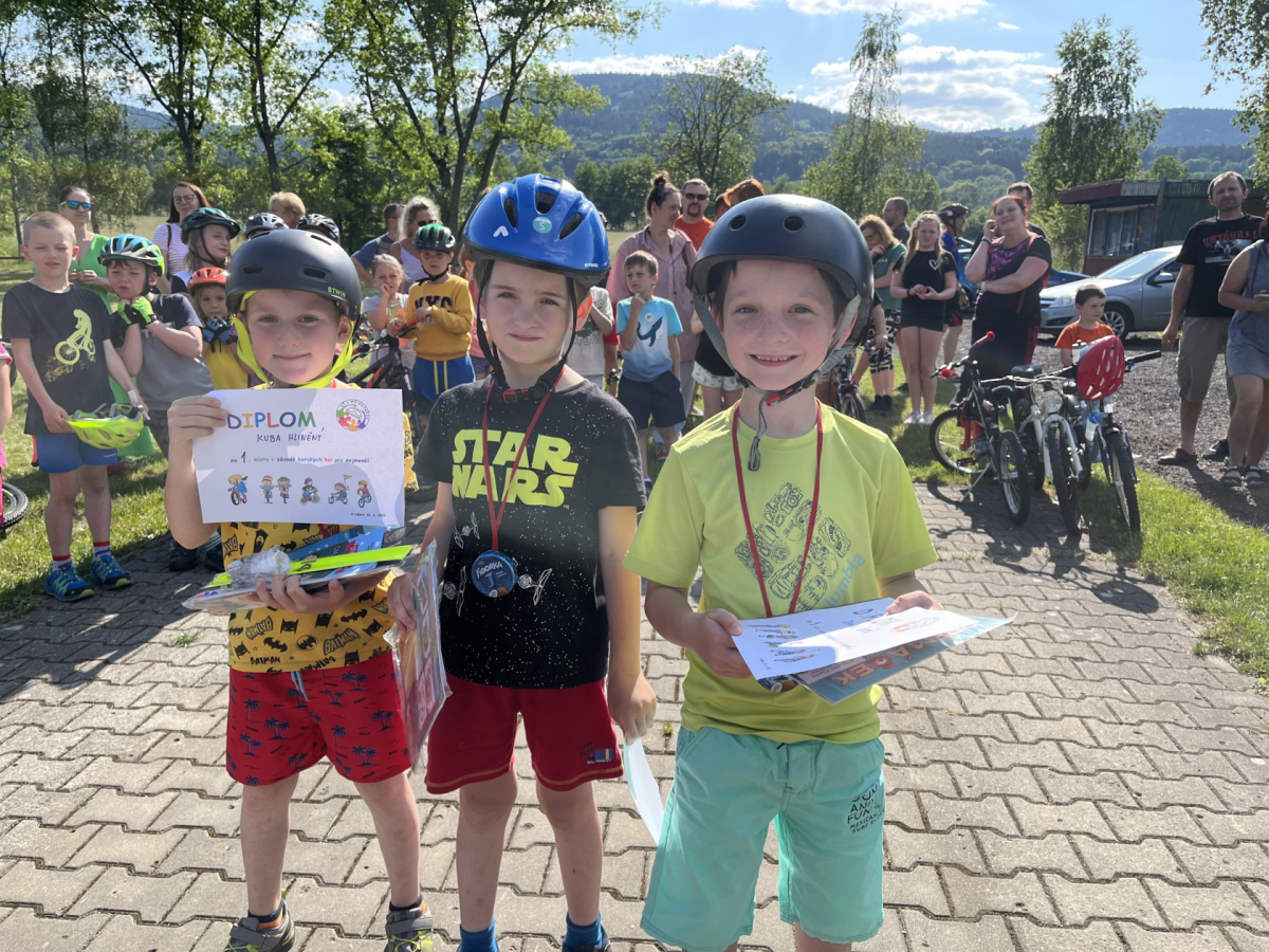 Počasí nám přálo a sešlo se nás okolo 40 soutěžících. Soutěžilo se v 5 disciplínách – slalom, jízda zručnosti, jízda terénem, stíhací jízda a sprint. Poslední jmenovaná soutěž byla vyhodnocována ve dvou věkových kategoriích MŠ a 1. třída a druhá kategorie pro žáky 2. a 3. ročníku. Výsledky byly velice těsné a vyhodnocení bylo napínavé i pro nás organizátory.