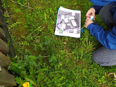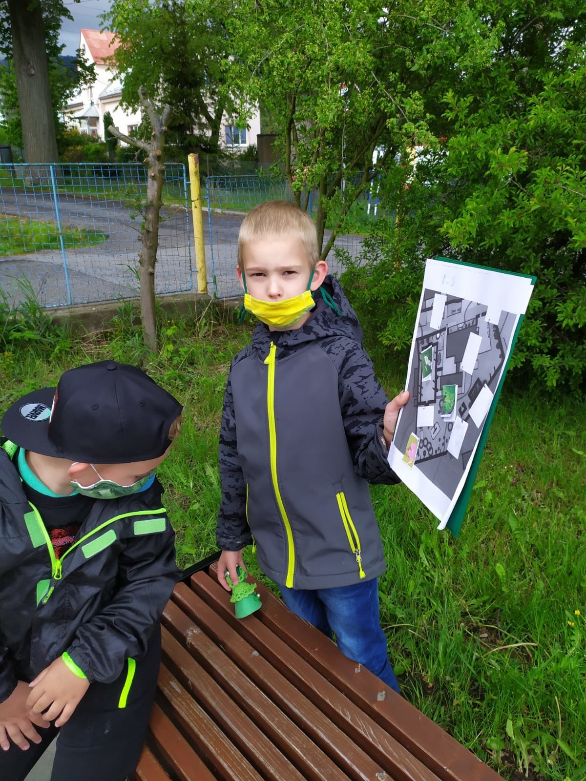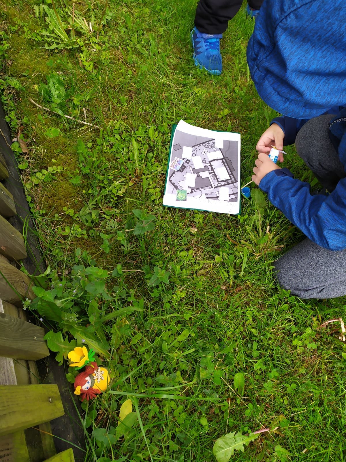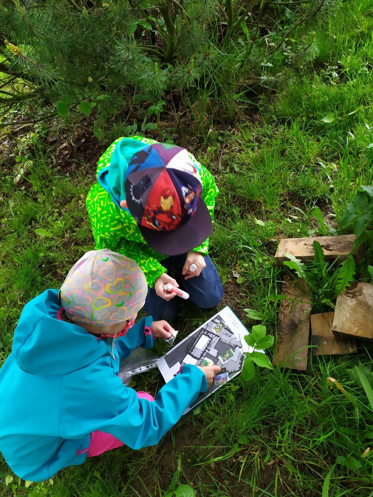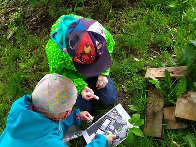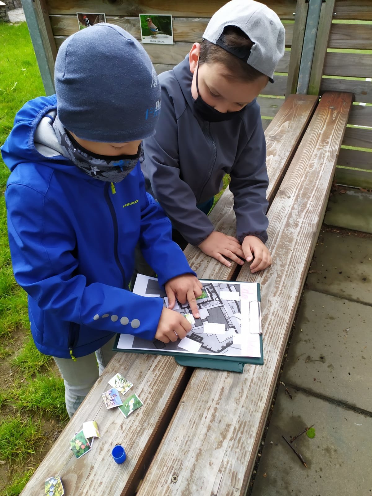 Po zahradě se nám poschovaly kytičkové panenky. Podle mapy jsme je hledali a pak do mapy nalepili jejich rostlinky. Pak jsme si ve dvojicích schovali vzájemně obrázky mláďat a zaznamenali do mapy. Kdo si ho našel, tomu zůstal :-).