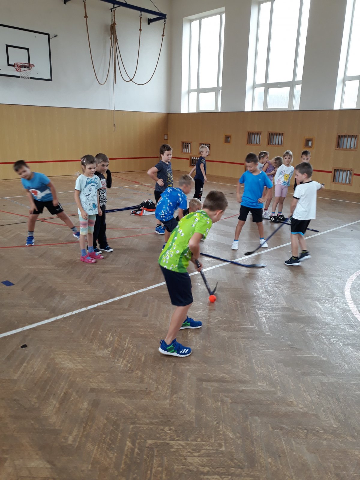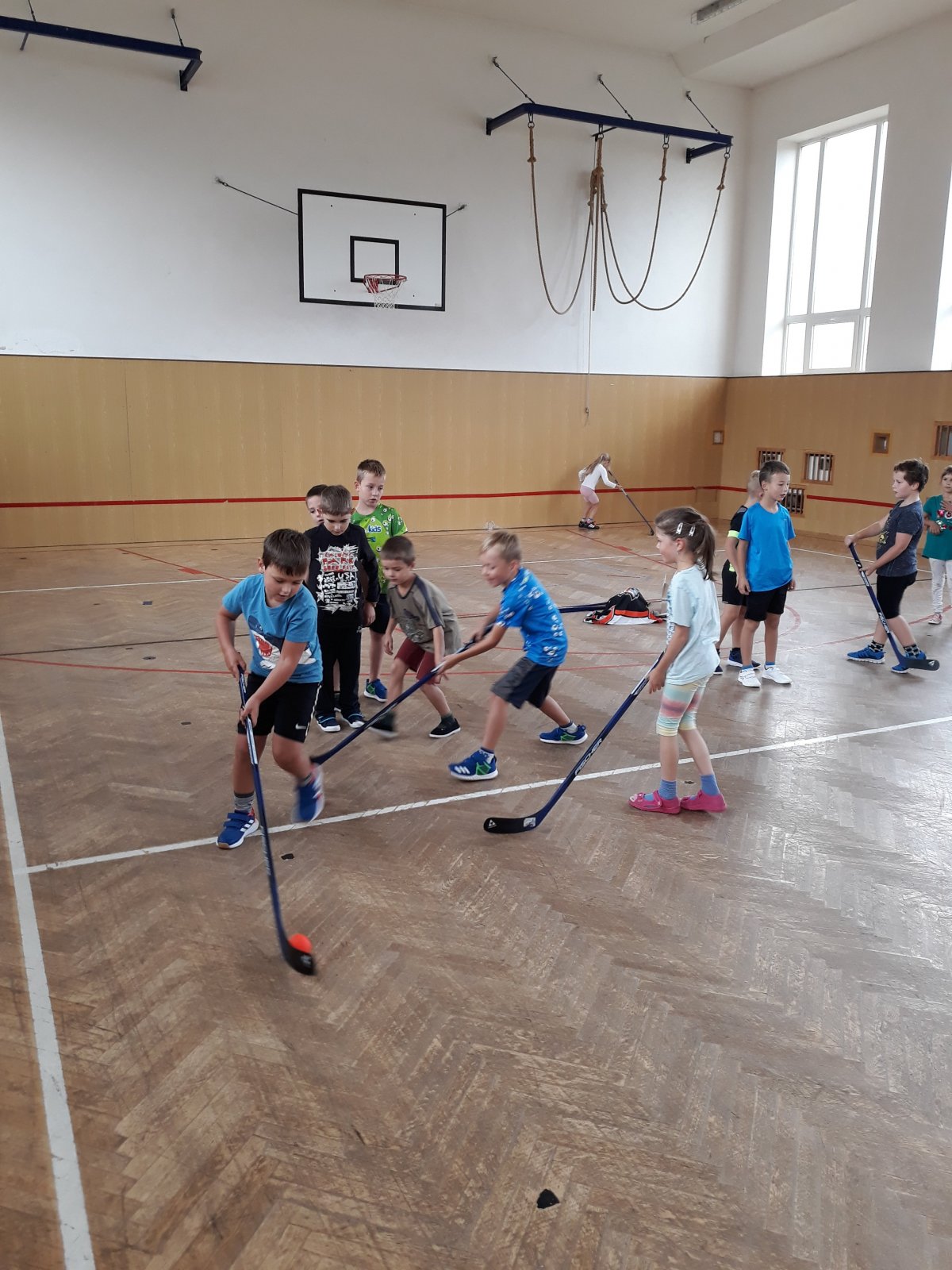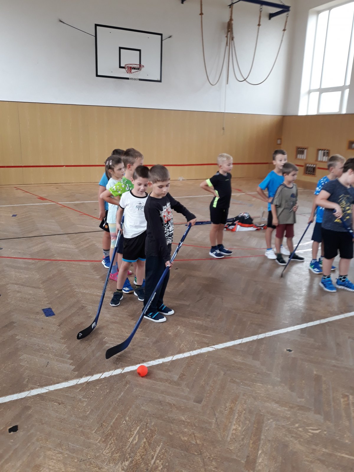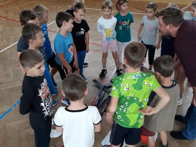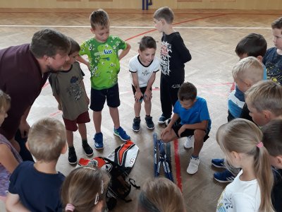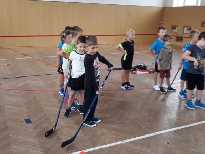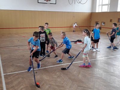 Na dnešní hodině tělesné výchovy žákům byl představen kroužek Hokejbal, který probíhá ve středu na naší škole.