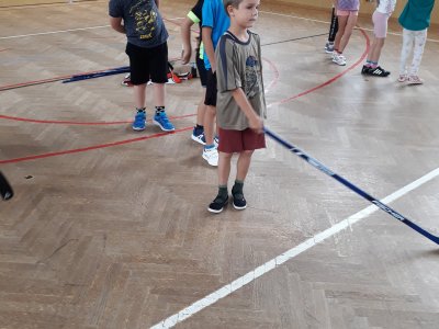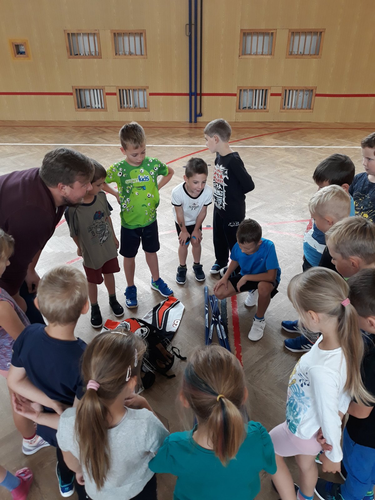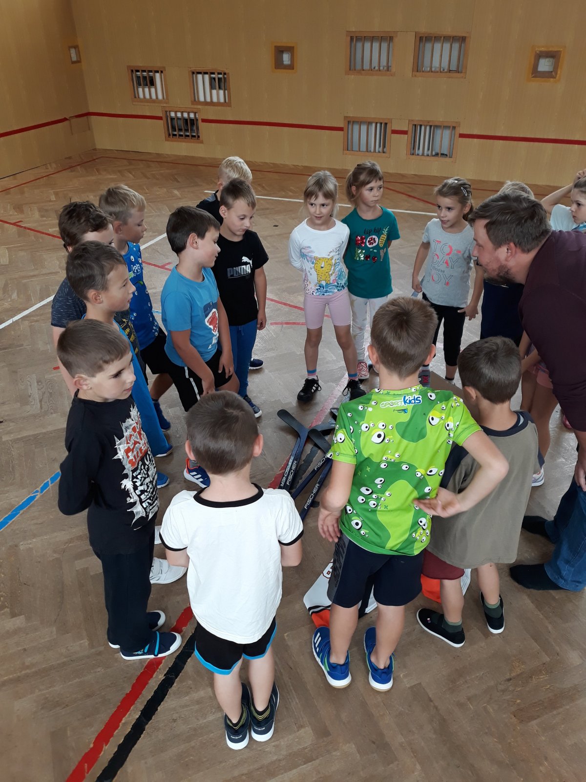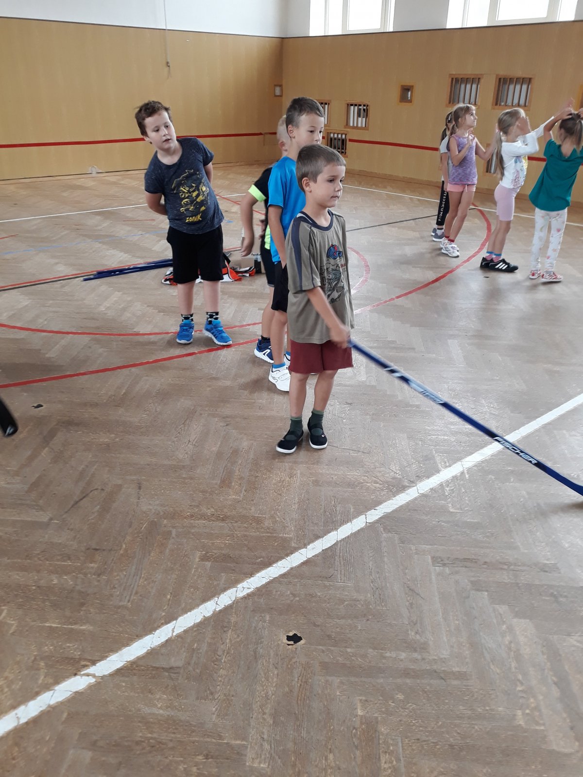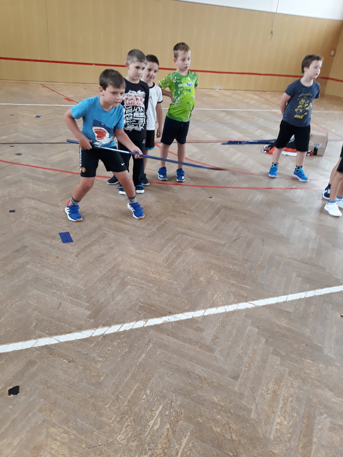 Na dnešní hodině tělesné výchovy žákům byl představen kroužek Hokejbal, který probíhá ve středu na naší škole.