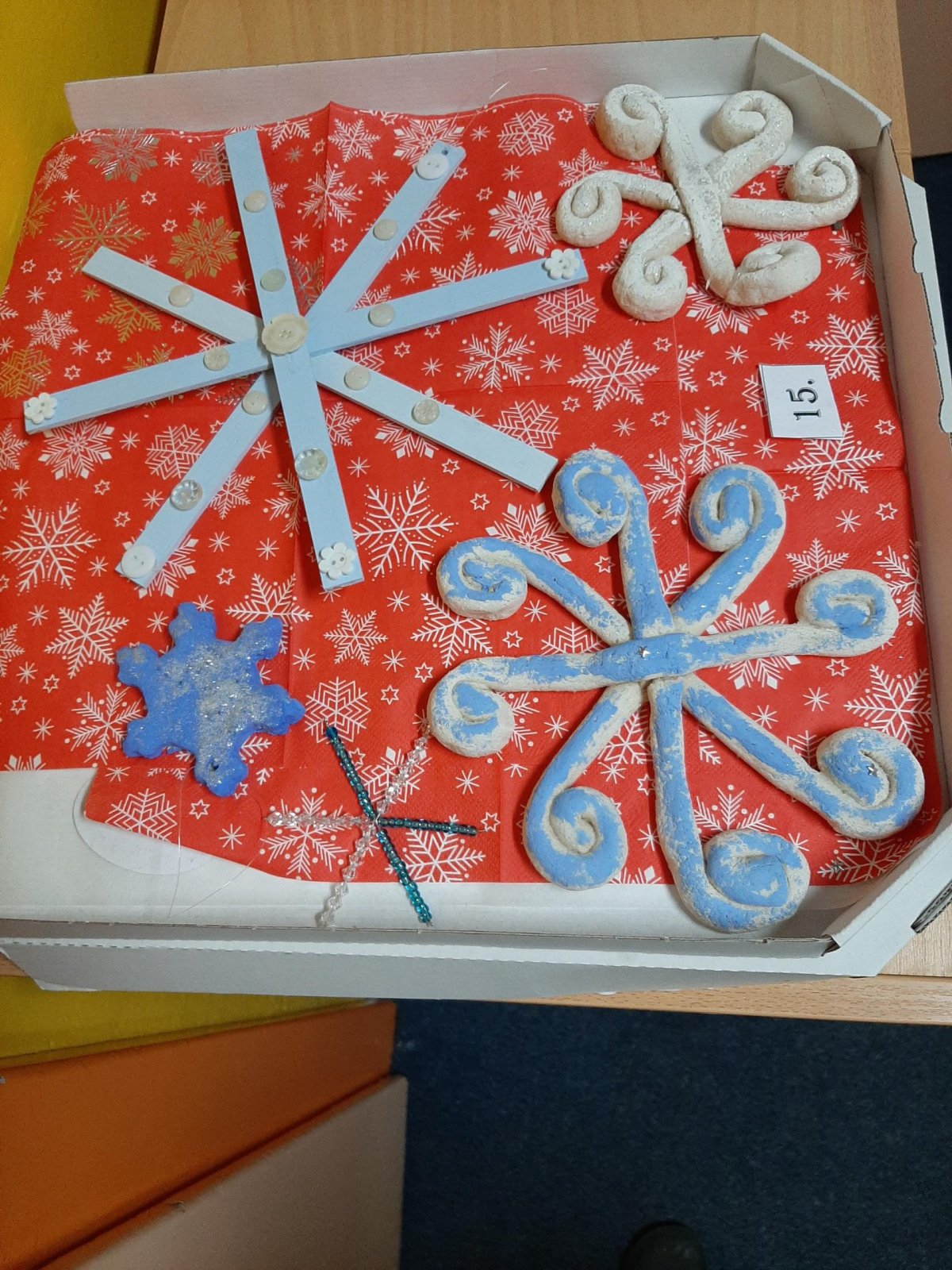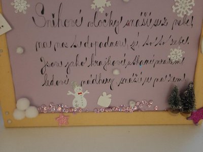 Tématem zimní rodinné výtvarné soutěže byla sněhová vločka. Do soutěže se zapojilo celkem 24 jednotlivců a rodinných týmů. Křehkou krásu vloček zpracovali všichni výtvarníci po svém, a tak se nám sešly vločky papírové, perníkové, plastové, šité i modelované z těsta. Nejvíce zaujala a při hlasování získala nejvíce hlasů vločka vyřezávaná z papíru (č. 13), na druhém místě se umístila vločka vytvořená pomocí tavné pistole (č. 16) a krásné třetí místo obsadila papírová svítící vločka (č. 23). A aby i cena byla stylová, všichni tvořílci si pochutnali na nanucích. Všem děkujeme a těšíme se na další nápady.