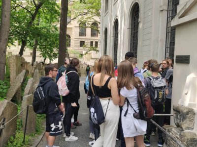 Dne 10. května jsme navštívili Židovké muzeum v Praze. Program se týkal holocaustu. Na příběhu dívky Hany a dalších mladých lidí, žijících v Protektorátu, jsme se seznámili s jejich osudy. Po úvodním programu jsme navštívili Staronovou synagogu, Pinkasovu synagogu a Starý židovský hřbitov.