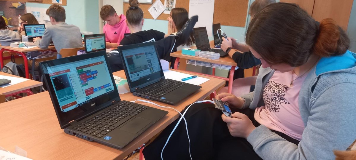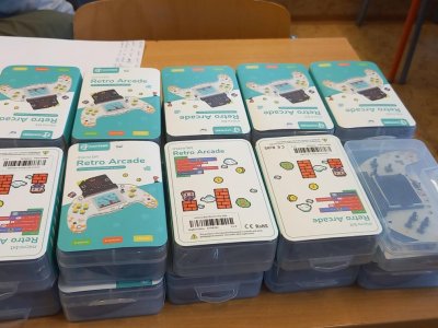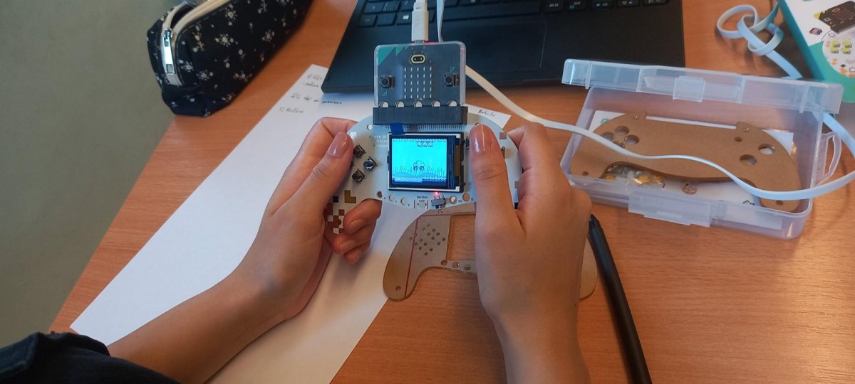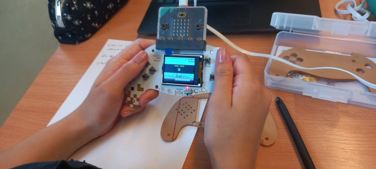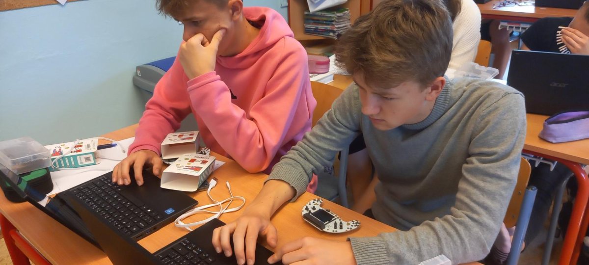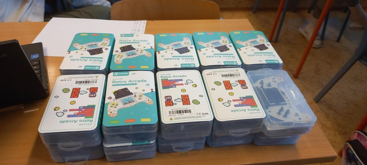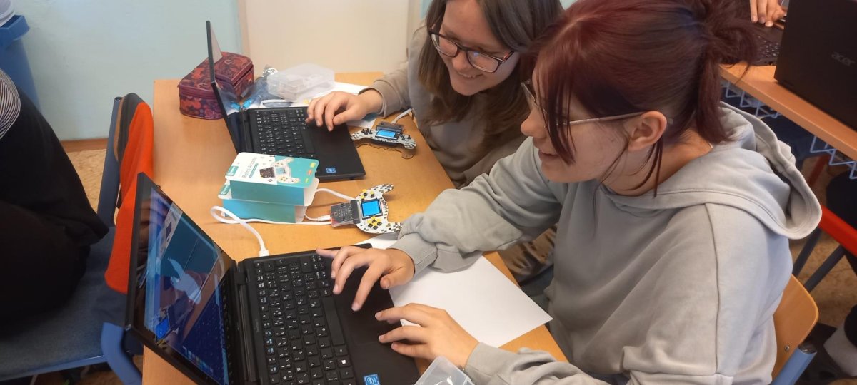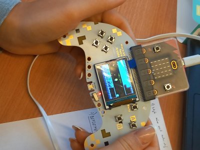 V rámci dnešní projektové dvouhodinovky si žáci devátého ročníku vyzkoušeli, jaké to bylo být herním vývojářem v 90. letech. Náš "klub začínajících programátorů a vývojářů" se pustil do výzvy, při které se pokusili vytvořit vlastní verze oblíbených arkádových her, jako jsou Space Invaders, PacMan a Mario, pomocí technologie Micro:bit a herního padu. Bonusovkou pak bylo sestavení domku, který je ovládán řídící jednotkou a vymyslet např. autonomní zavlažvací systém.