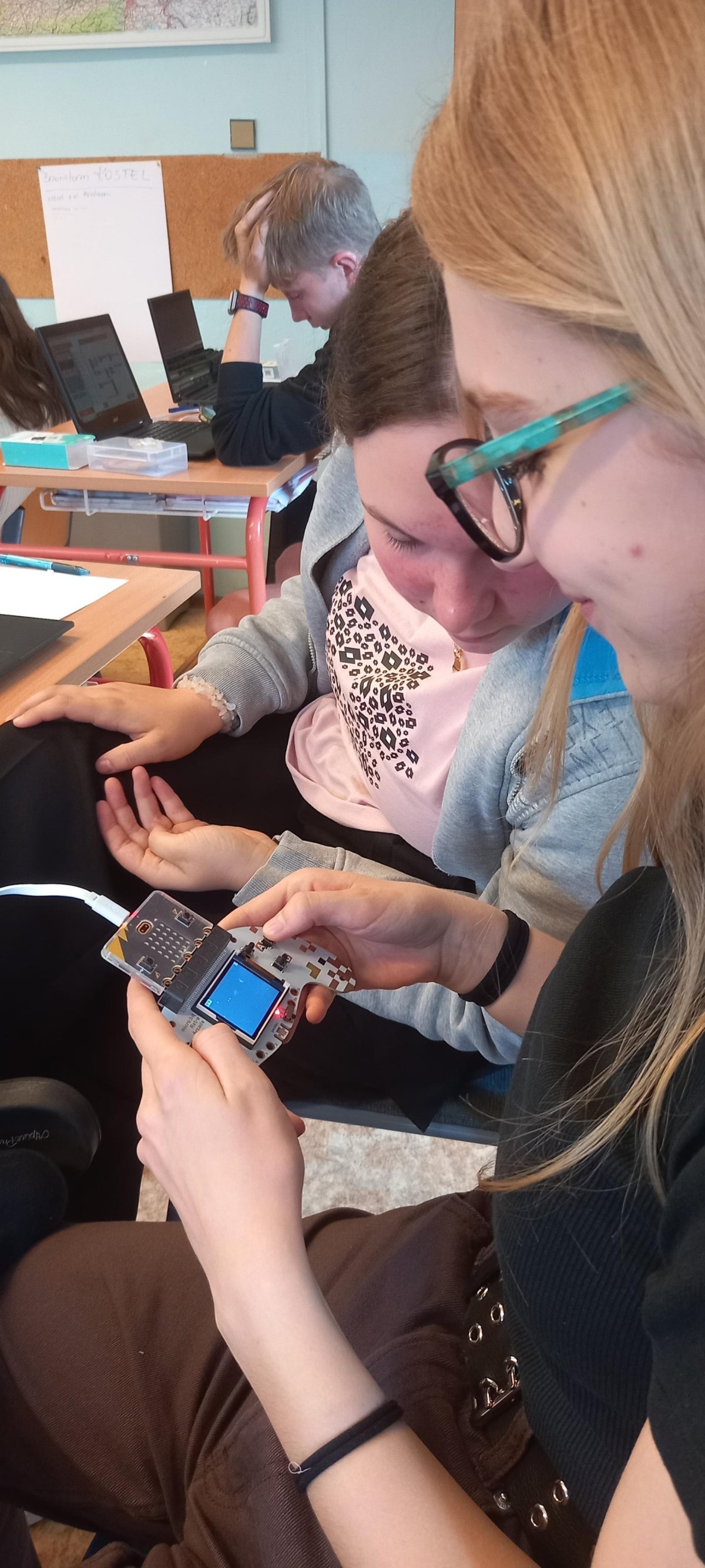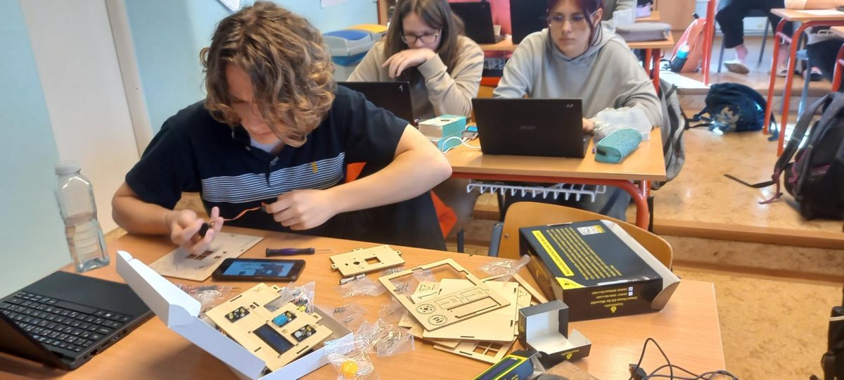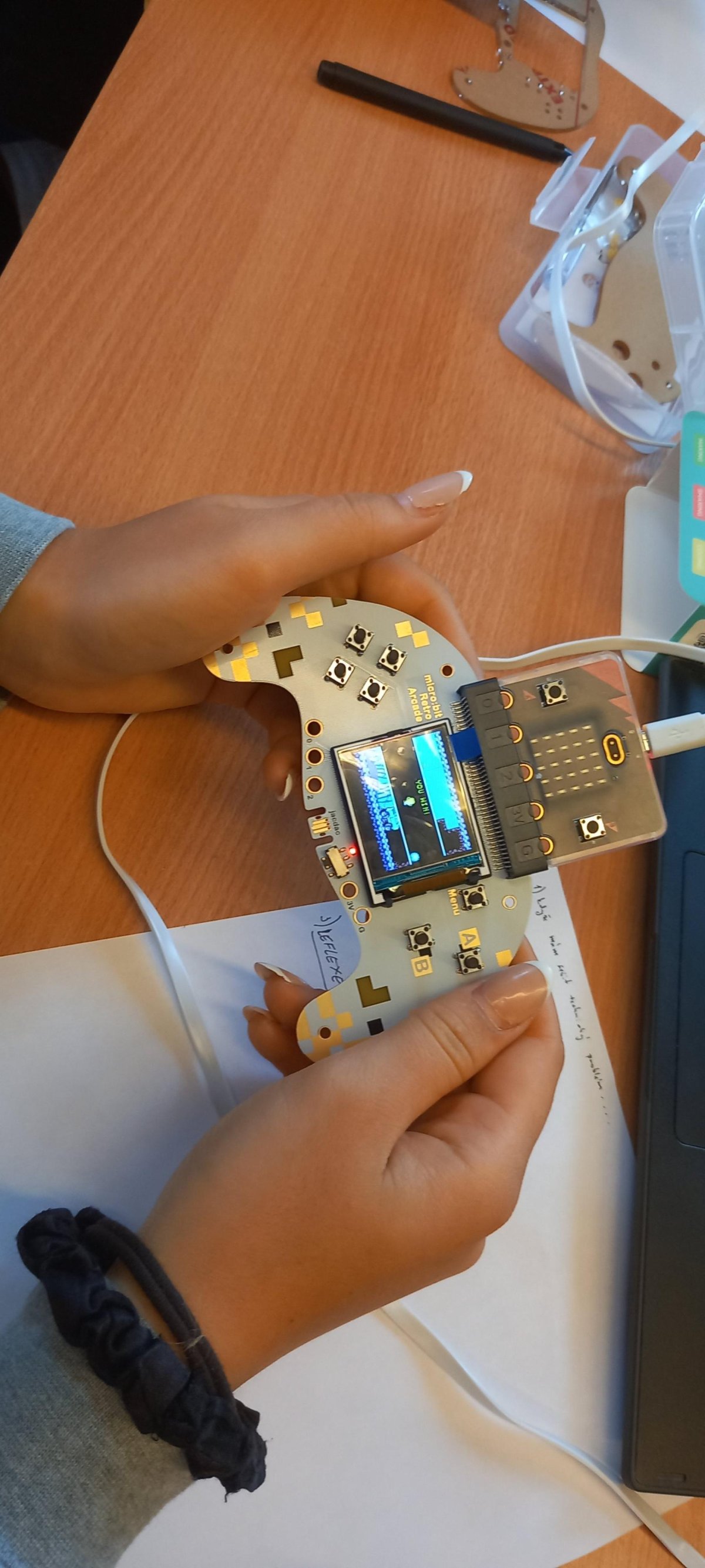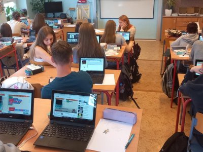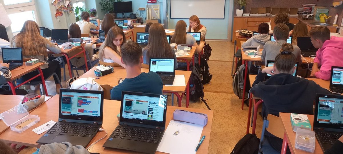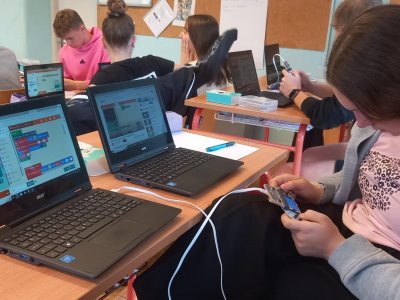 V rámci dnešní projektové dvouhodinovky si žáci devátého ročníku vyzkoušeli, jaké to bylo být herním vývojářem v 90. letech. Náš "klub začínajících programátorů a vývojářů" se pustil do výzvy, při které se pokusili vytvořit vlastní verze oblíbených arkádových her, jako jsou Space Invaders, PacMan a Mario, pomocí technologie Micro:bit a herního padu. Bonusovkou pak bylo sestavení domku, který je ovládán řídící jednotkou a vymyslet např. autonomní zavlažvací systém.