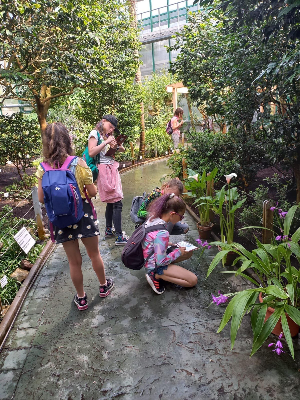 V pátek páťáci navštívili botanickou zahradu. Už dopředu věděli, že se mohou těšit na stromového škrtiče, kvetoucí durman nebo největší či nejmenší leknín. Botanickou zahradu jsme si nejprve prošli společně. Následně žáci dostali pracovní listy a porovnávali klima jednotlivých pavilonů a půdu, ve které rostliny rostou. Také si zapisovali názvy zajímavých rostlin. Celá exkurze navazovala na téma podnebných pásu, o kterých jsme se učili na jaře. Je skvělé, že jsme v Liberci mohli během dopoledne navštívit tropy i subtropy a zblízka si prohlédnou jejich květenu.