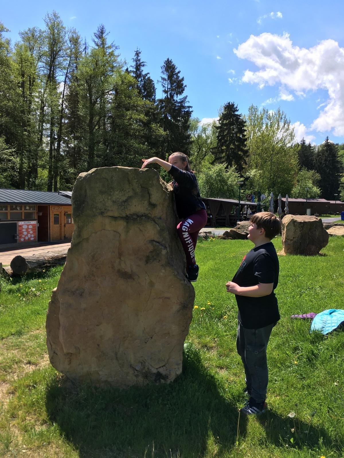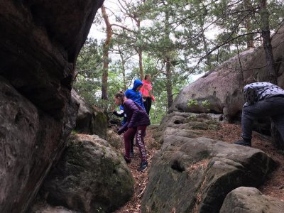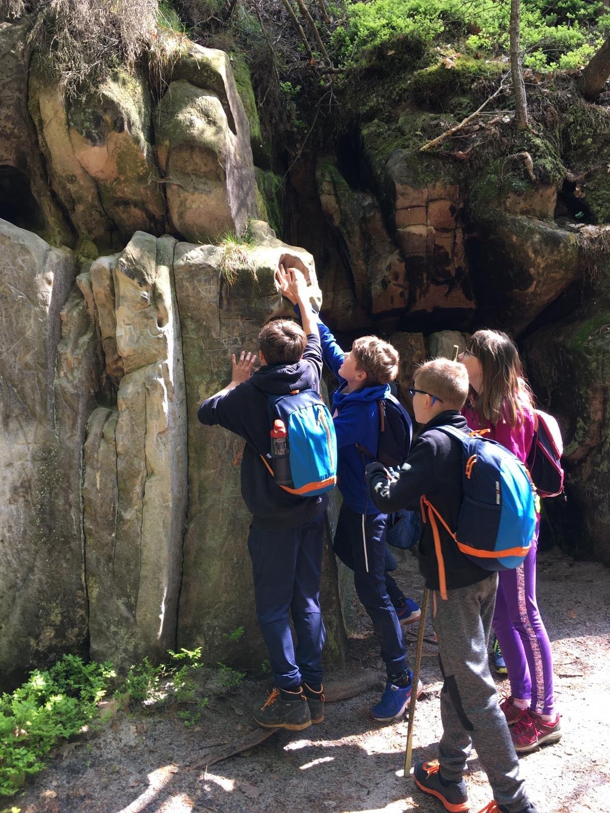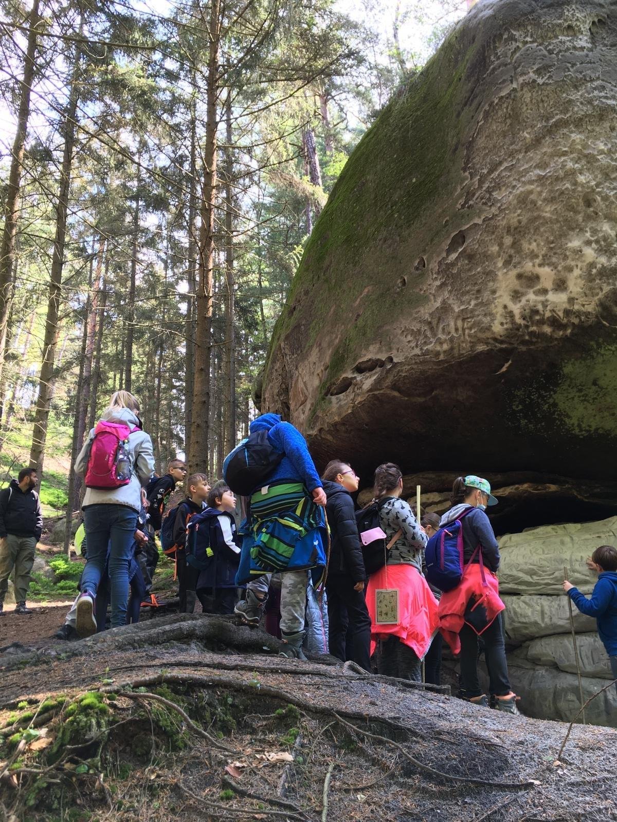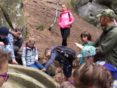 Dnešní výlet do ekocentra Sedmihorky, kde nás čekal program Výprava na dno moře - exkurze do sklaního pískovcového města. Během cesty se žáci u konkrétních jevů seznámili se vznikem pískovcového města a původním rázem krajiny. Vlastním zkoumáním objevili vlastnosti pískovce. Pomocí pozorování v terénu a doprovodných aktivit získali ucelenější představu o významu tohoto geologicky unikátního místa. Při hledání stop člověka z doby kamenné i bronzové žáci zažili putování časem - zpět do pravěku.
