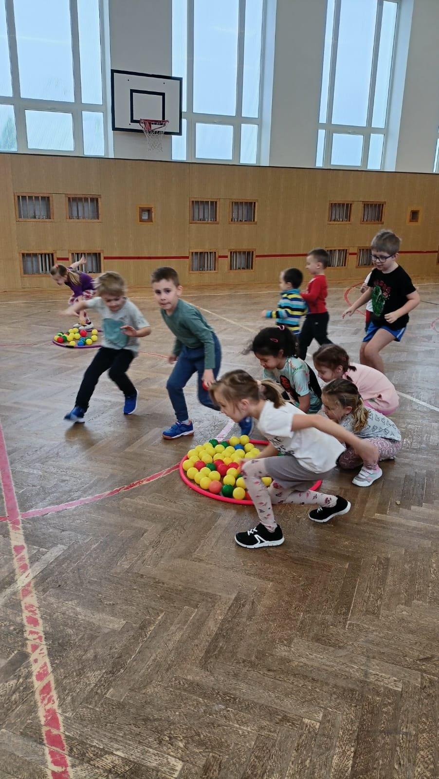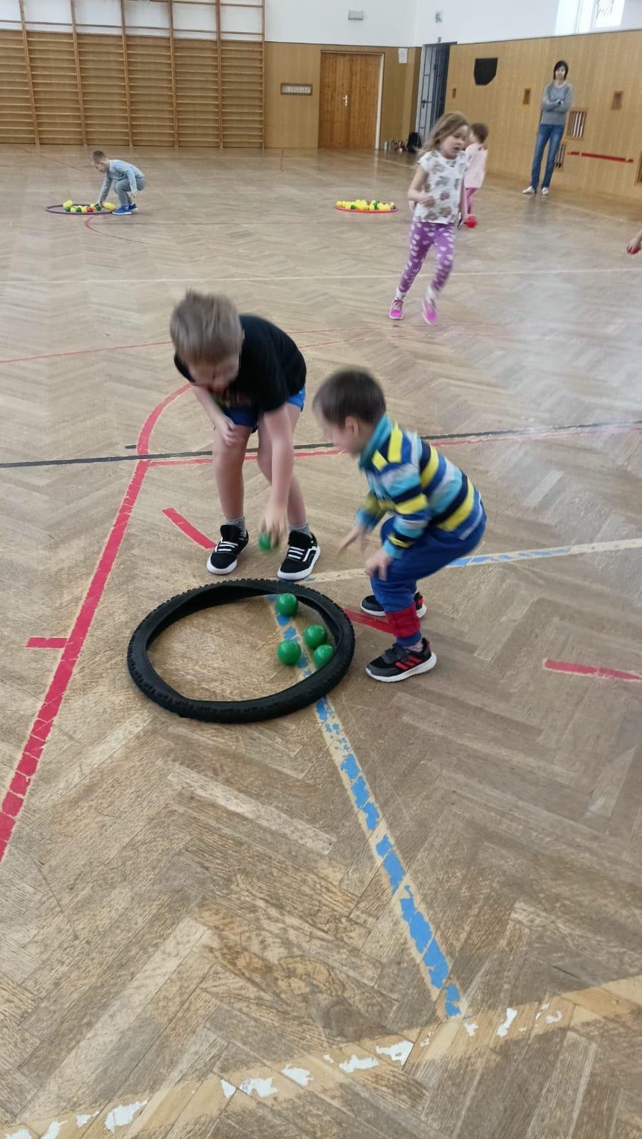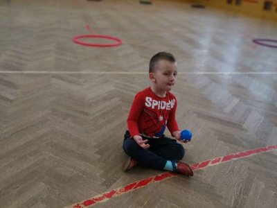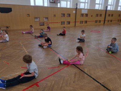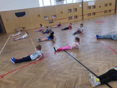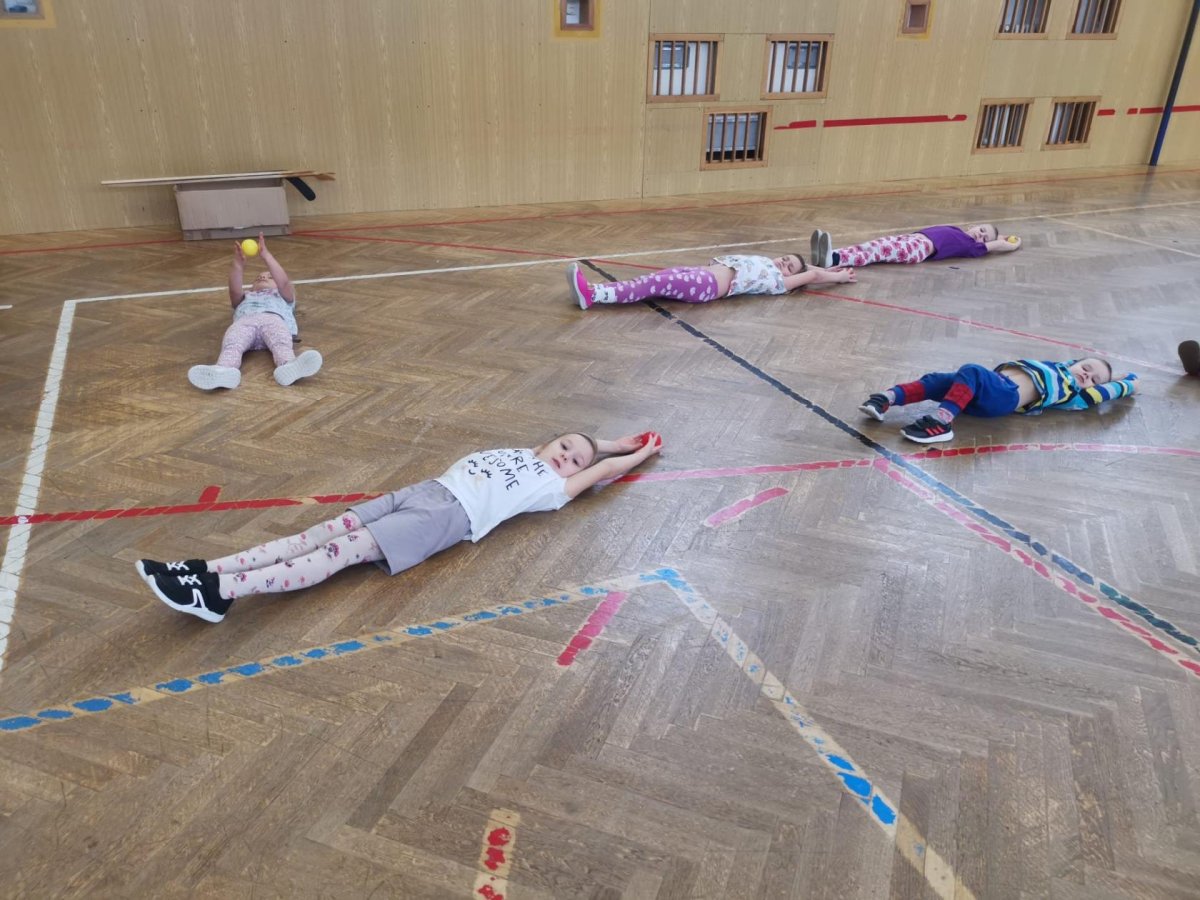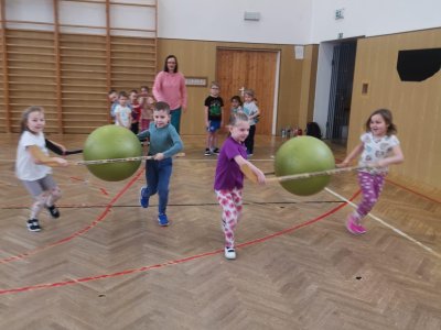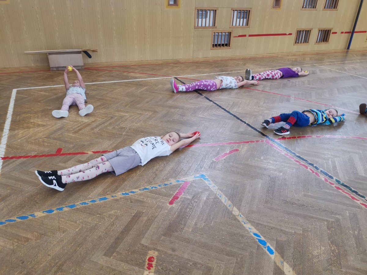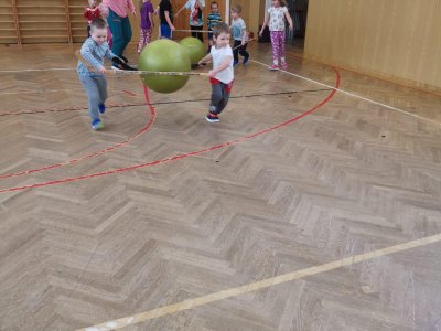 Děti si při cvičení v tělocvičně procvičily rychlost, postřeh, obratnost, třídění podle barev, zručnost, spolupráci ve skupinách a ve dvojicích.