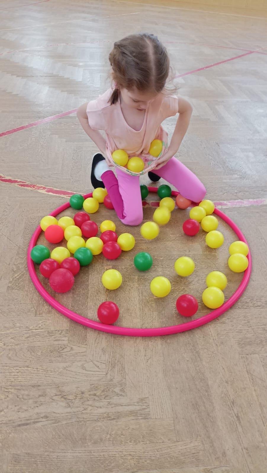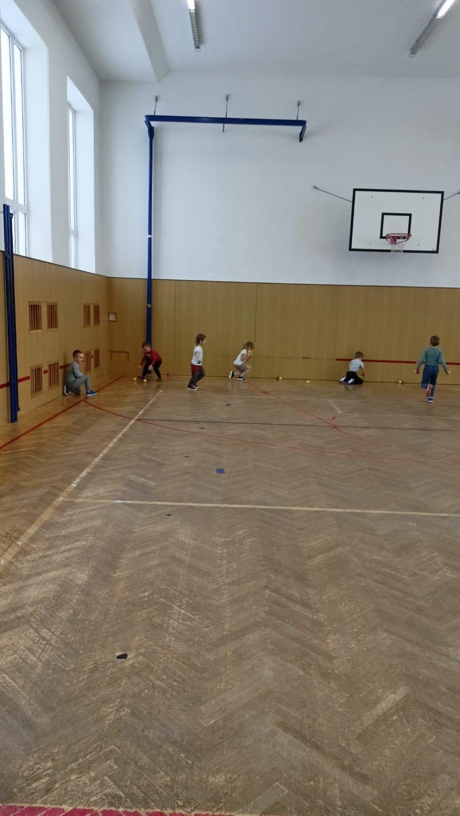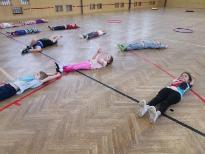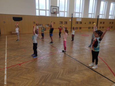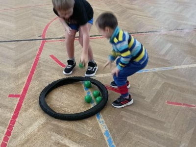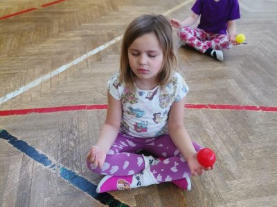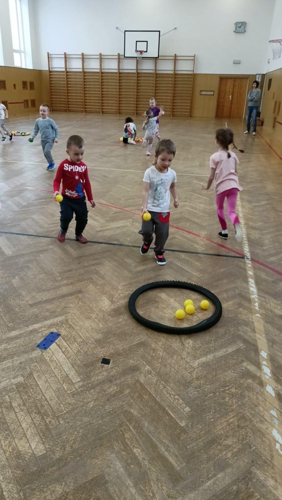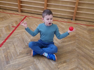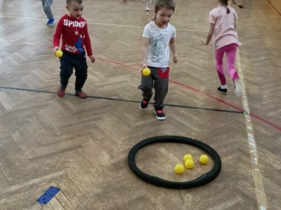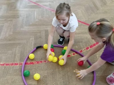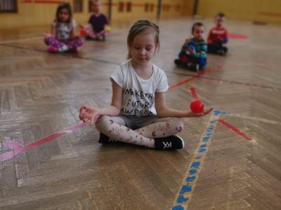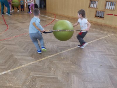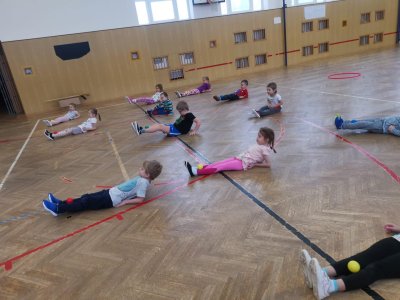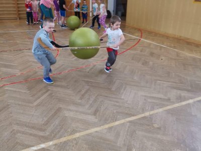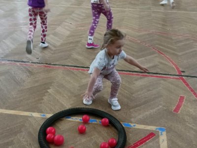 Děti si při cvičení v tělocvičně procvičily rychlost, postřeh, obratnost, třídění podle barev, zručnost, spolupráci ve skupinách a ve dvojicích.