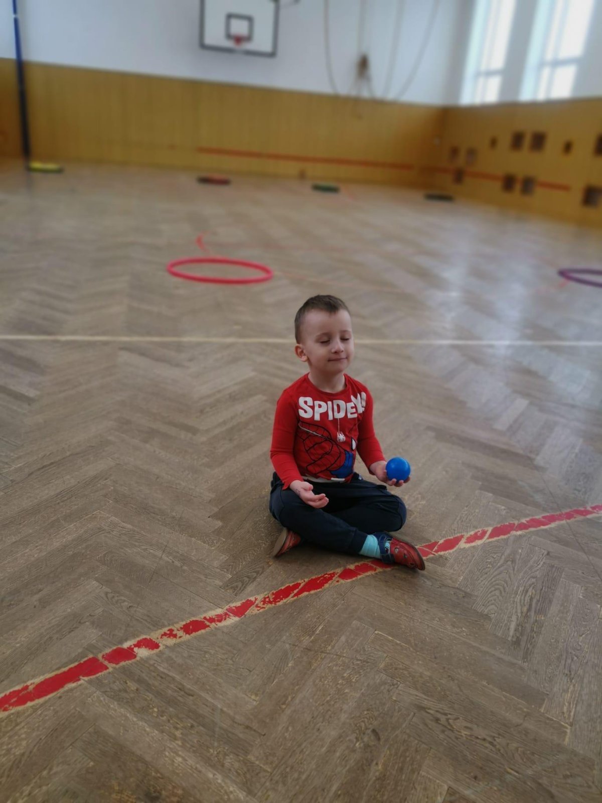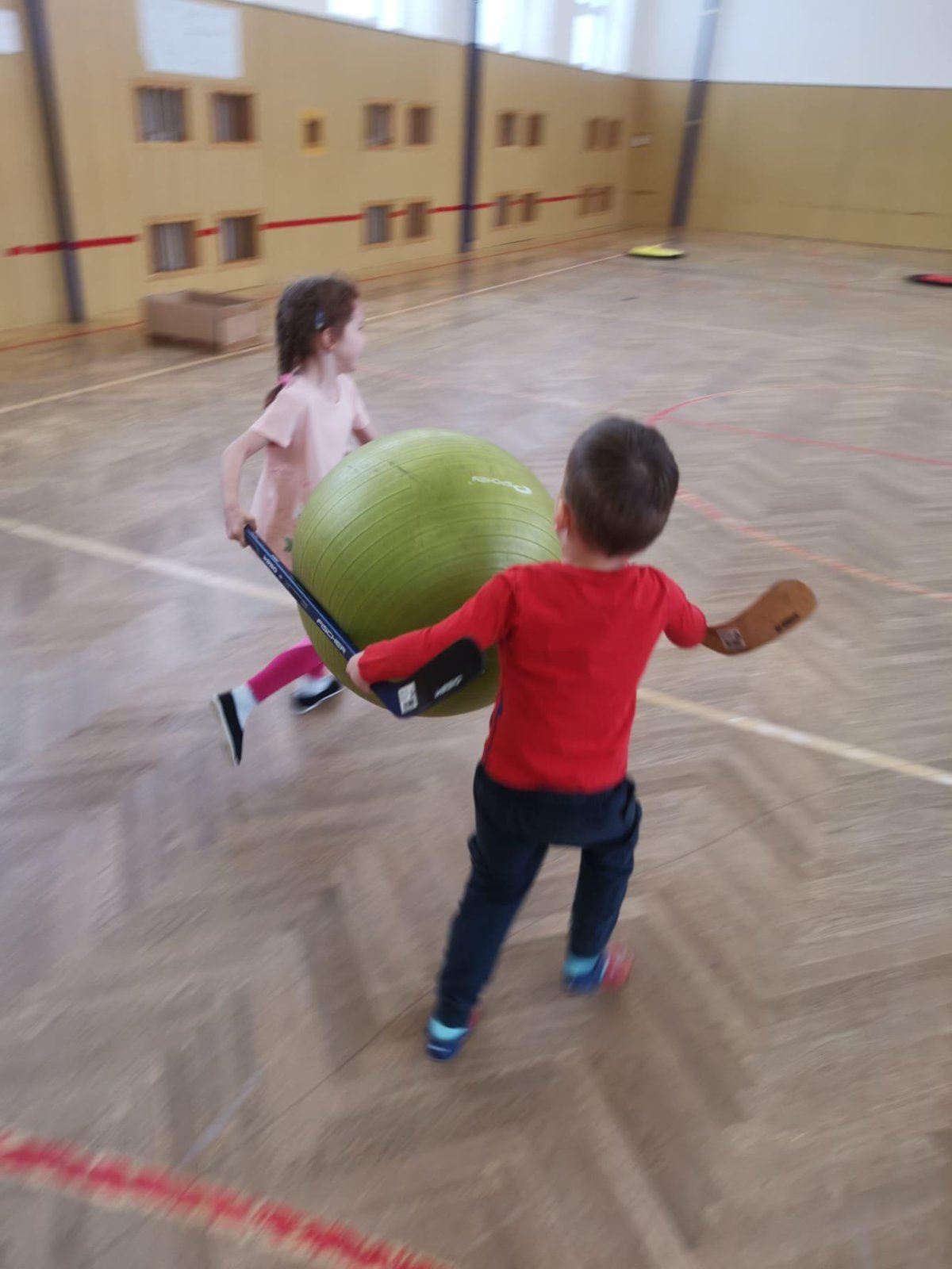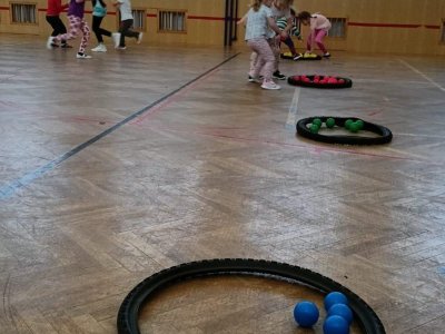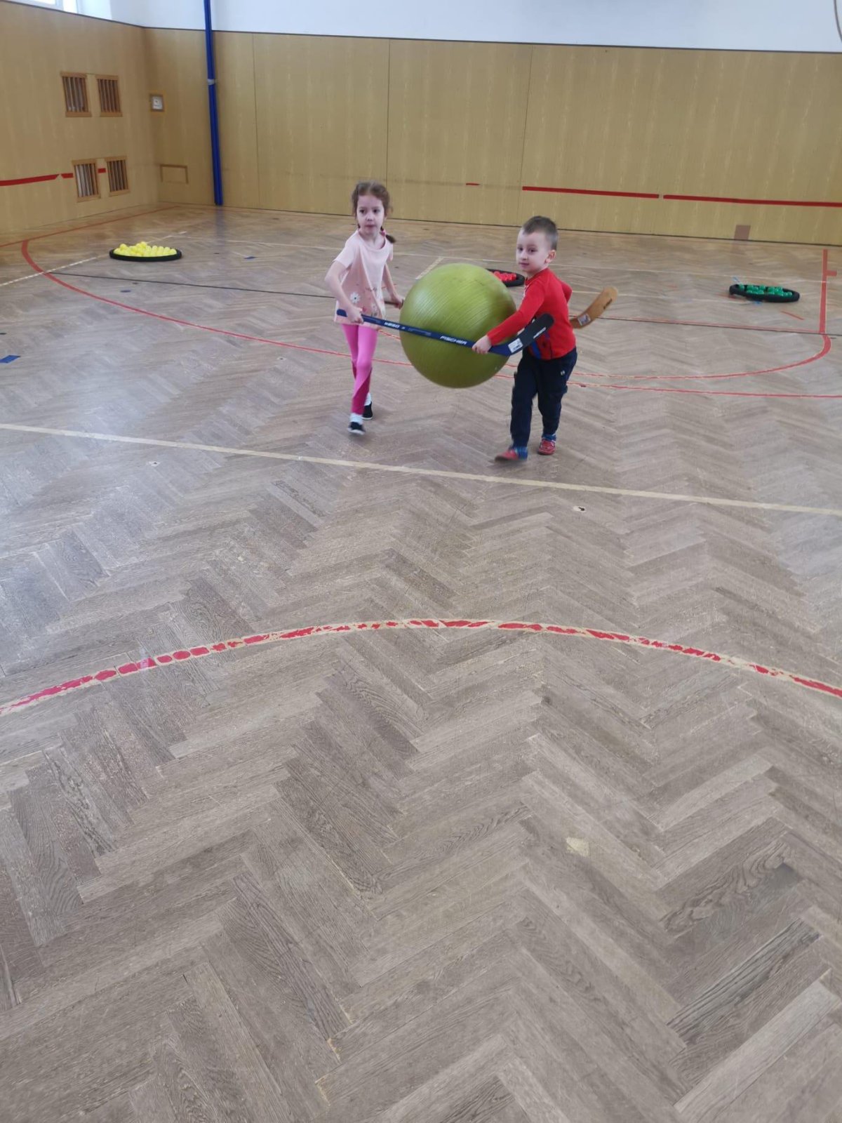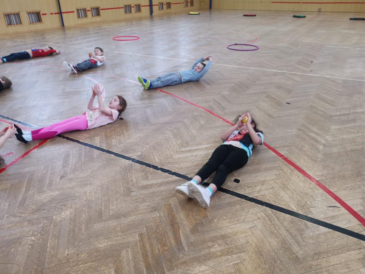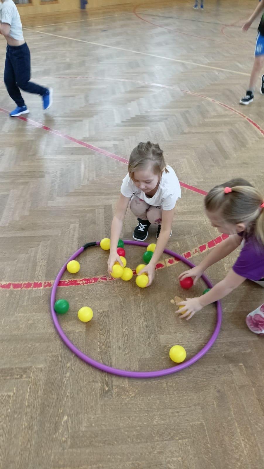 Děti si při cvičení v tělocvičně procvičily rychlost, postřeh, obratnost, třídění podle barev, zručnost, spolupráci ve skupinách a ve dvojicích.