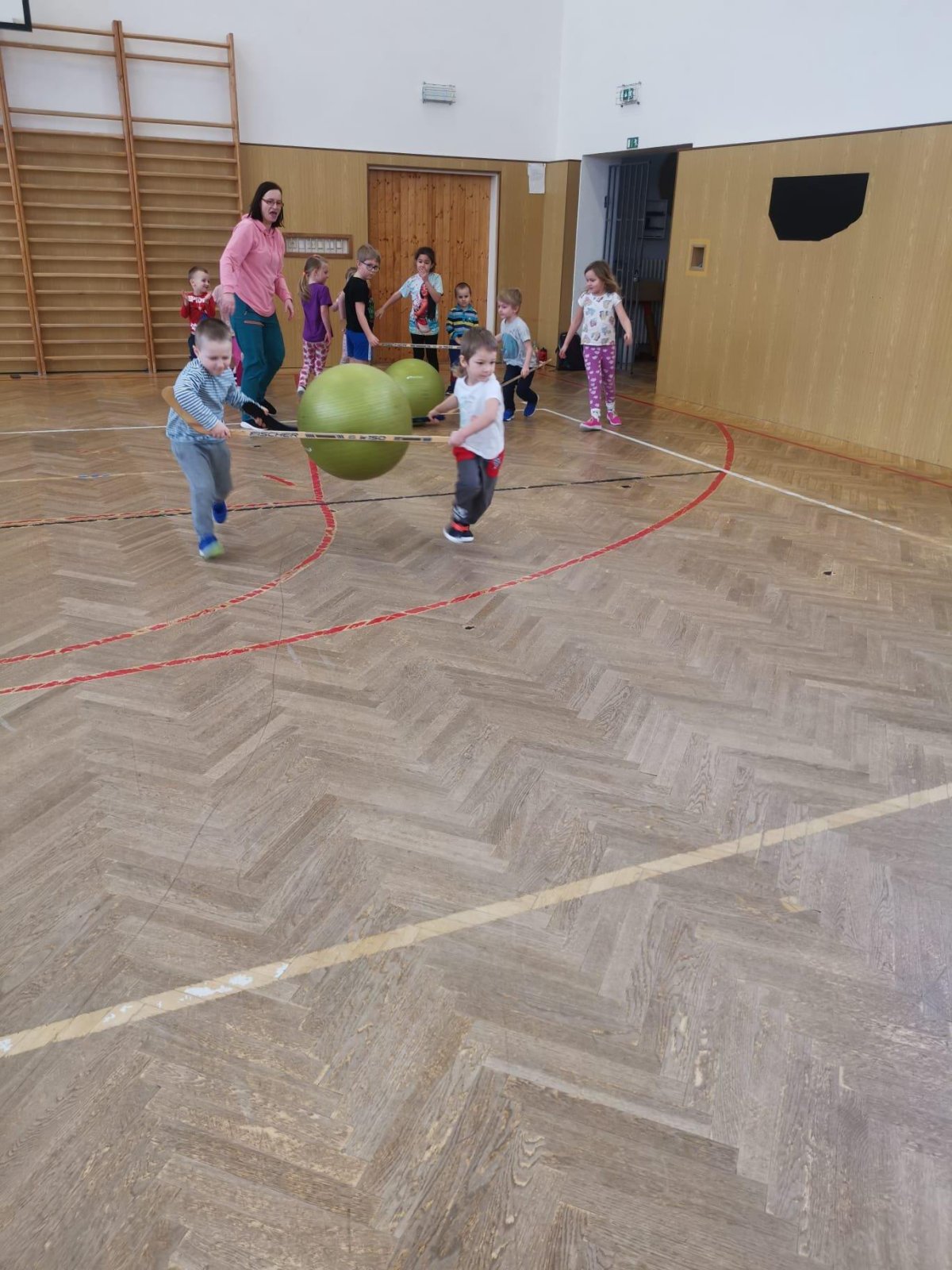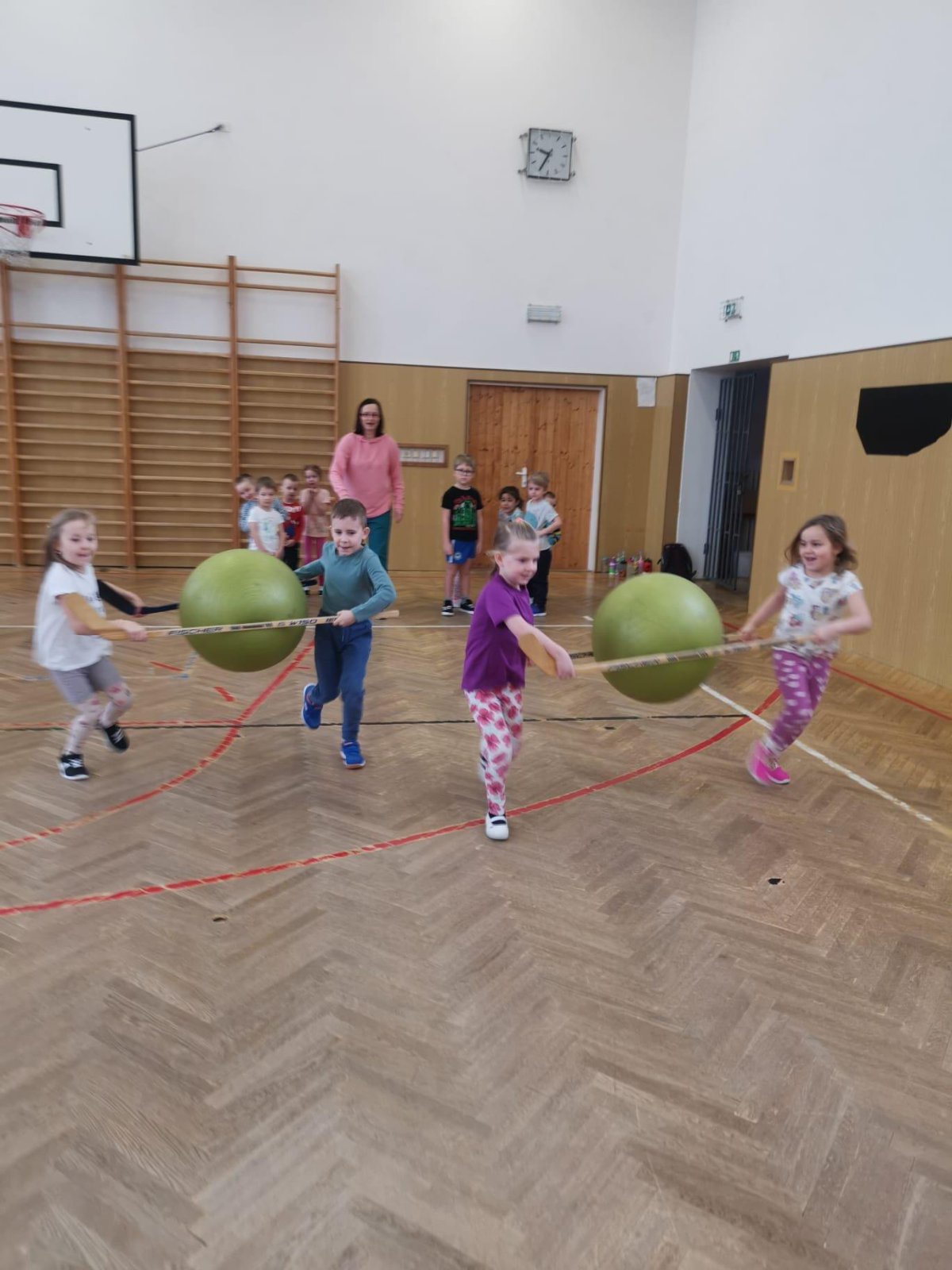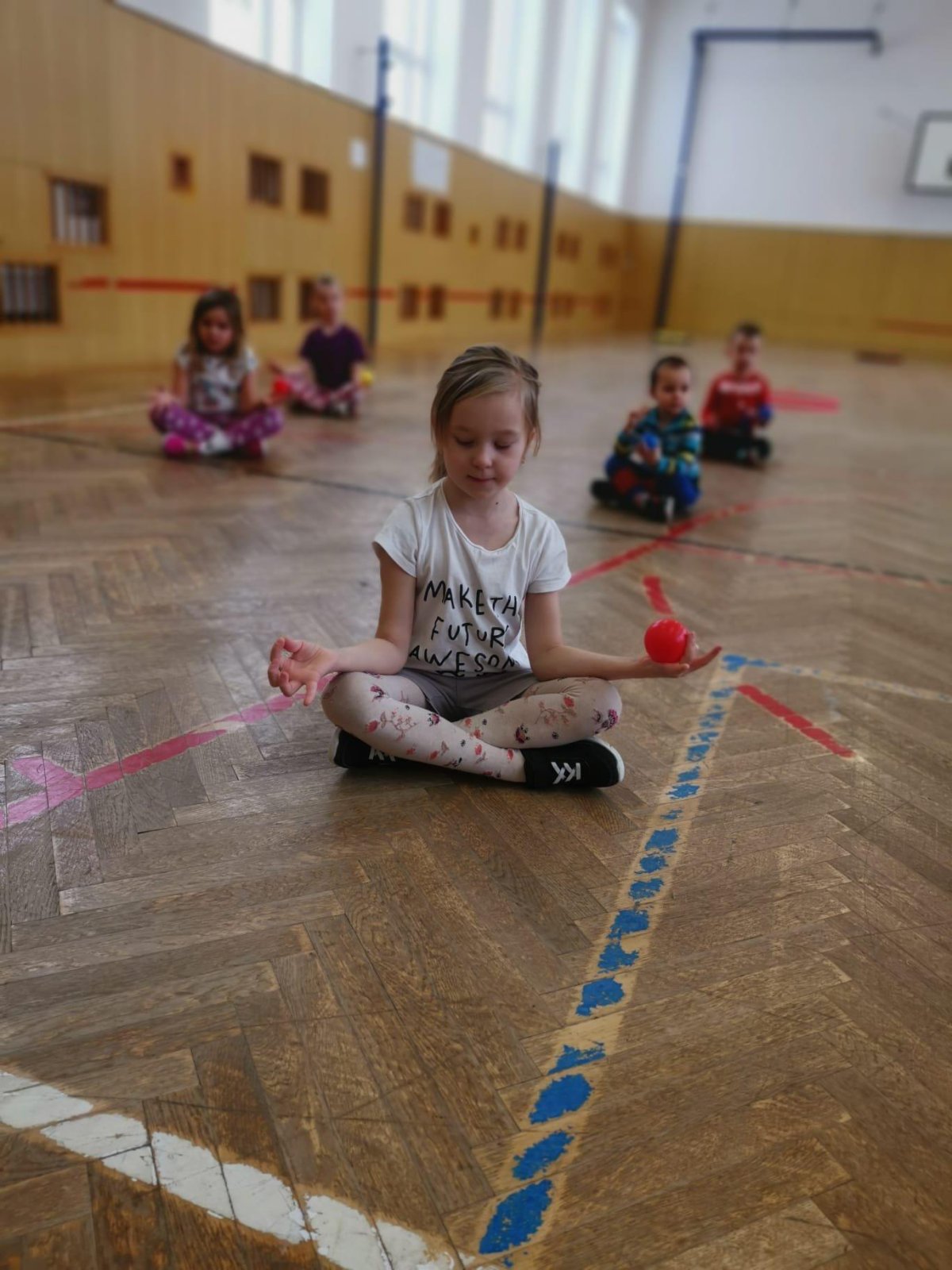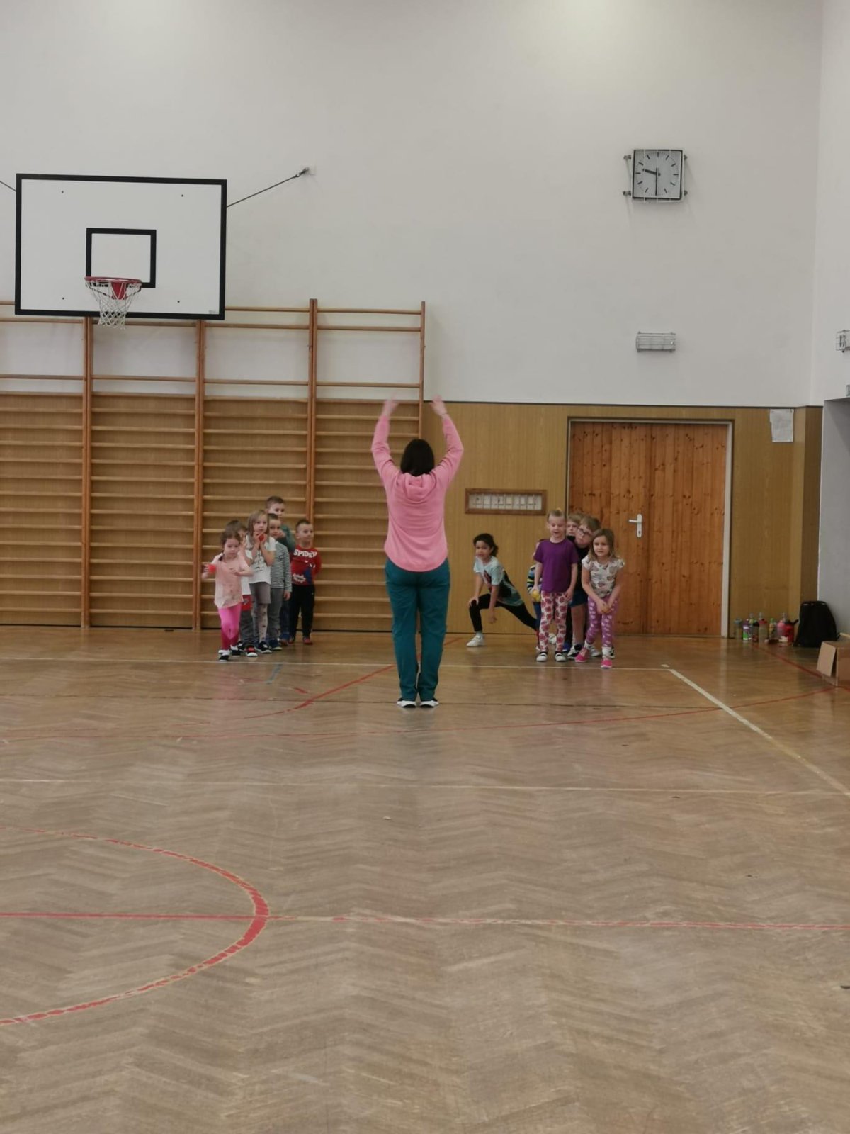 Děti si při cvičení v tělocvičně procvičily rychlost, postřeh, obratnost, třídění podle barev, zručnost, spolupráci ve skupinách a ve dvojicích.