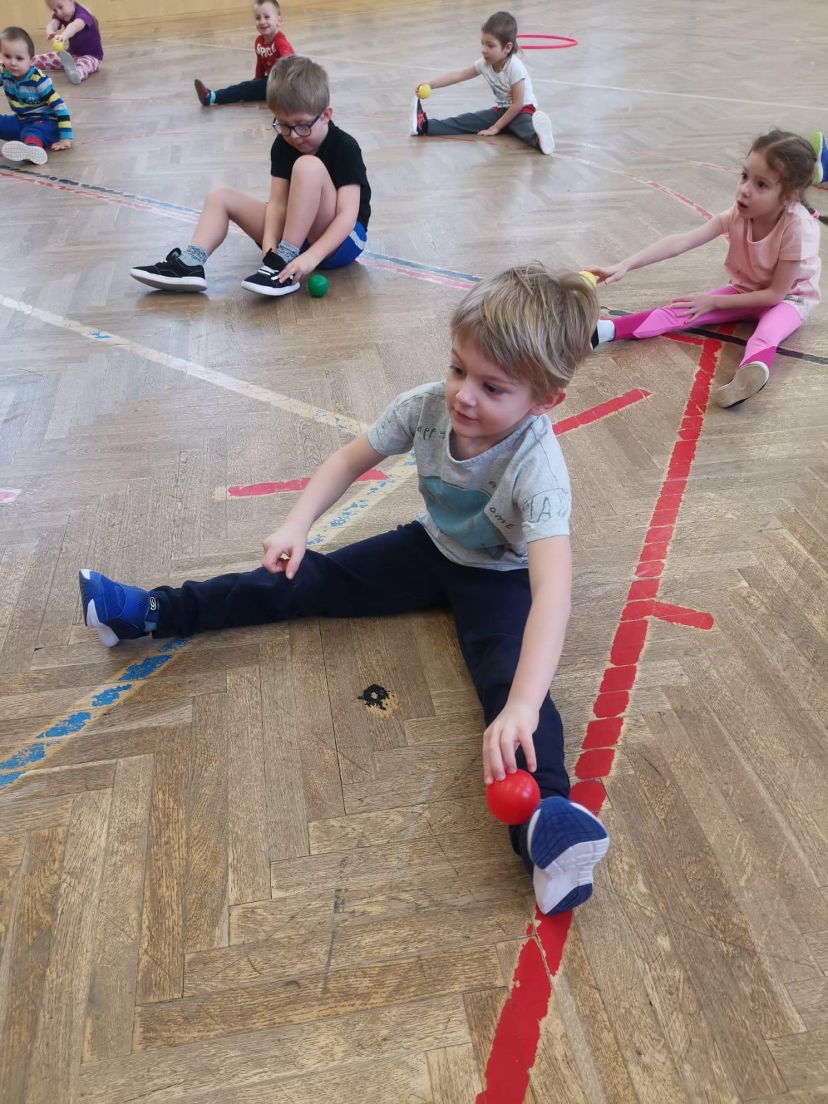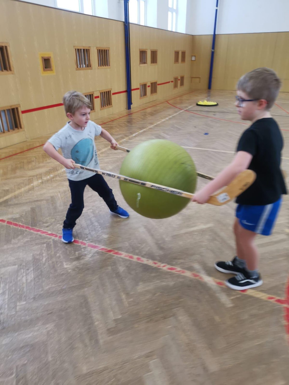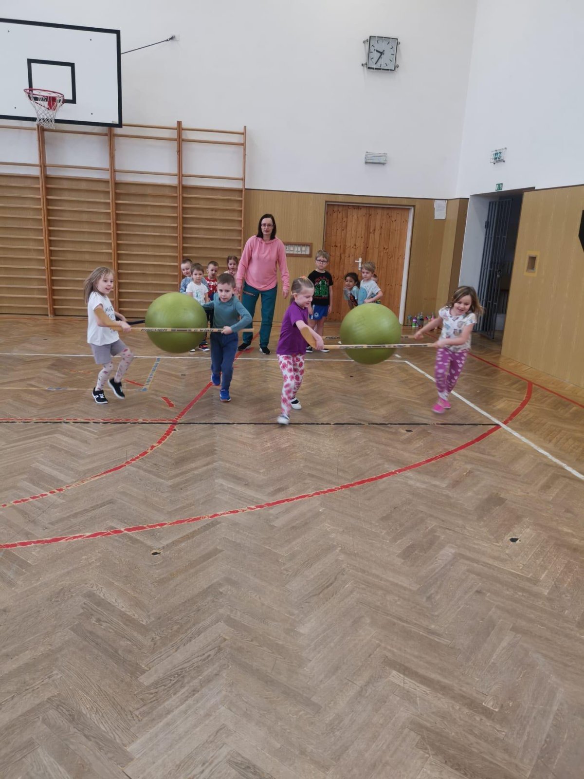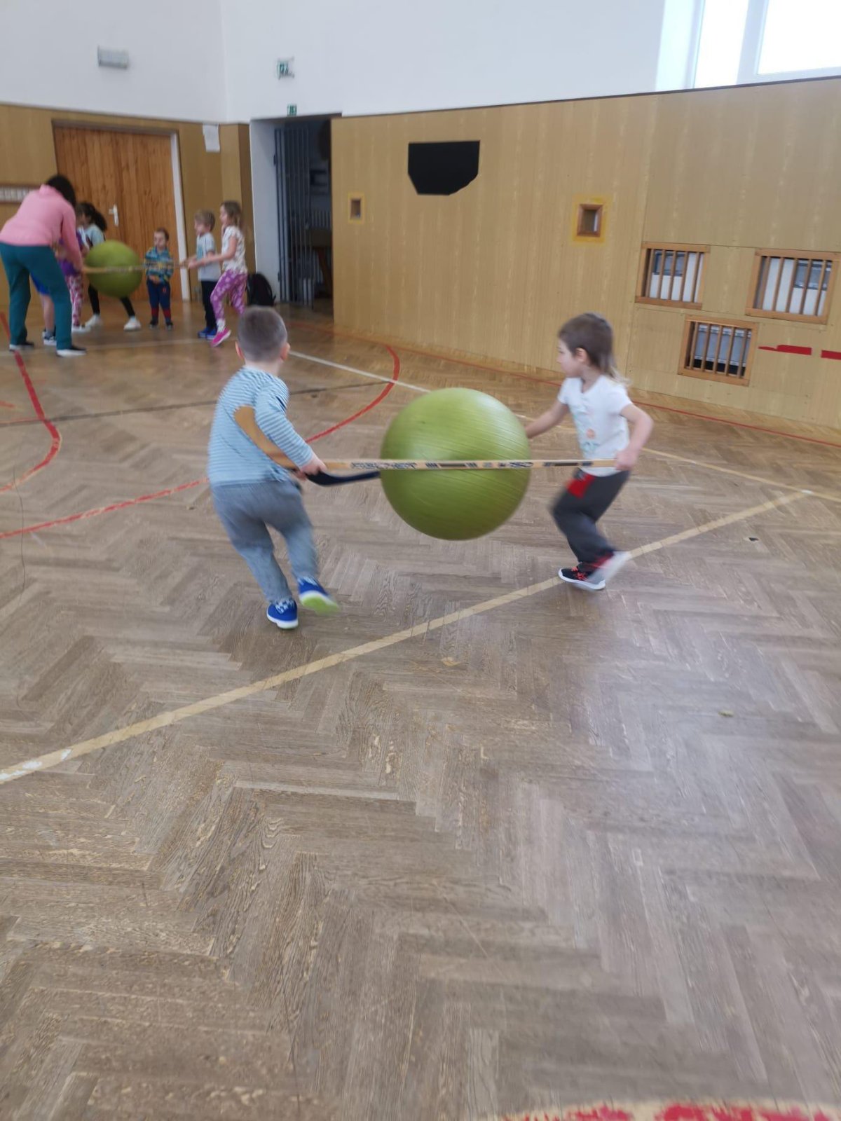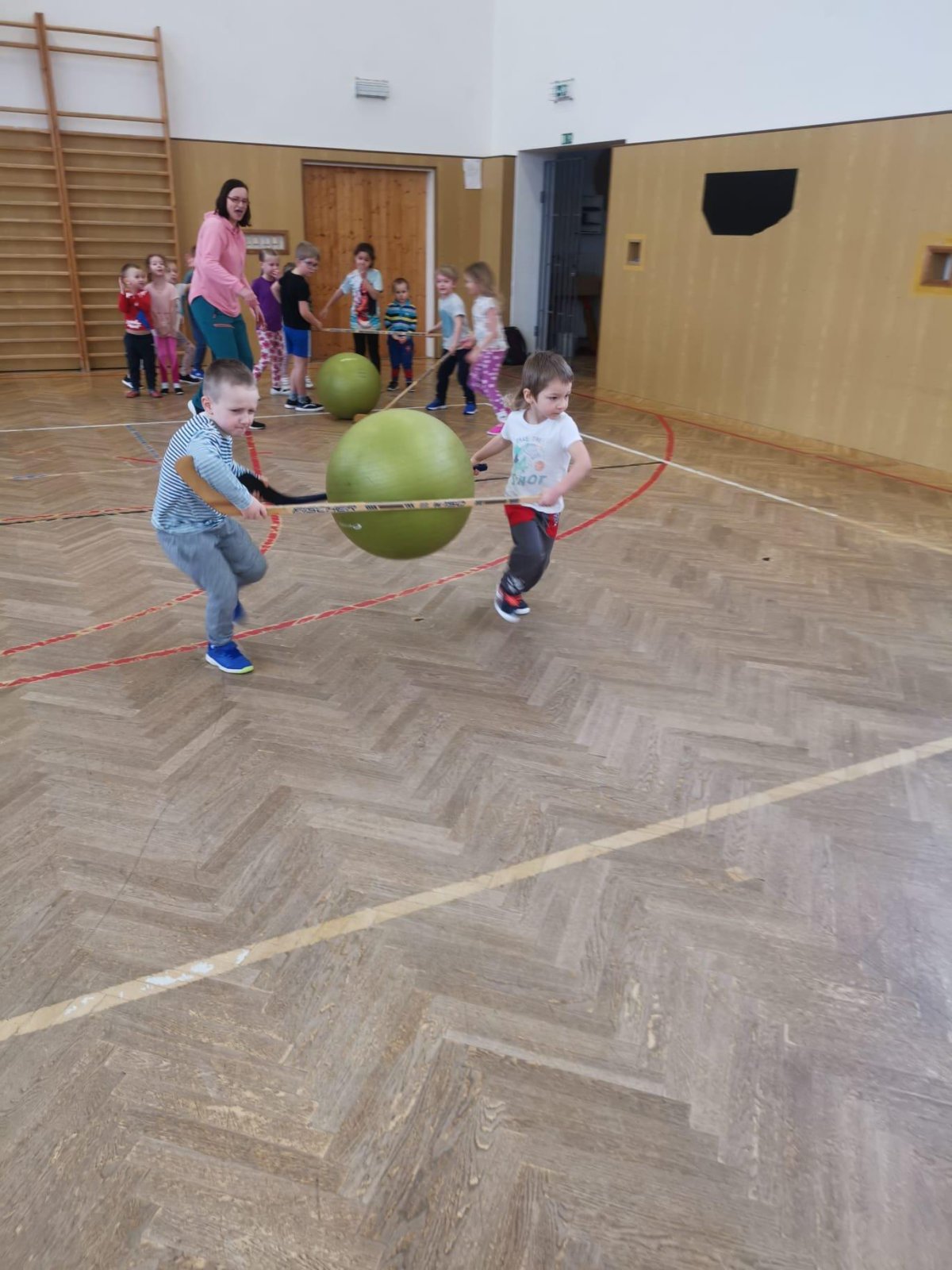 Děti si při cvičení v tělocvičně procvičily rychlost, postřeh, obratnost, třídění podle barev, zručnost, spolupráci ve skupinách a ve dvojicích.